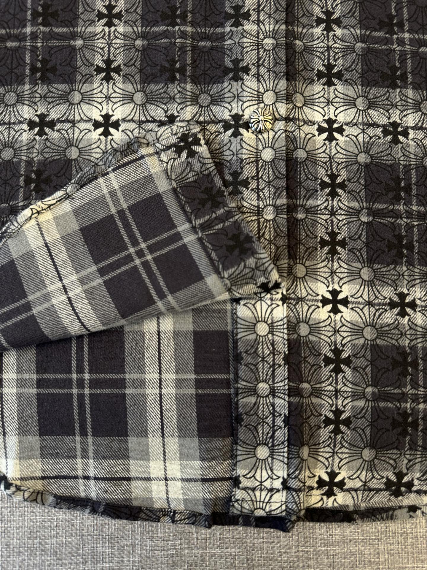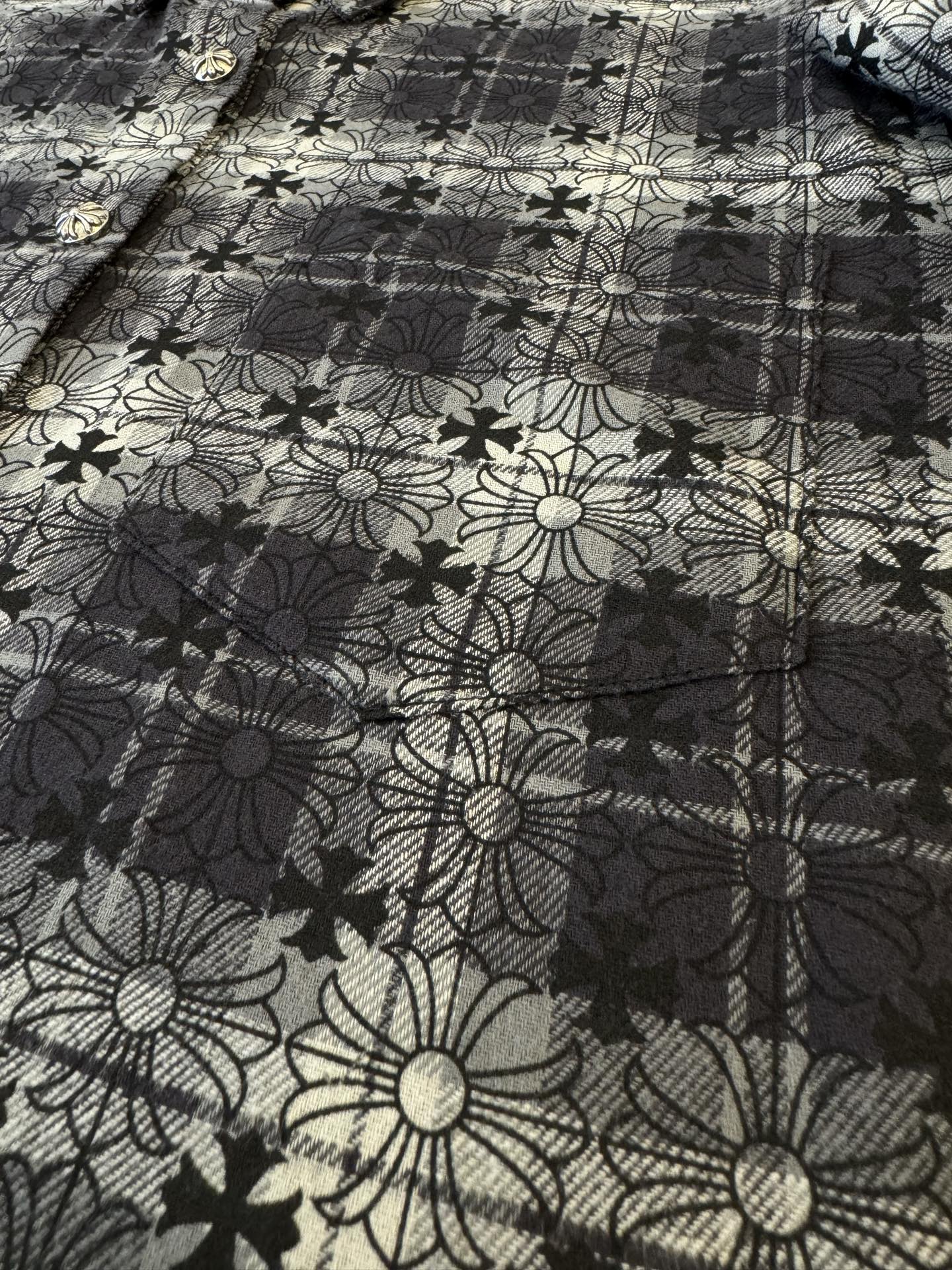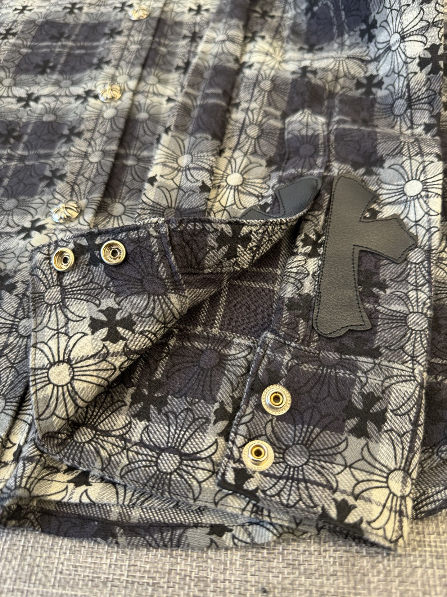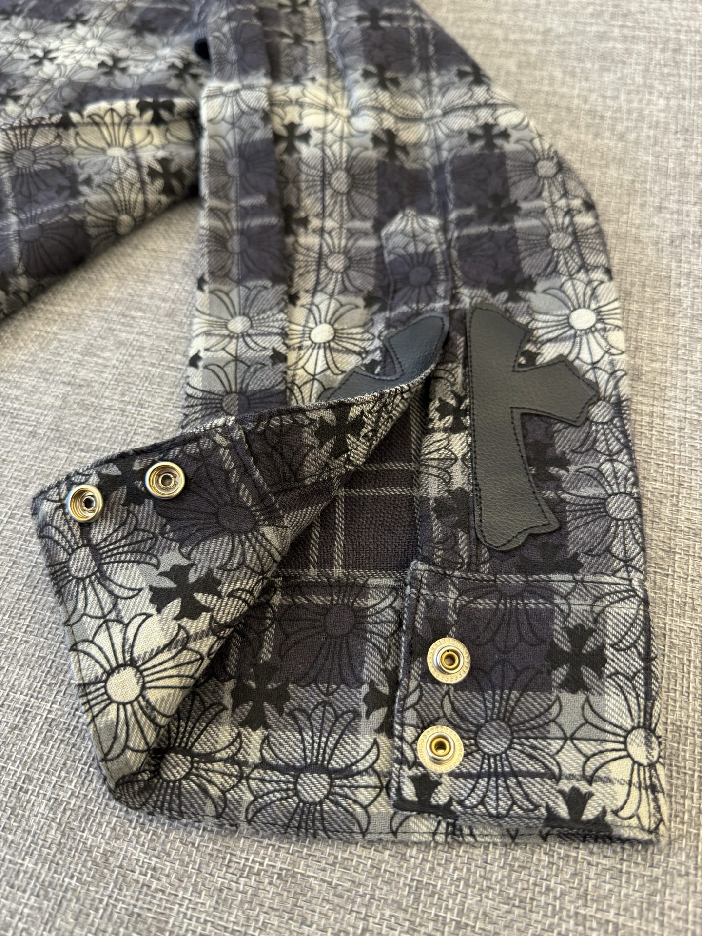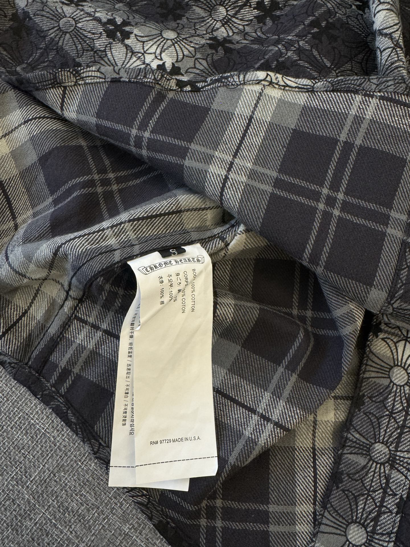 這款衣服是AAAAA 1:1 質量(非常棒). 使用了和原版一模一樣的材料. 商標部分也保持了和鉻心/Chrome Hearts一樣. 圖片拍攝是實物衣服拍攝, 您所收到的實物保證和我們圖片一模一樣.