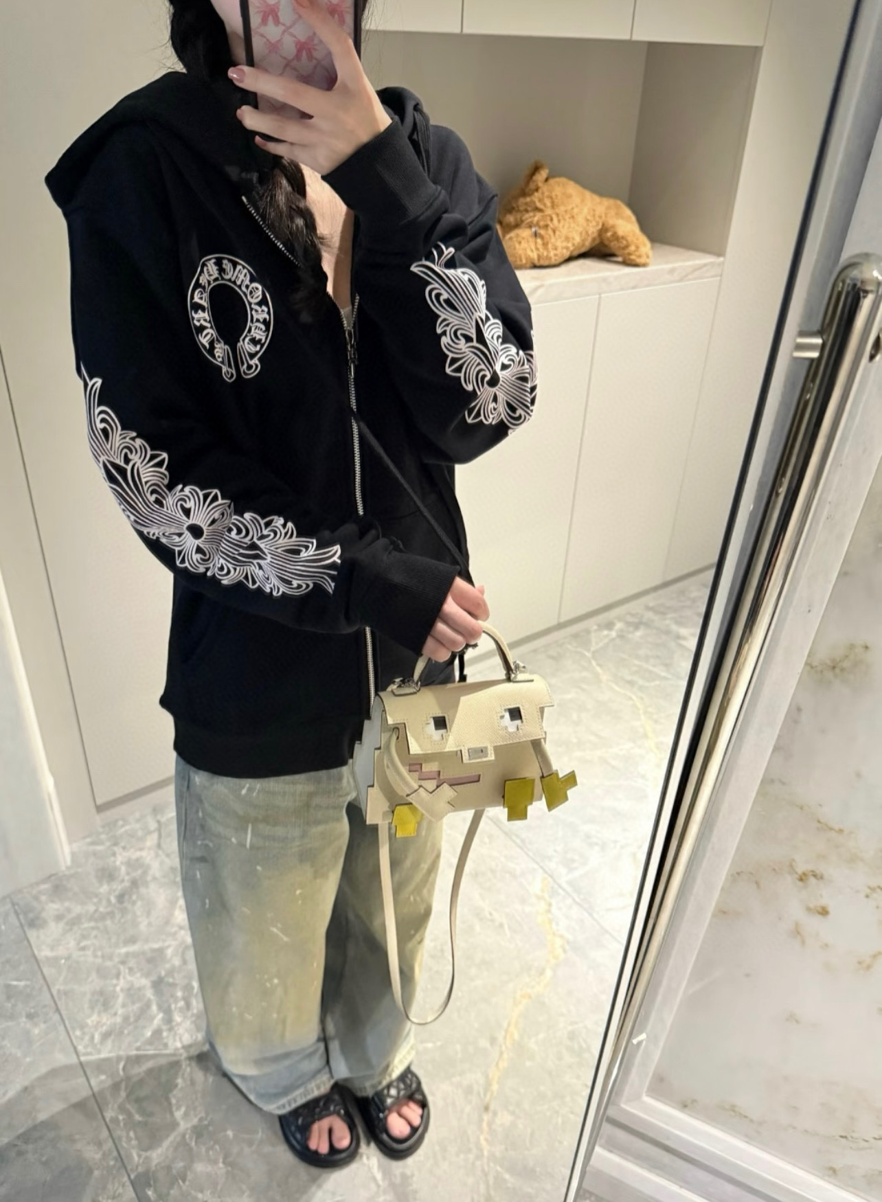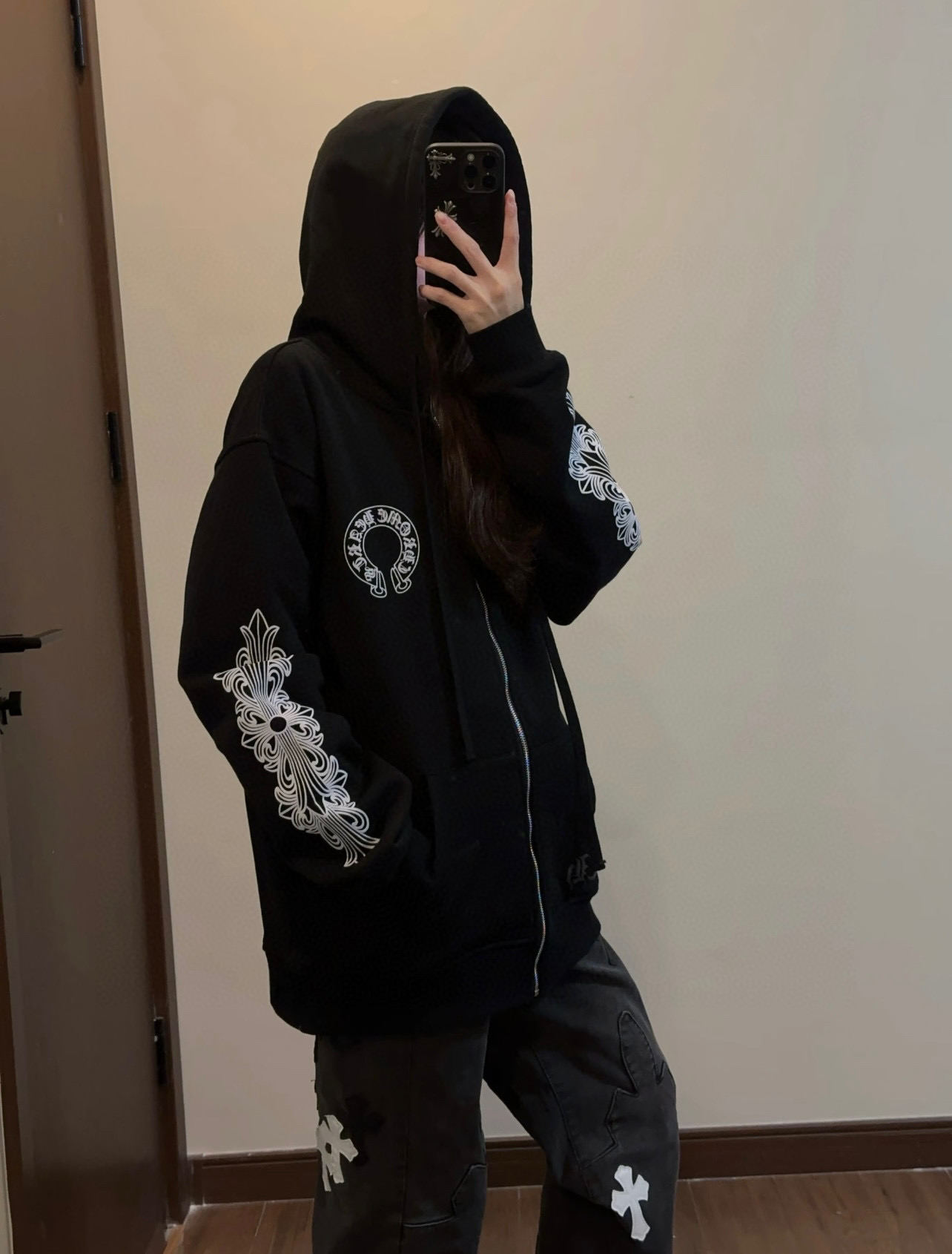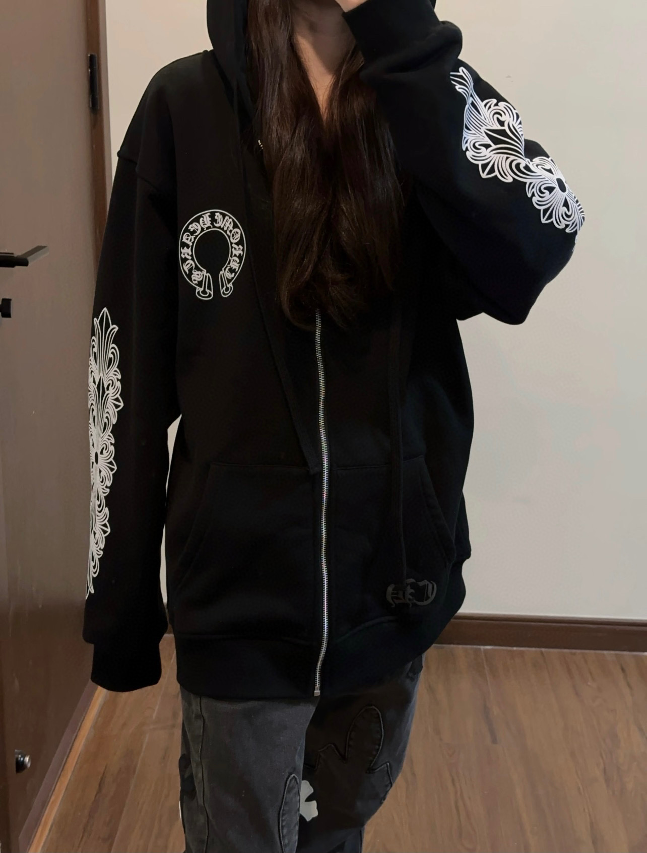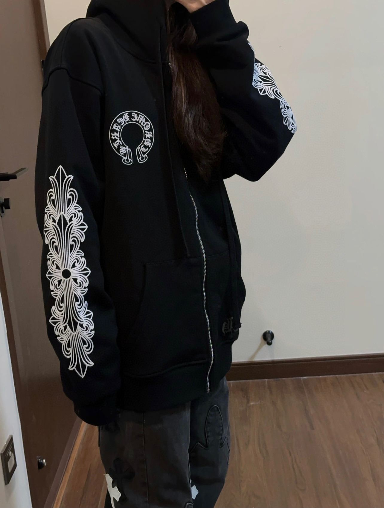 這款衣服是AAAAA 1:1 質量(非常棒). 使用了和原版一模一樣的材料. 商標部分也保持了和鉻心/Chrome Hearts一樣. 圖片拍攝是實物衣服拍攝, 您所收到的實物保證和我們圖片一模一樣.