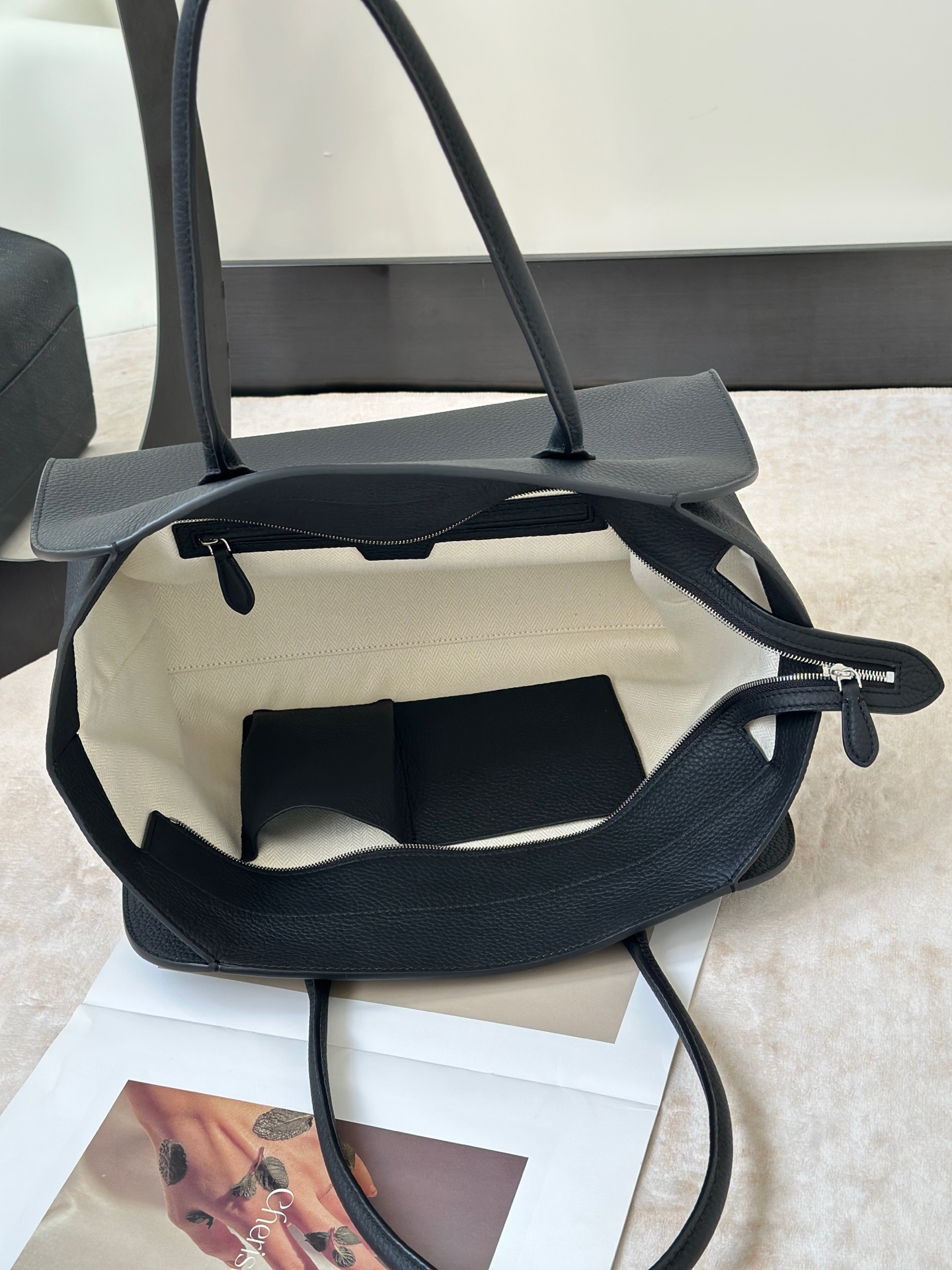 這款包包是AAAAA 1:1 質量(非常棒). 使用了和原版一模一樣的材料. 商標部分也保持了和The Row一樣. 圖片拍攝是實物包包拍攝, 您所收到的實物保證和我們圖片一模一樣.