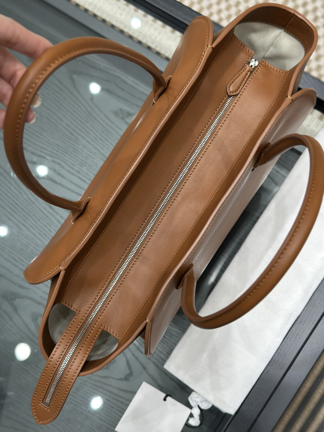 這款包包是AAAAA 1:1 質量(非常棒). 使用了和原版一模一樣的材料. 商標部分也保持了和The Row一樣. 圖片拍攝是實物包包拍攝, 您所收到的實物保證和我們圖片一模一樣.