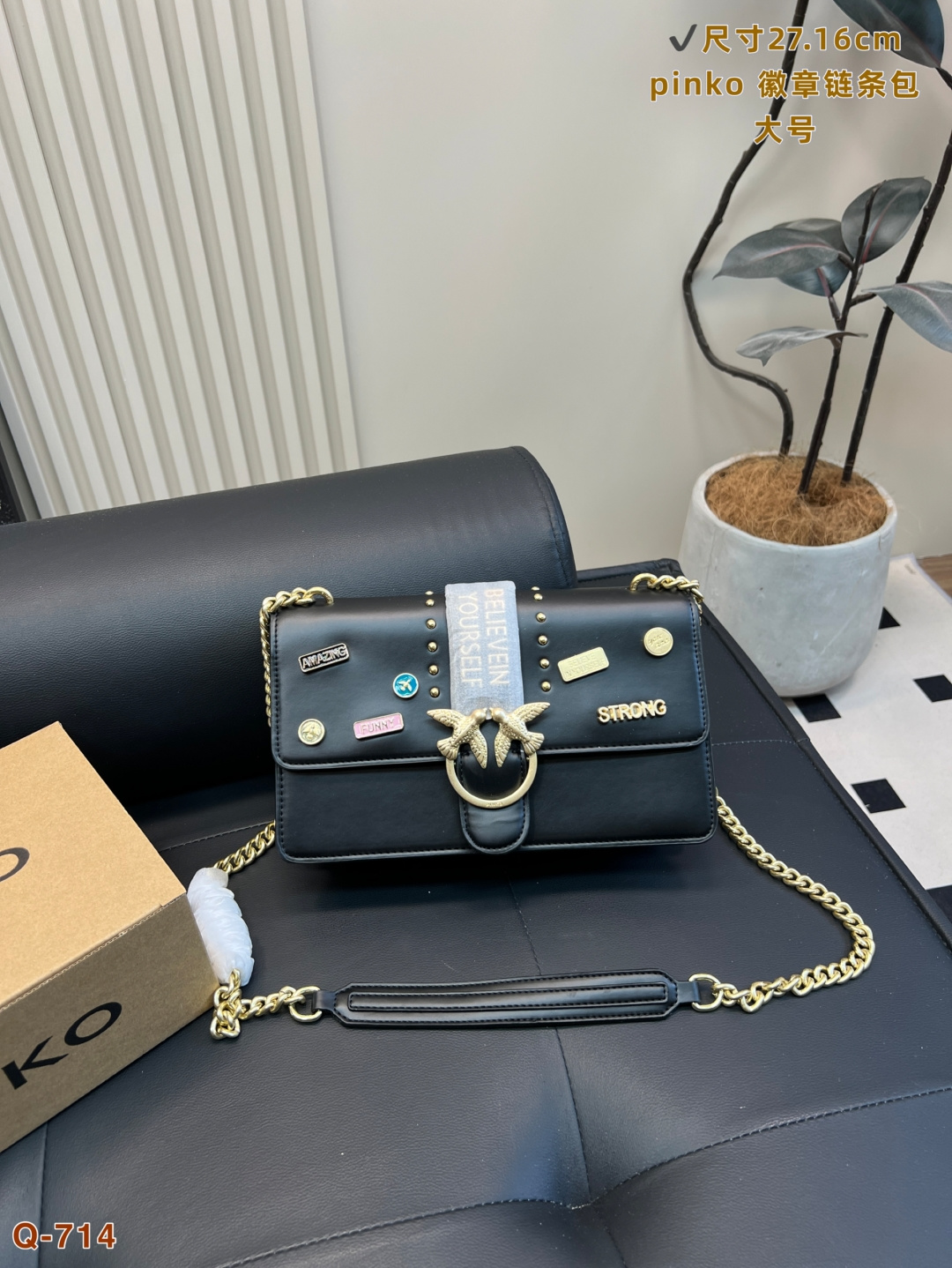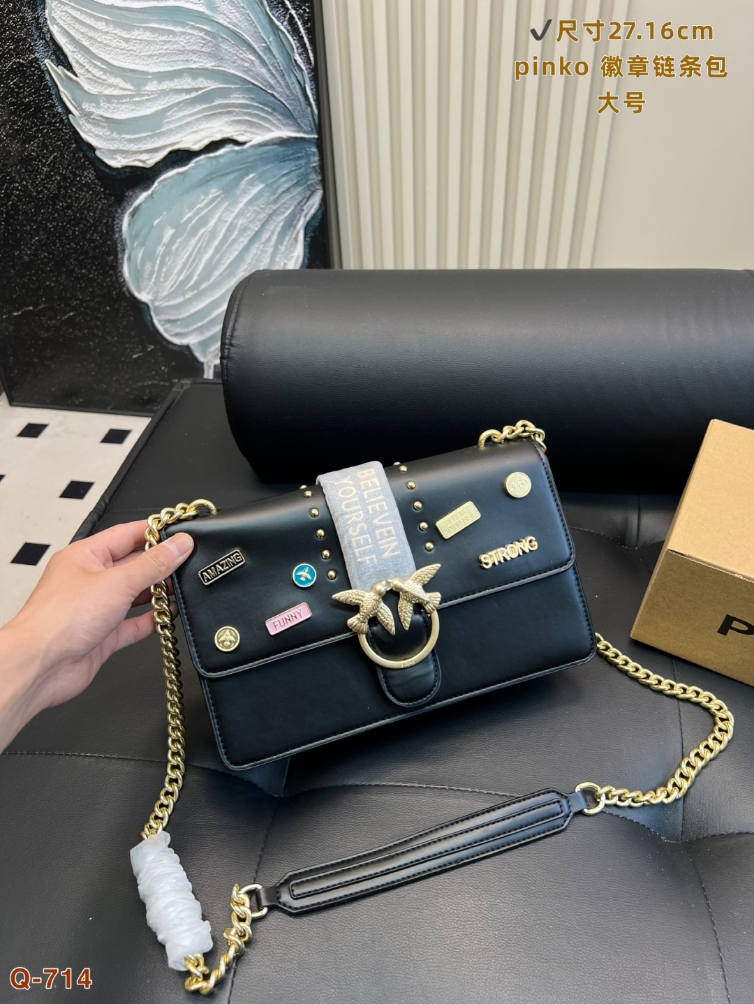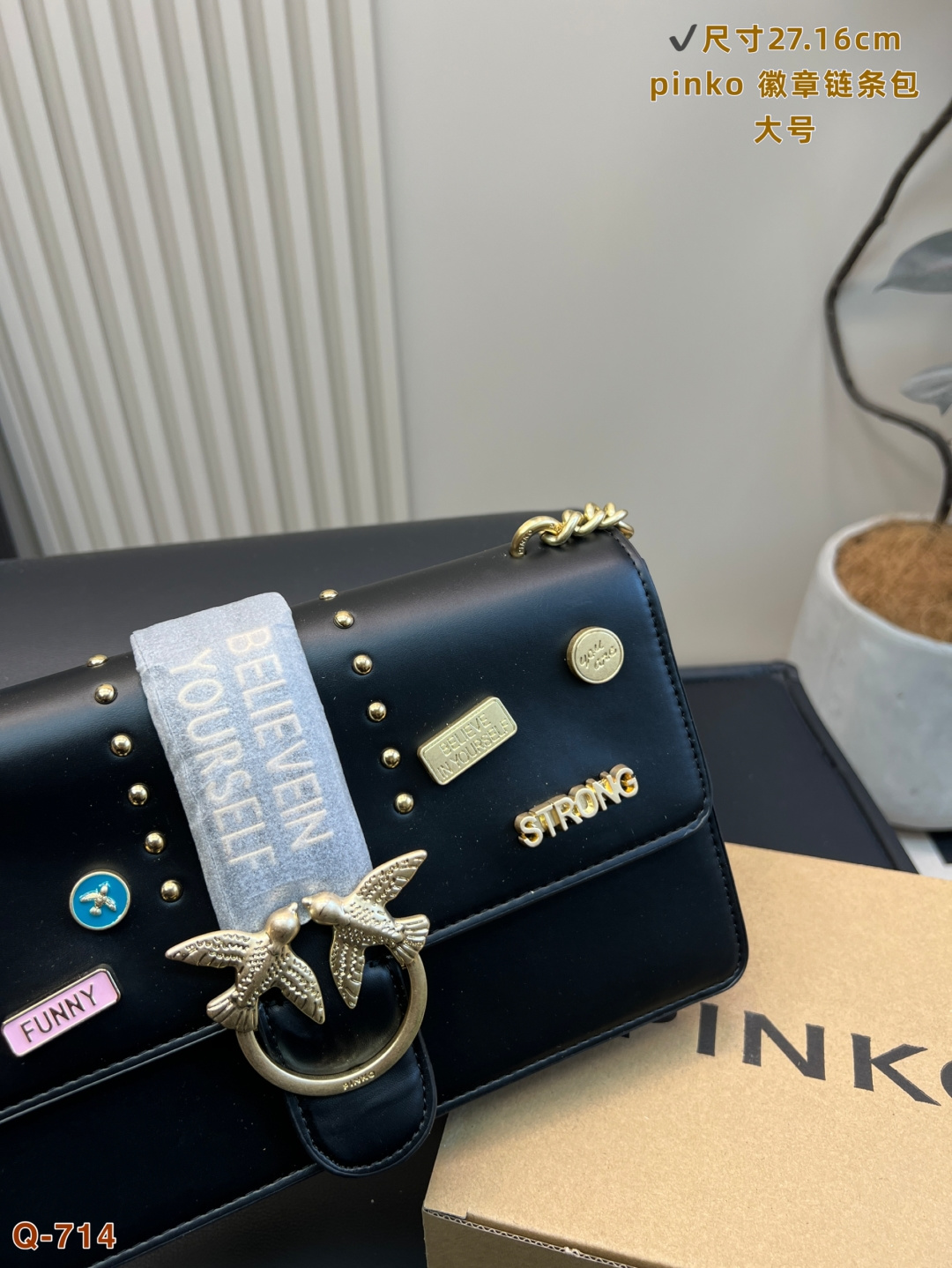 這款包包是AAAAA 1:1 質量(非常棒). 使用了和原版一模一樣的材料. 商標部分也保持了和PINKO一樣. 圖片拍攝是實物包包拍攝, 您所收到的實物保證和我們圖片一模一樣.