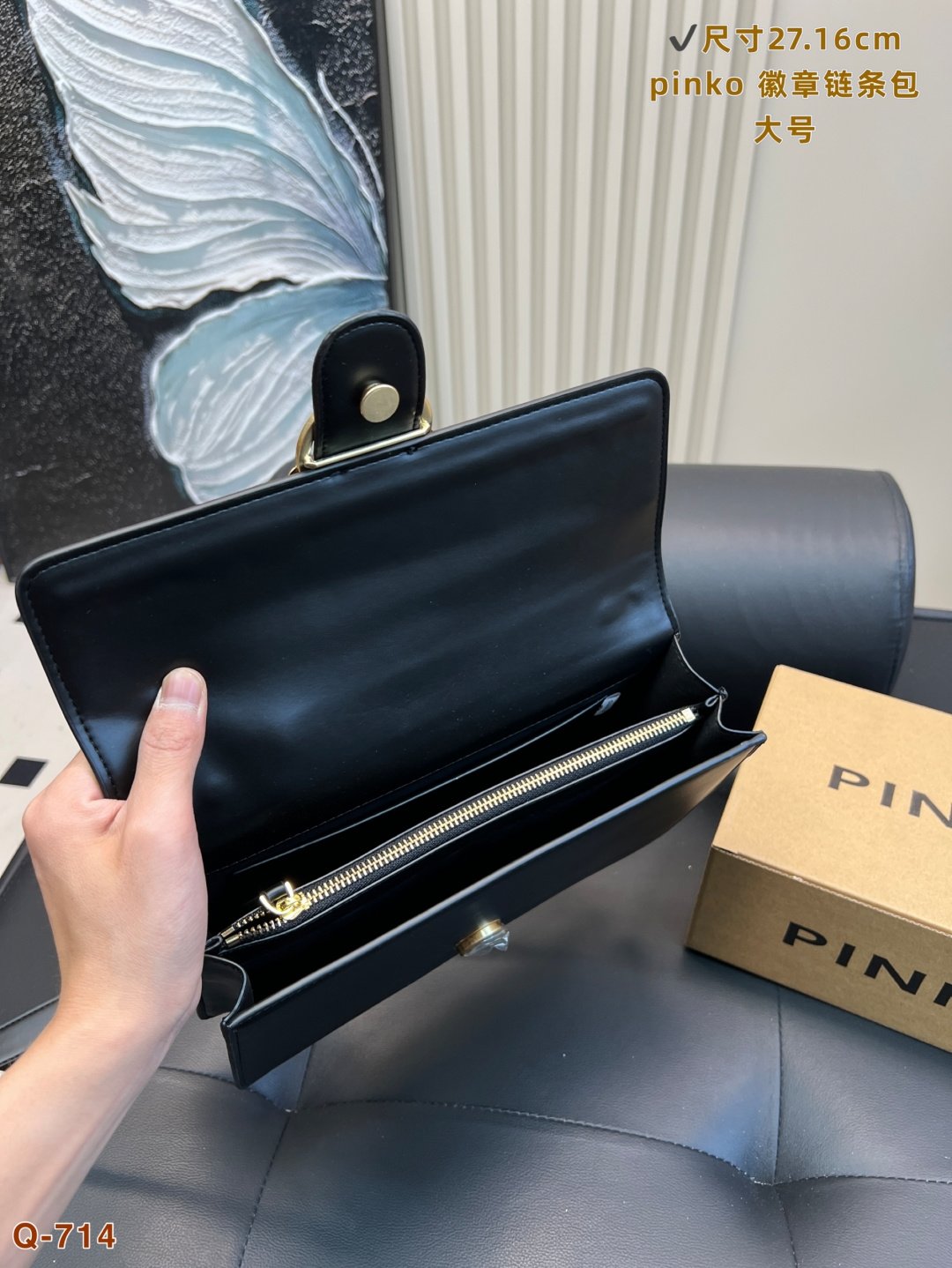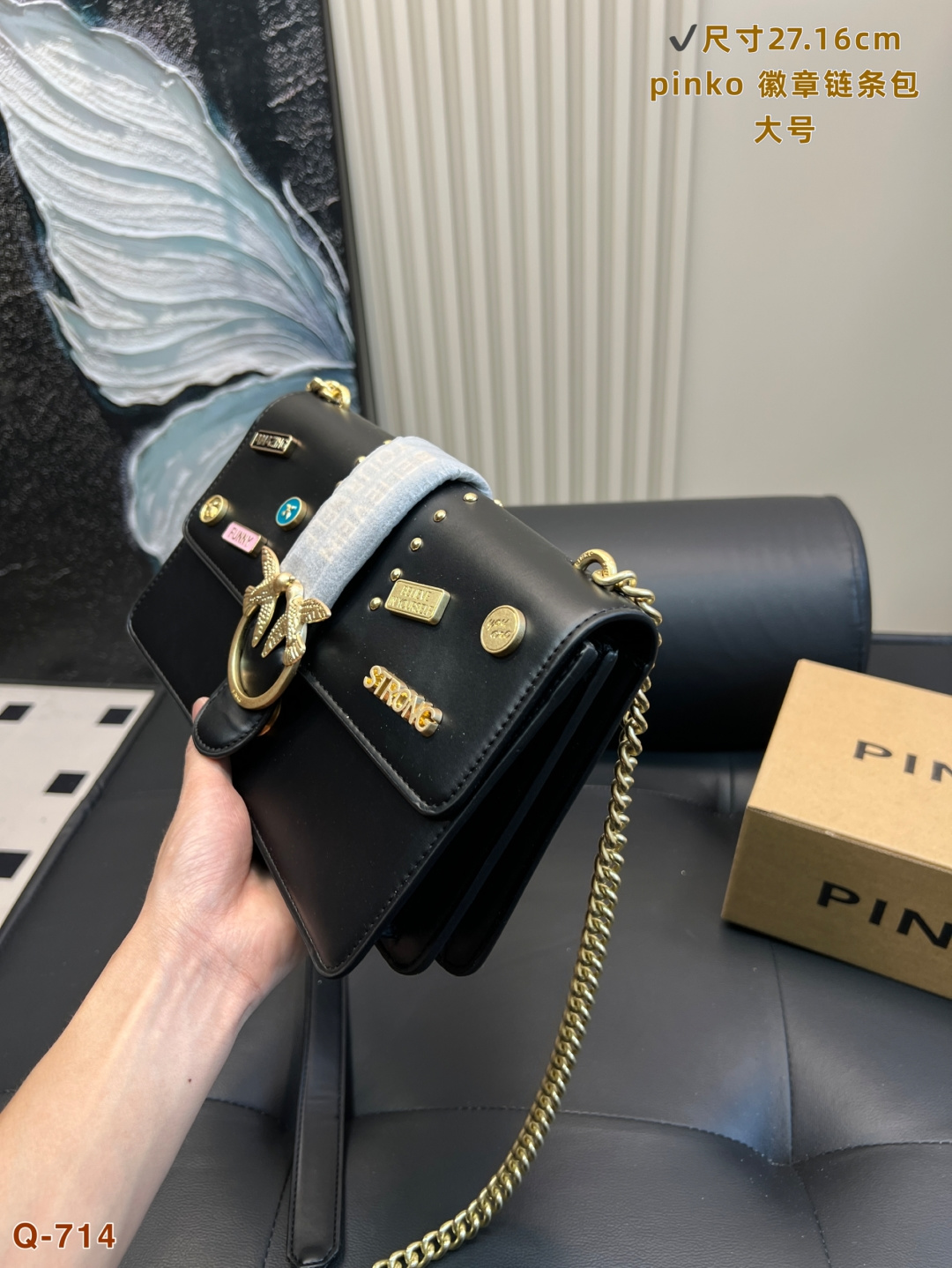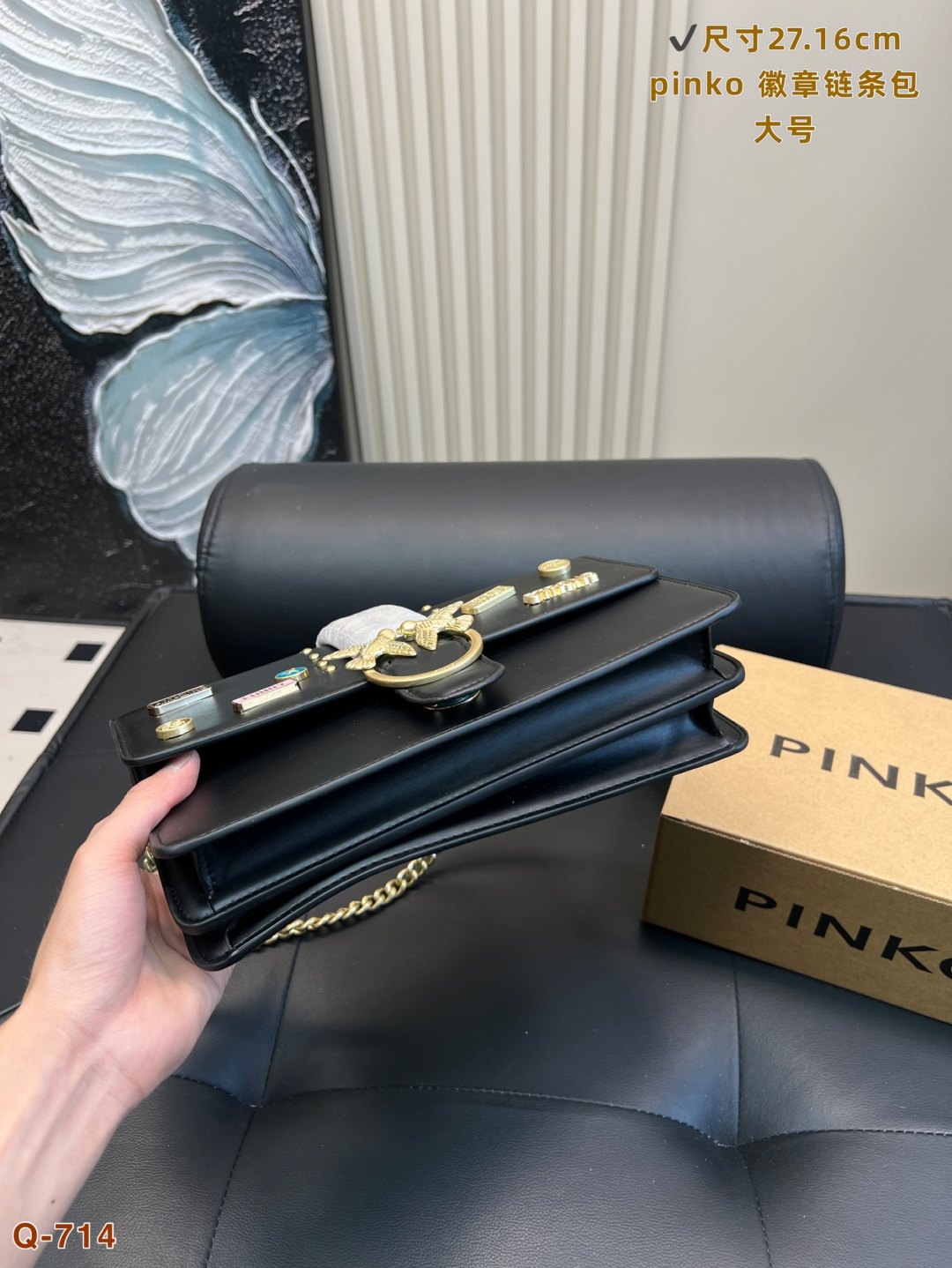 這款包包是AAAAA 1:1 質量(非常棒). 使用了和原版一模一樣的材料. 商標部分也保持了和PINKO一樣. 圖片拍攝是實物包包拍攝, 您所收到的實物保證和我們圖片一模一樣.
