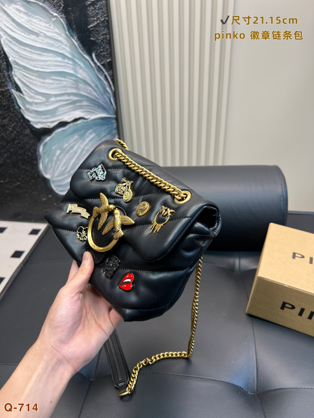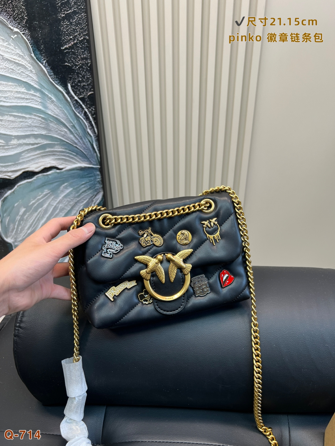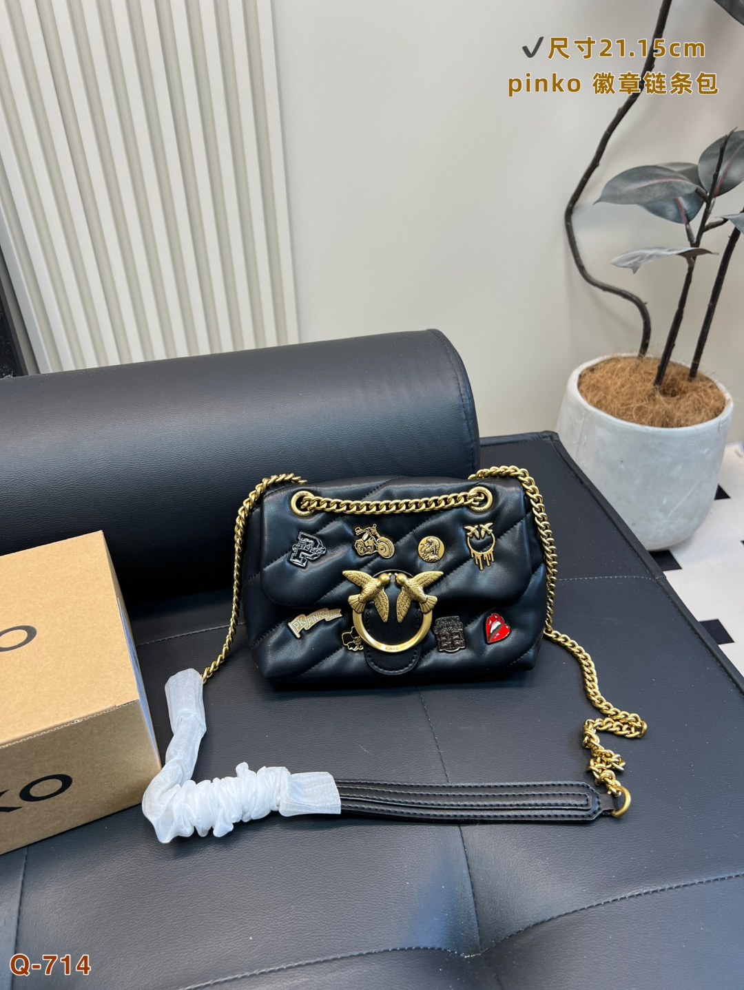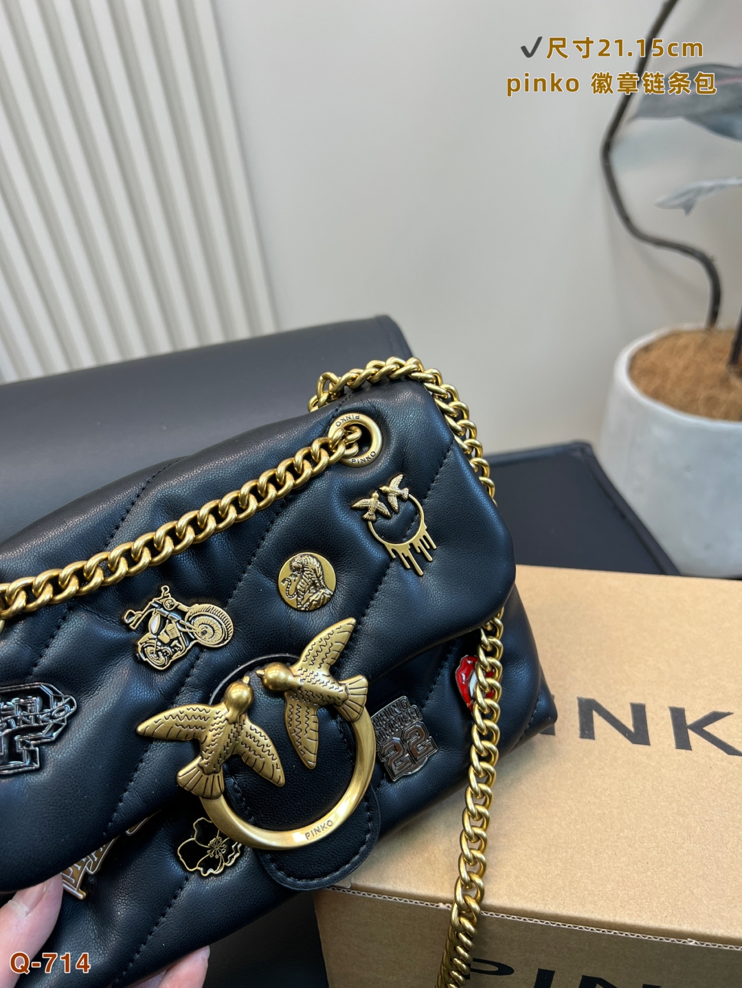 這款包包是AAAAA 1:1 質量(非常棒). 使用了和原版一模一樣的材料. 商標部分也保持了和PINKO一樣. 圖片拍攝是實物包包拍攝, 您所收到的實物保證和我們圖片一模一樣.