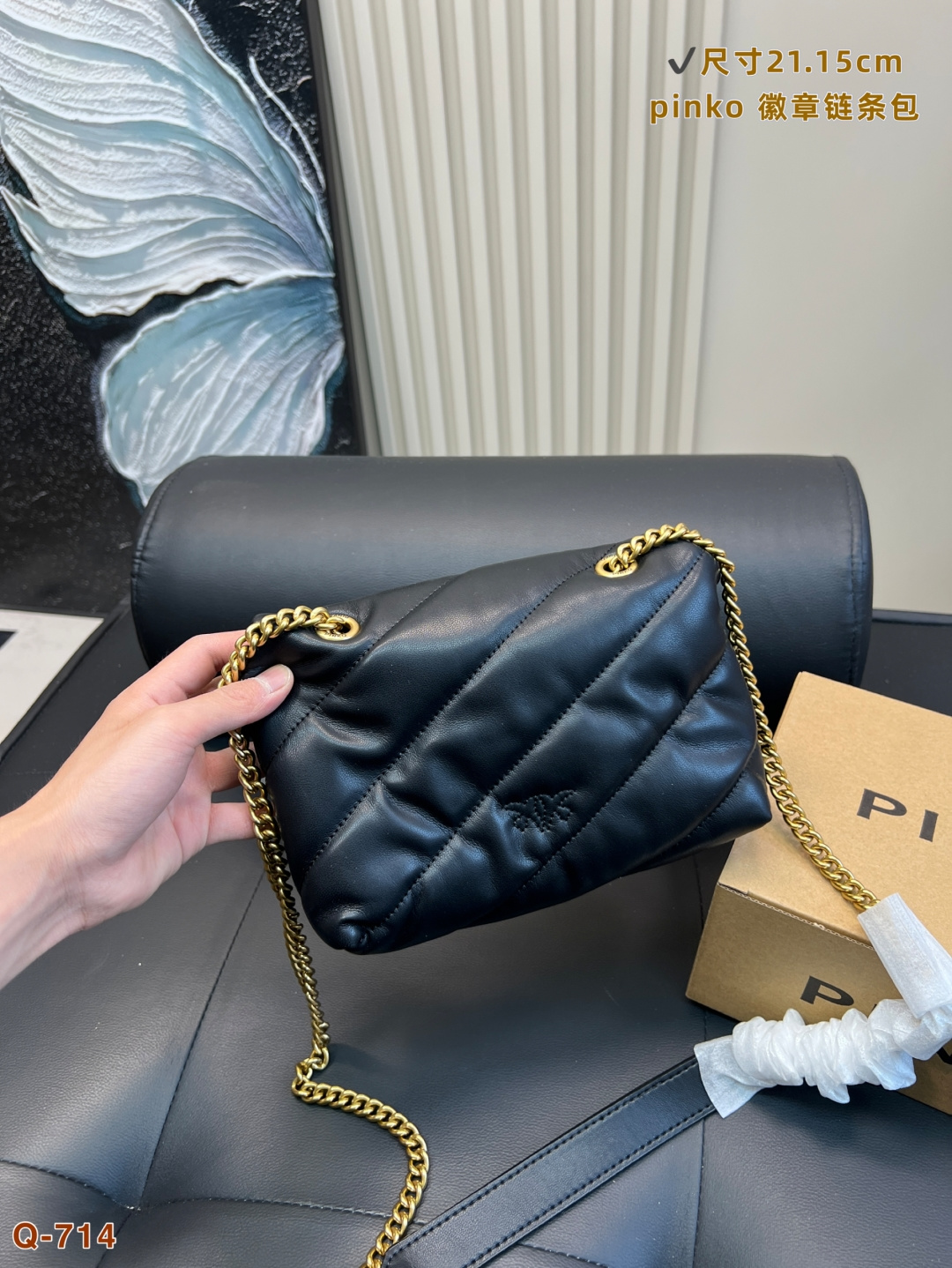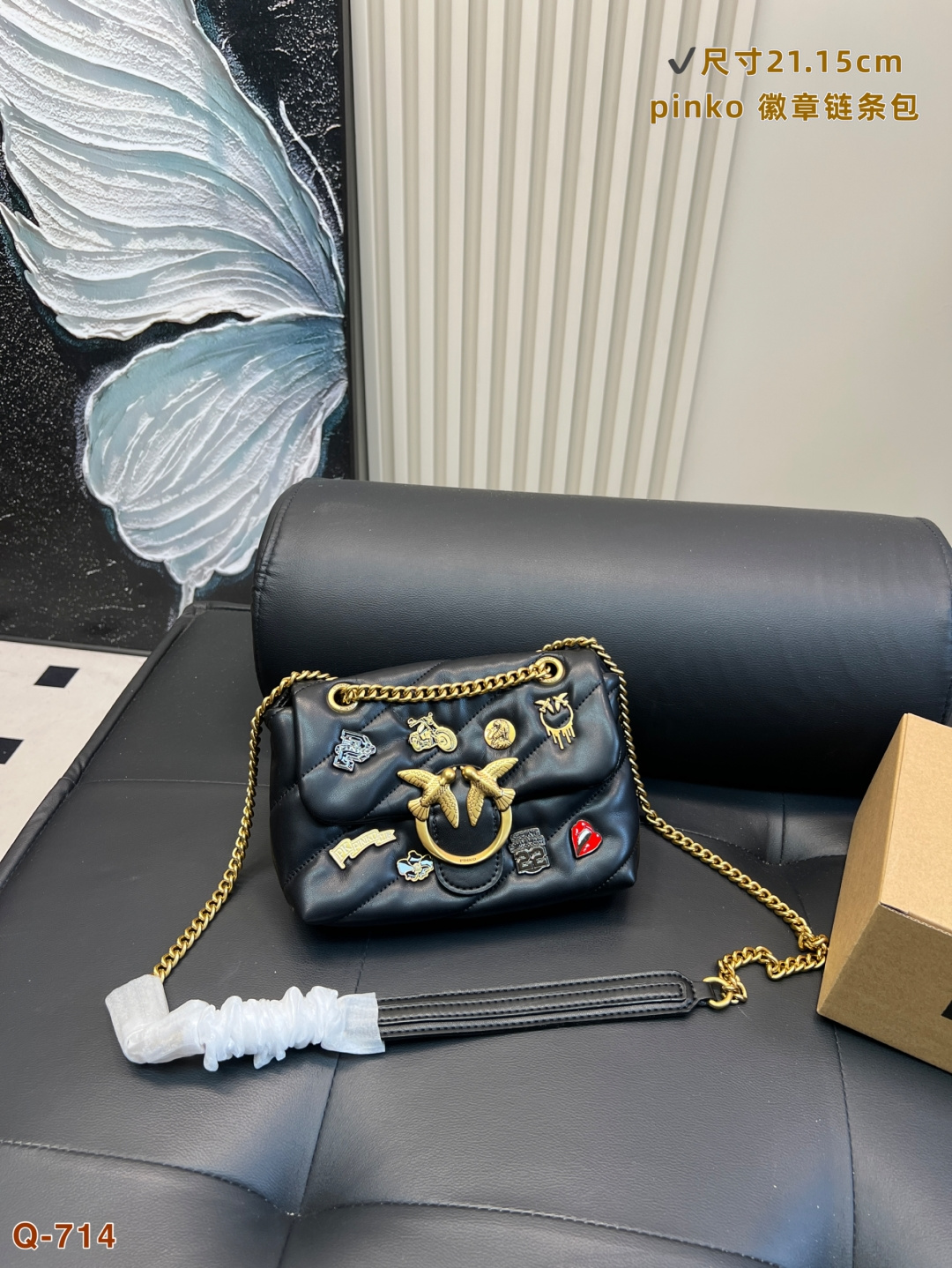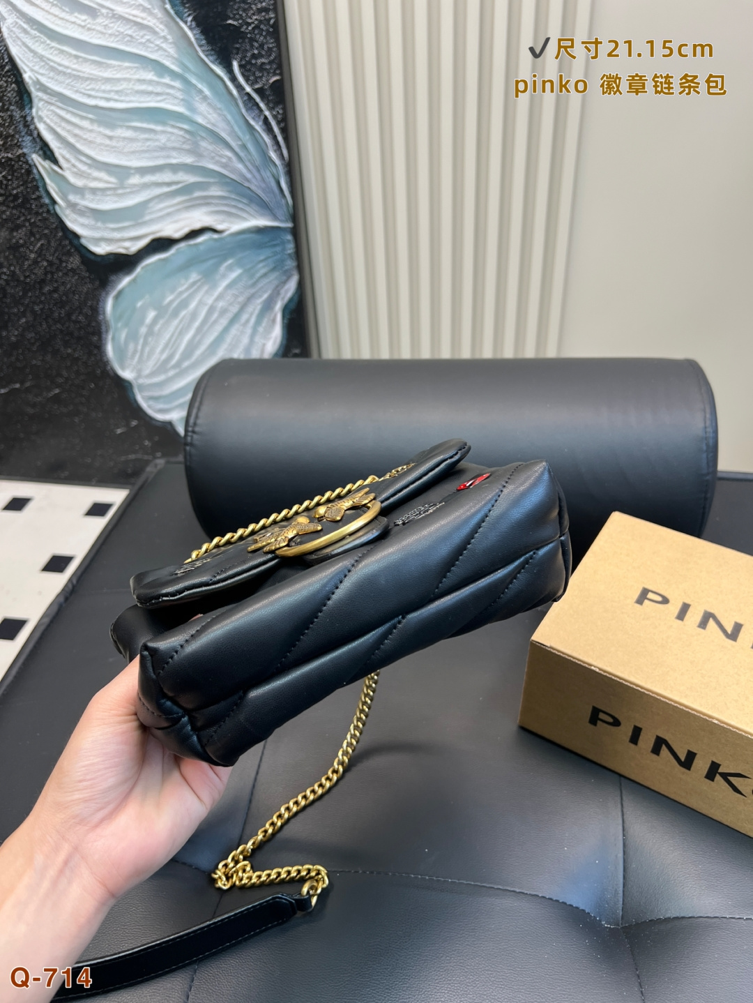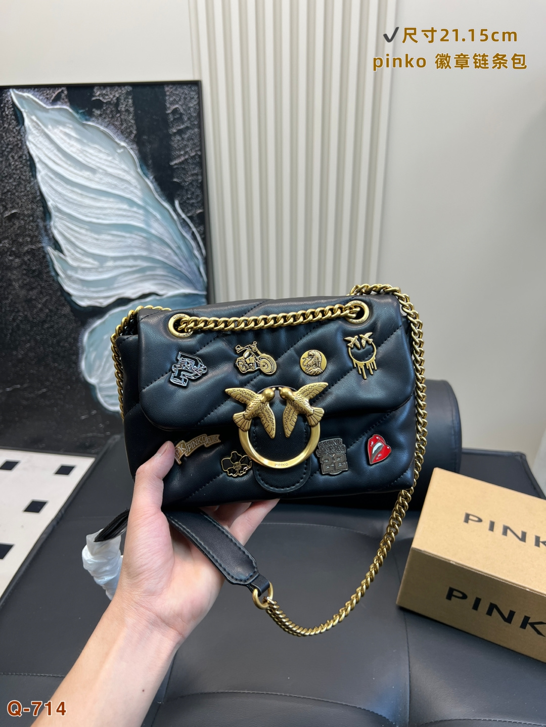 這款包包是AAAAA 1:1 質量(非常棒). 使用了和原版一模一樣的材料. 商標部分也保持了和PINKO一樣. 圖片拍攝是實物包包拍攝, 您所收到的實物保證和我們圖片一模一樣.