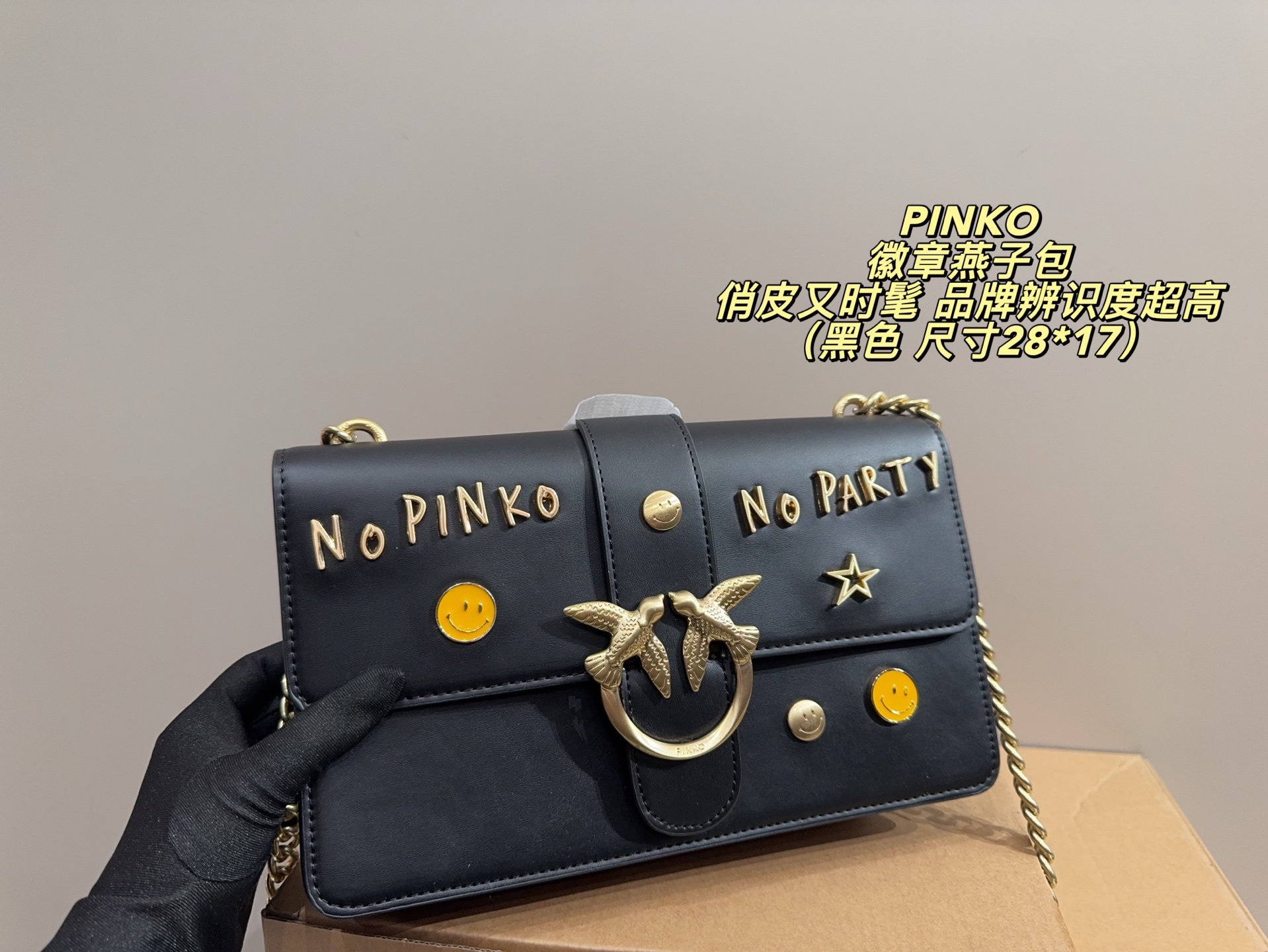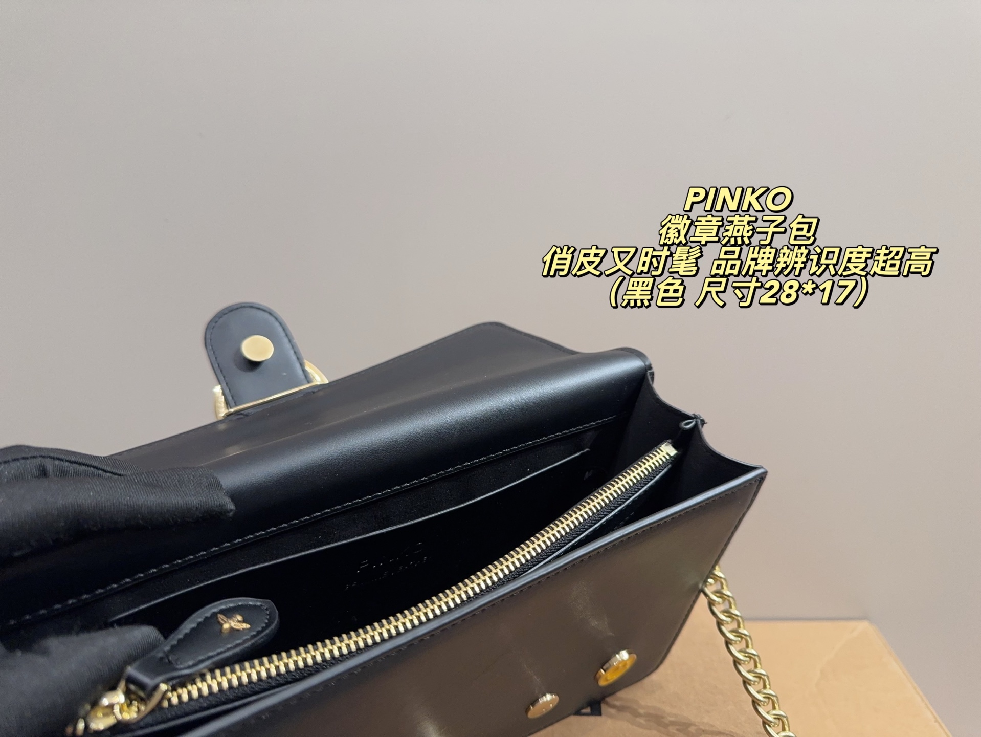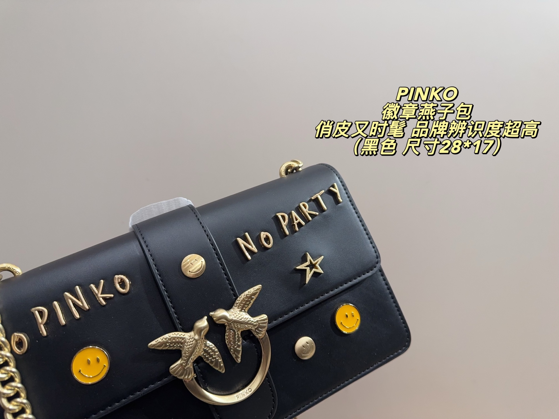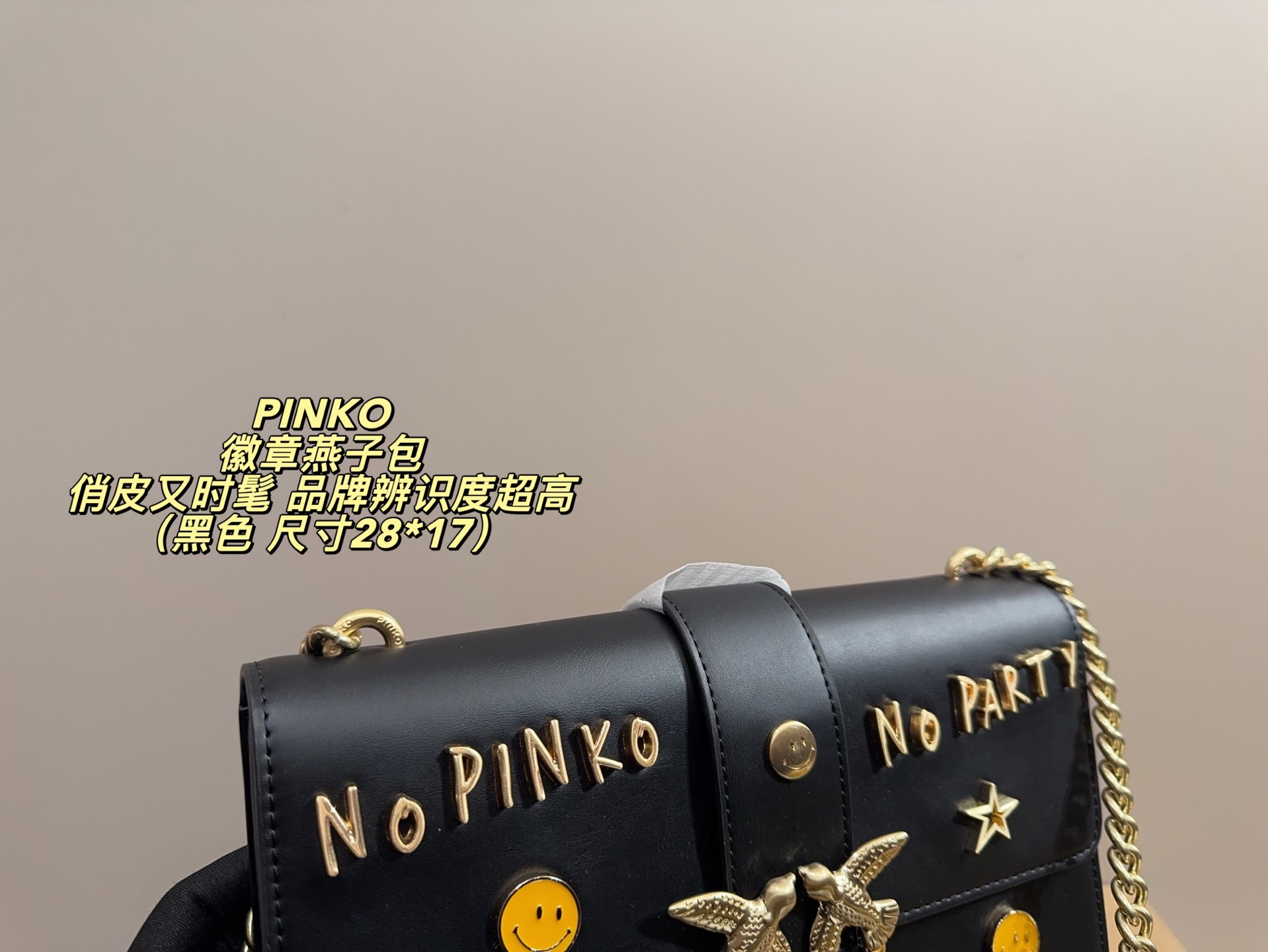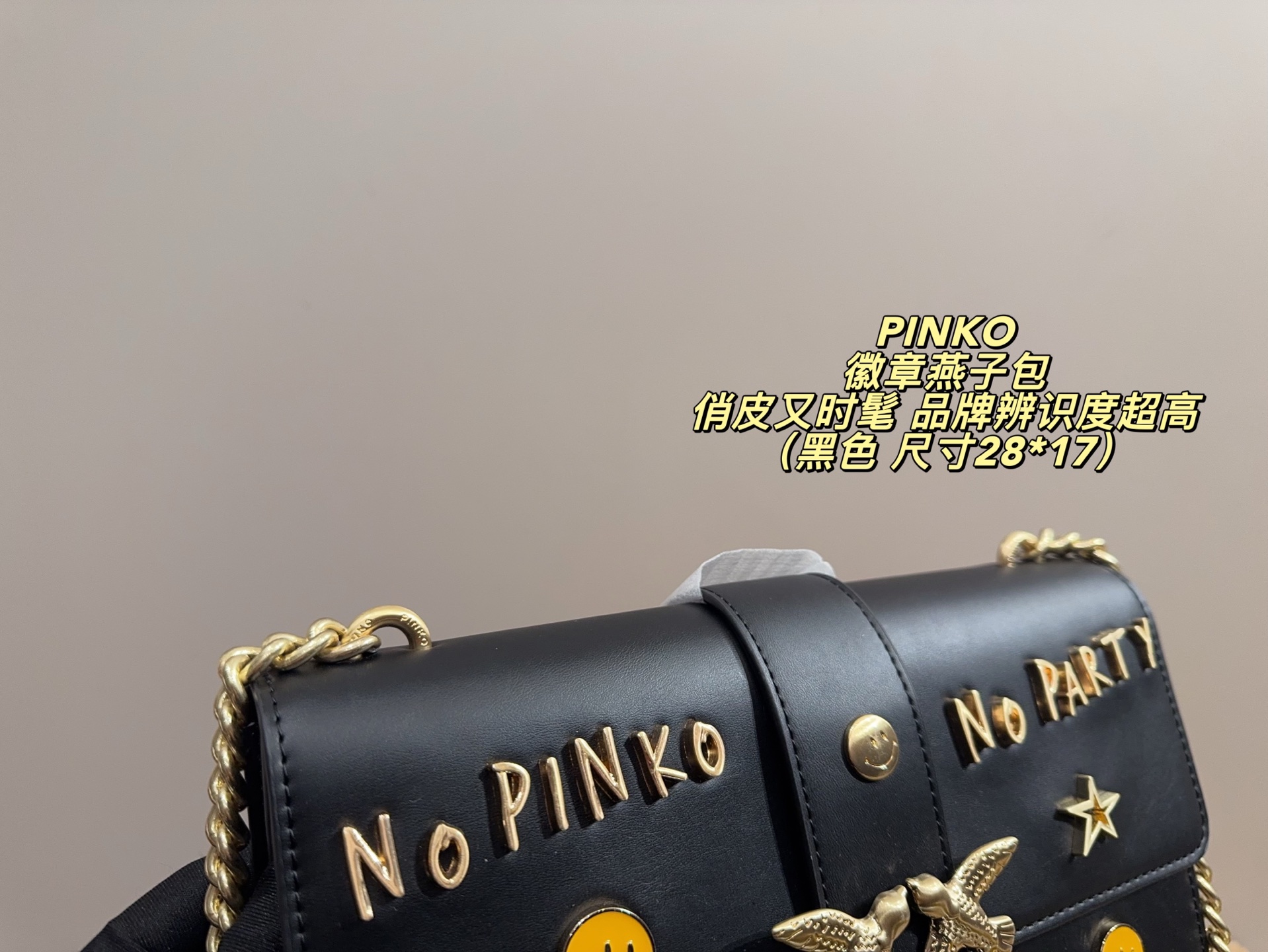 這款包包是AAAAA 1:1 質量(非常棒). 使用了和原版一模一樣的材料. 商標部分也保持了和PINKO一樣. 圖片拍攝是實物包包拍攝, 您所收到的實物保證和我們圖片一模一樣.