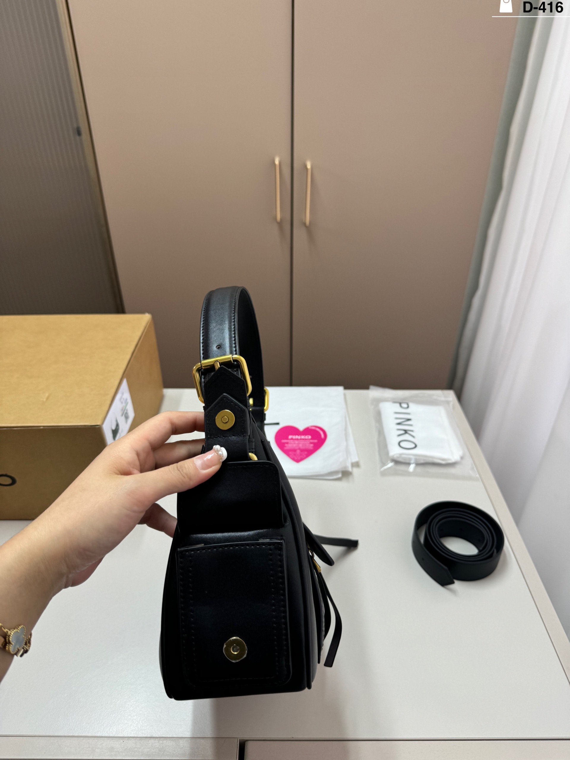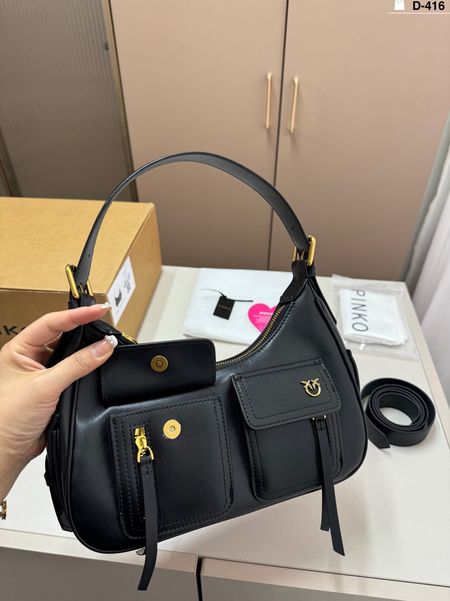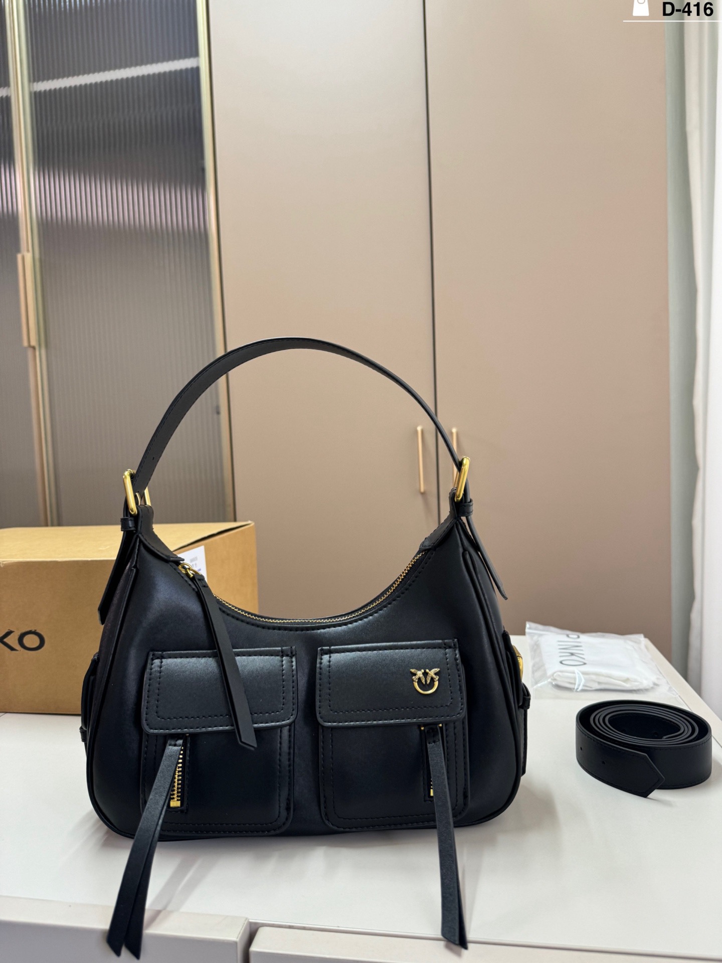 這款包包是AAAAA 1:1 質量(非常棒). 使用了和原版一模一樣的材料. 商標部分也保持了和PINKO一樣. 圖片拍攝是實物包包拍攝, 您所收到的實物保證和我們圖片一模一樣.