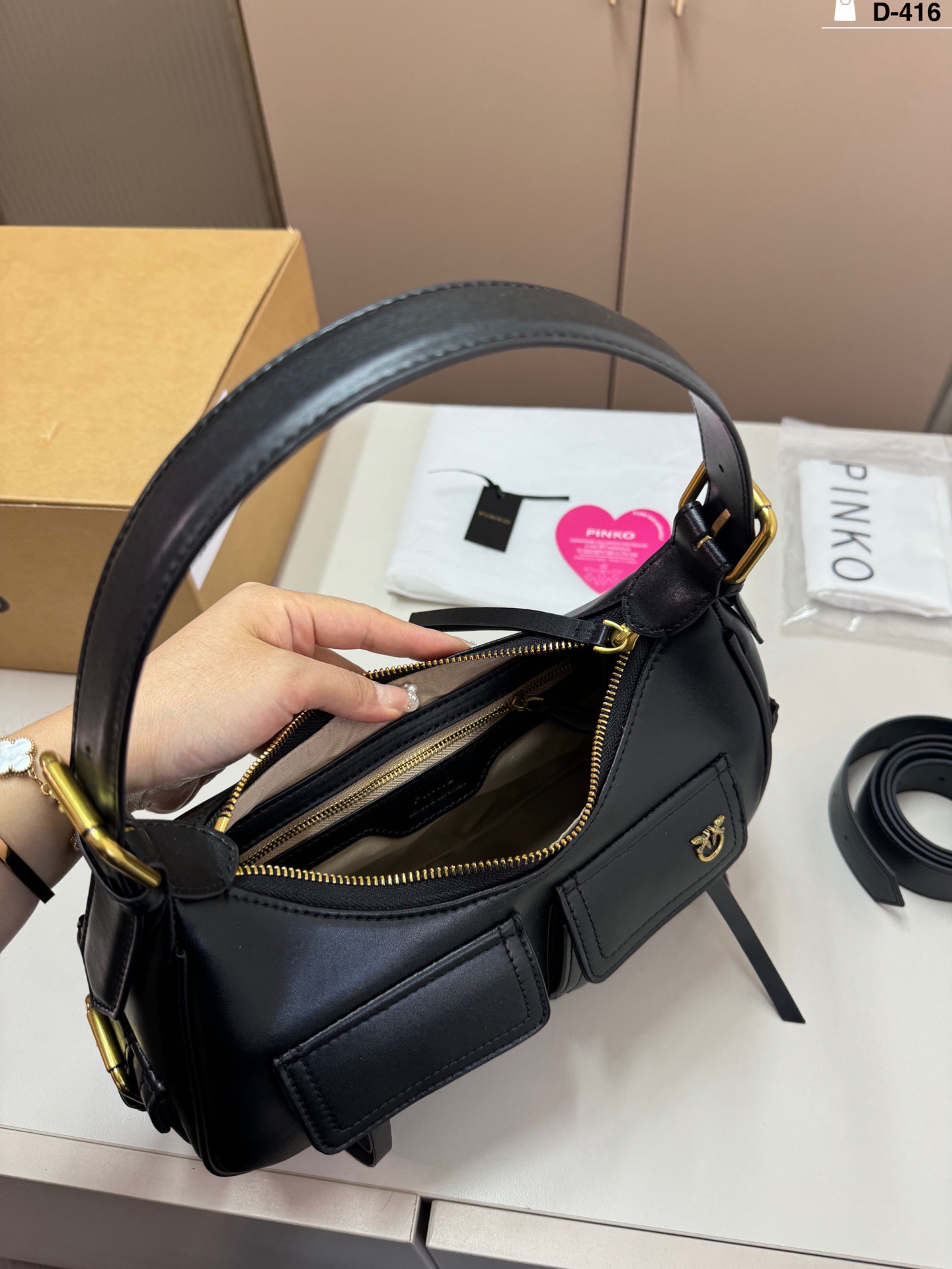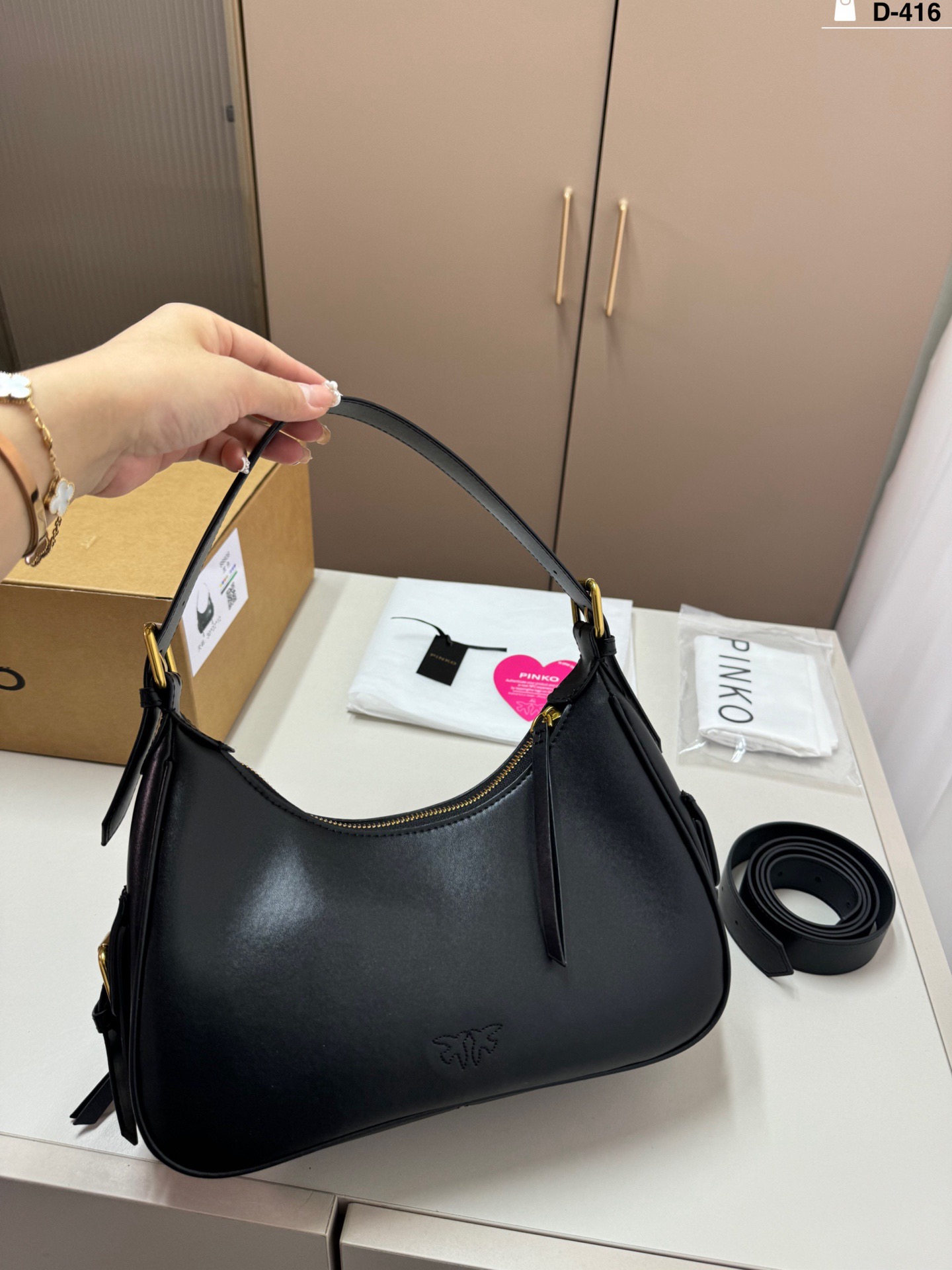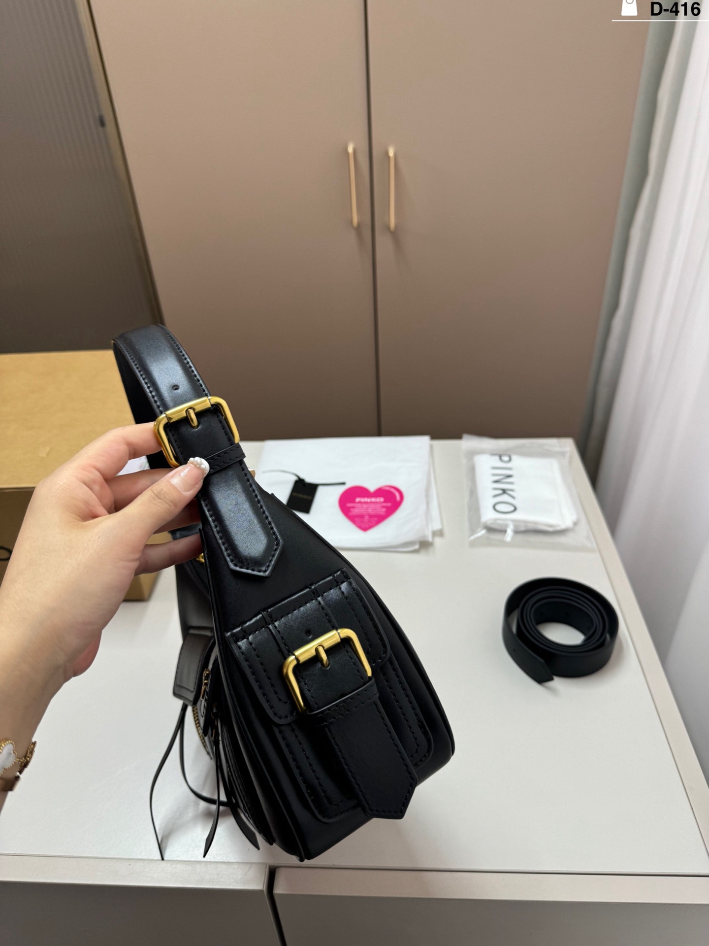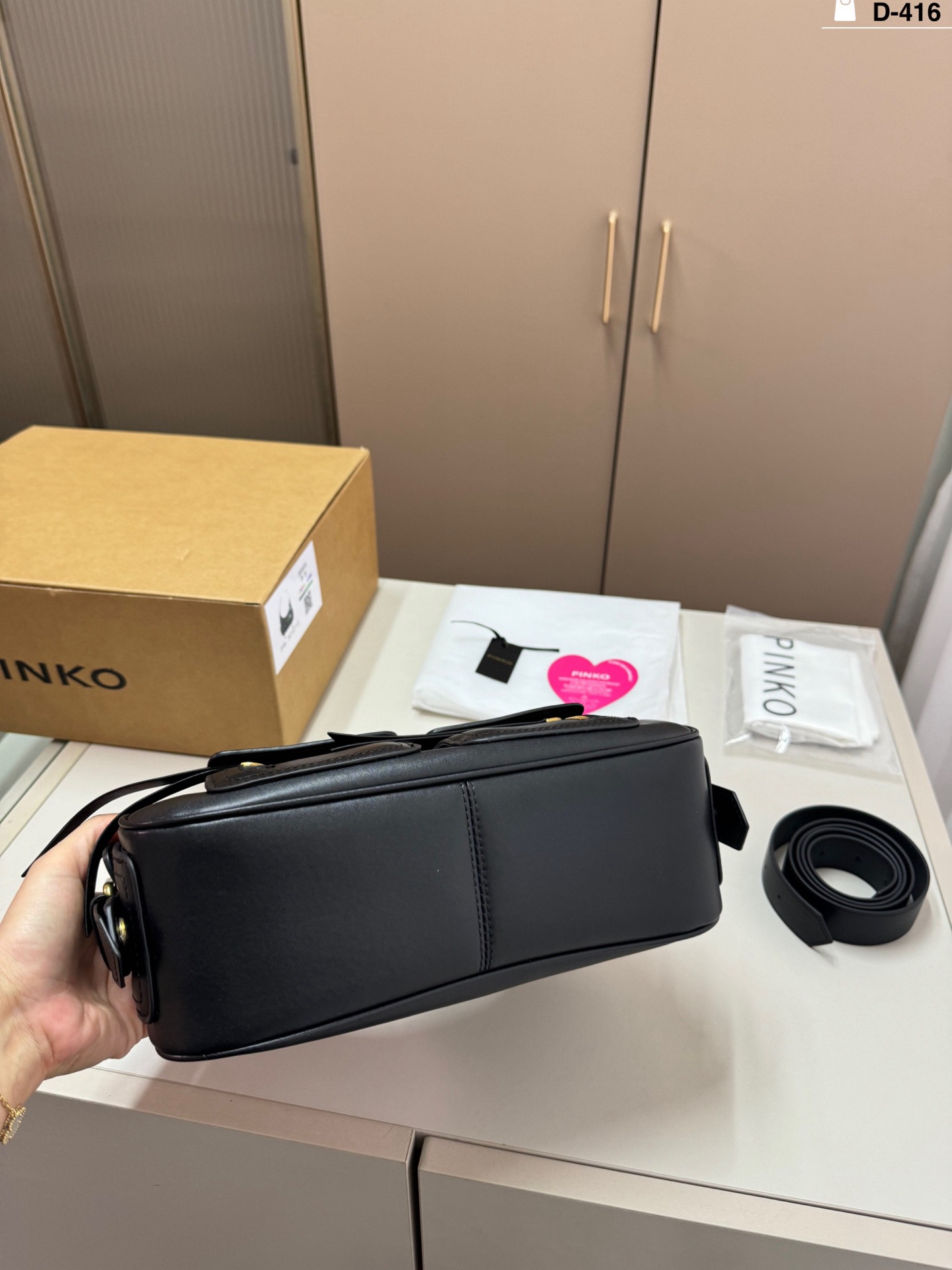 這款包包是AAAAA 1:1 質量(非常棒). 使用了和原版一模一樣的材料. 商標部分也保持了和PINKO一樣. 圖片拍攝是實物包包拍攝, 您所收到的實物保證和我們圖片一模一樣.