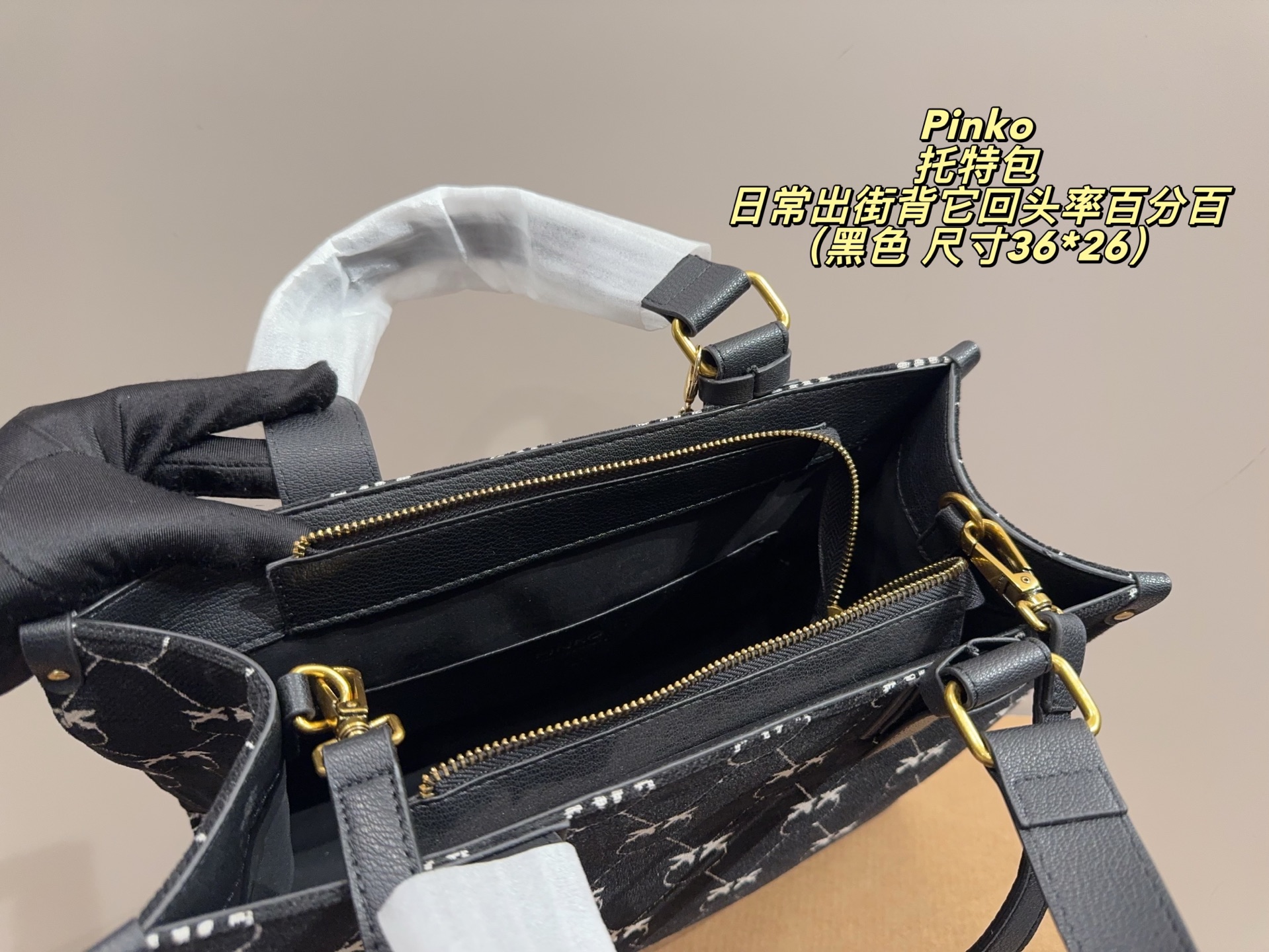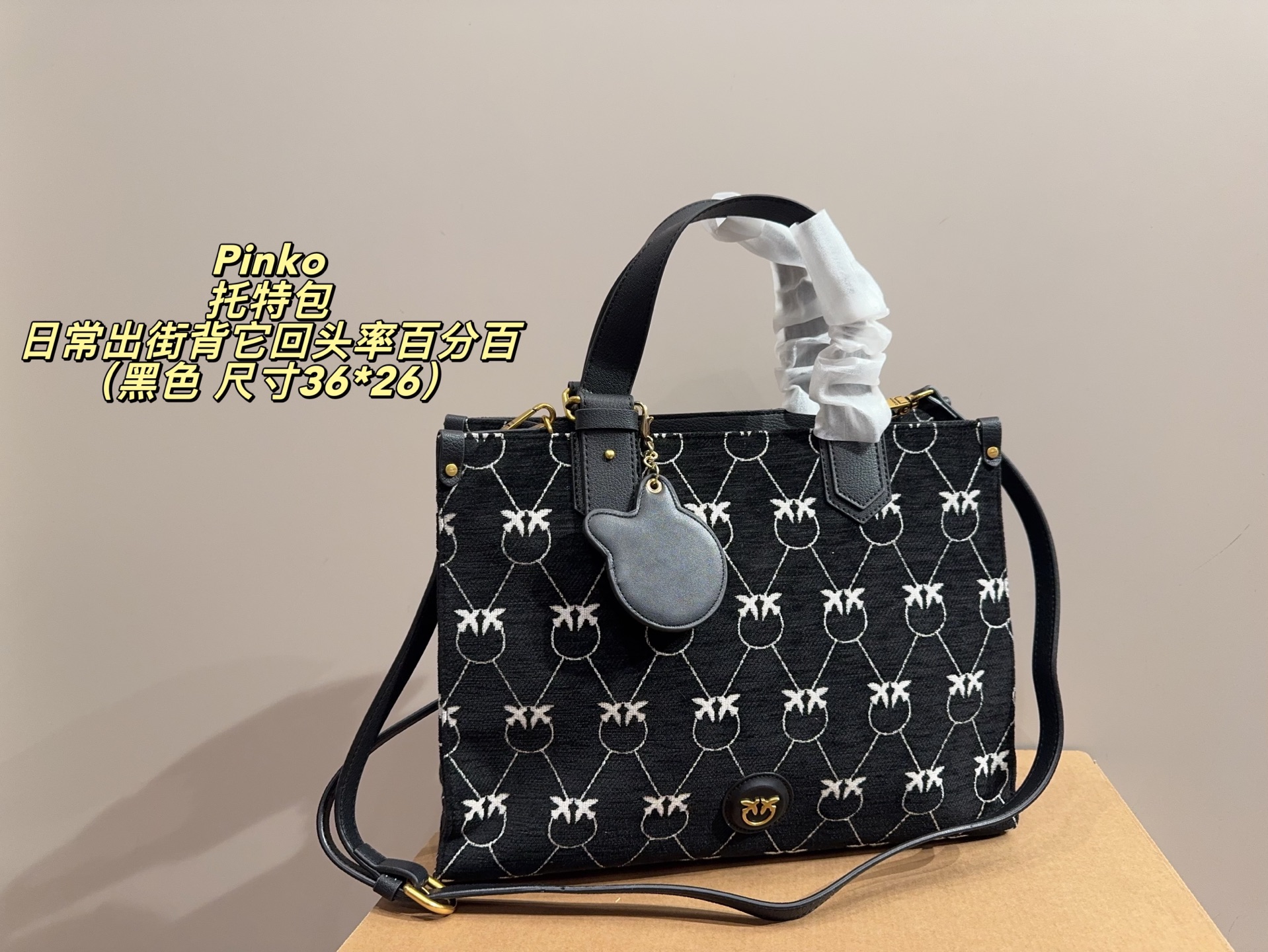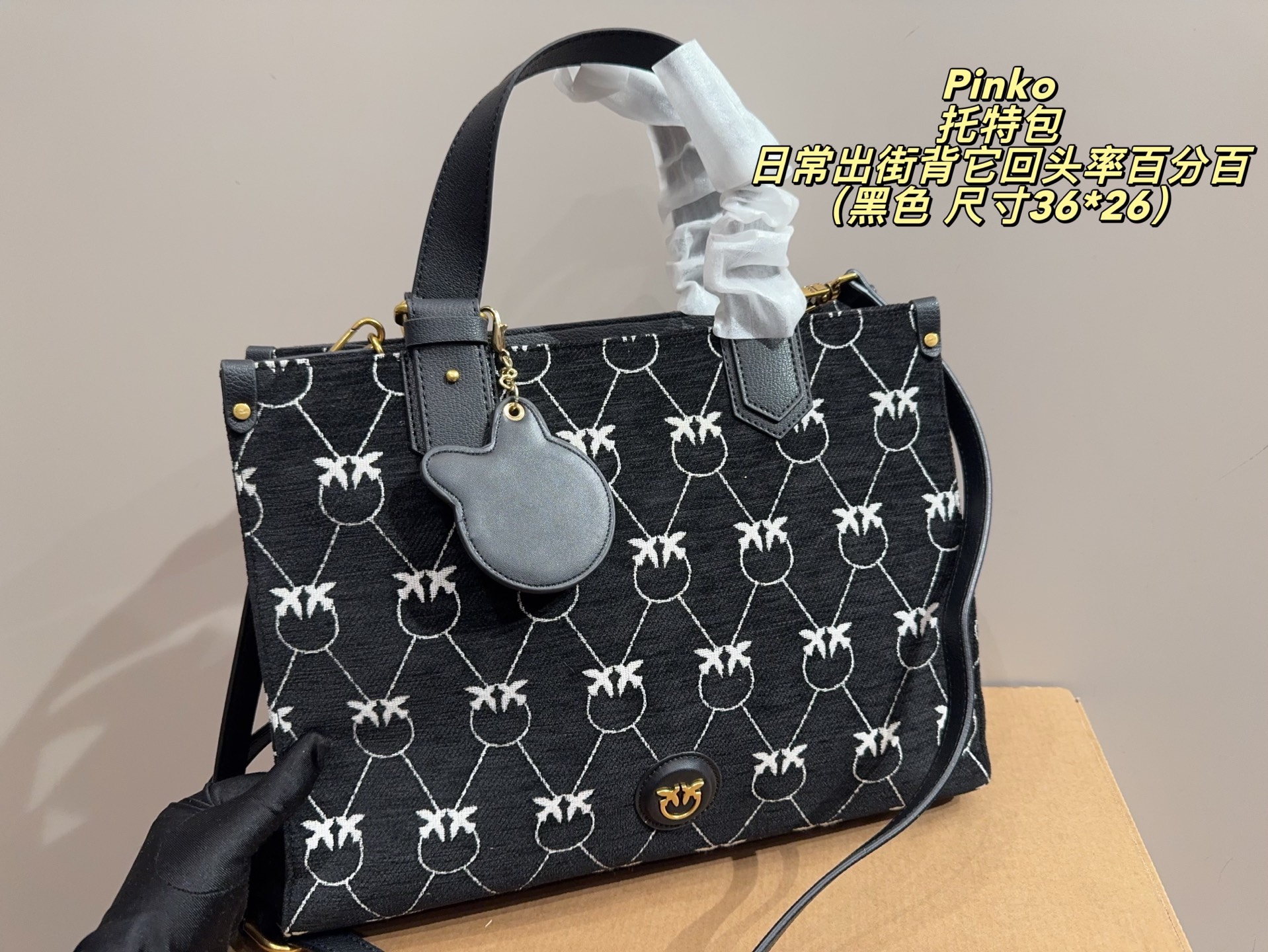這款包包是AAAAA 1:1 質量(非常棒). 使用了和原版一模一樣的材料. 商標部分也保持了和PINKO一樣. 圖片拍攝是實物包包拍攝, 您所收到的實物保證和我們圖片一模一樣.