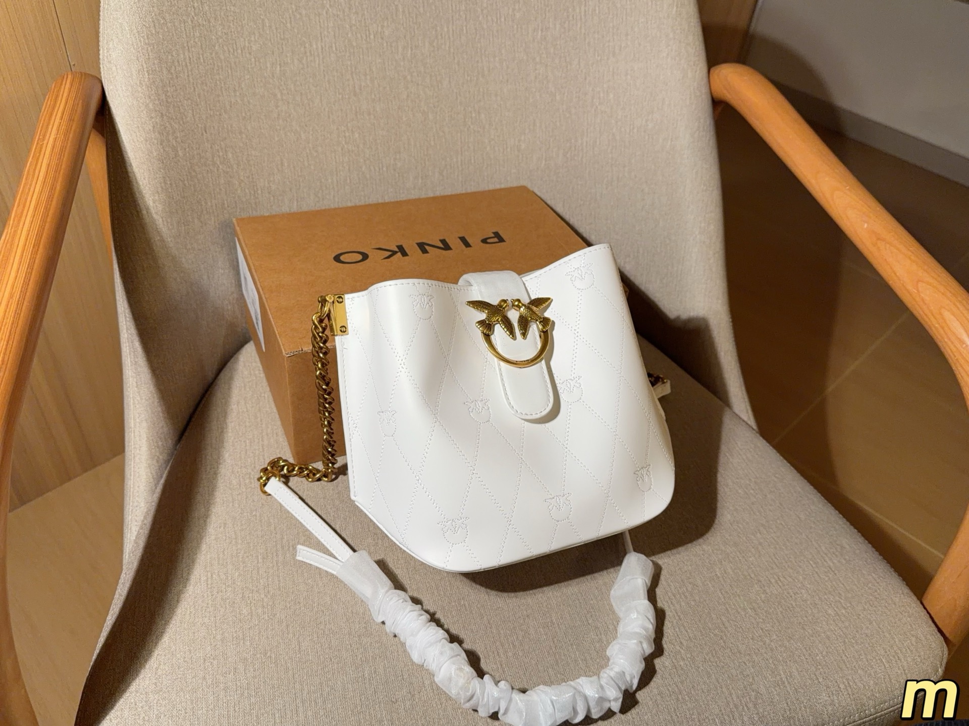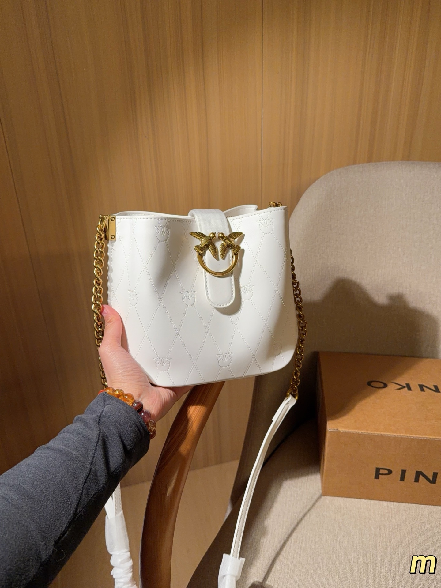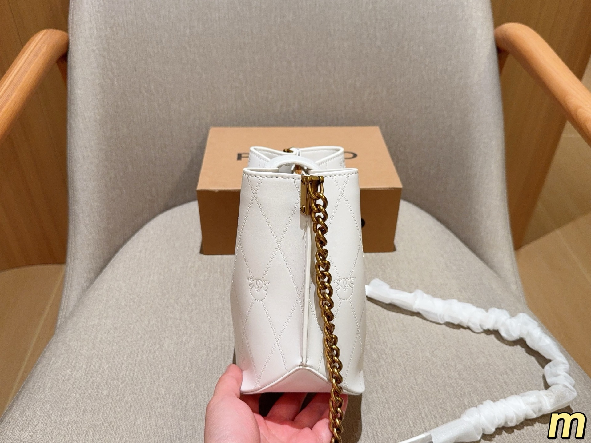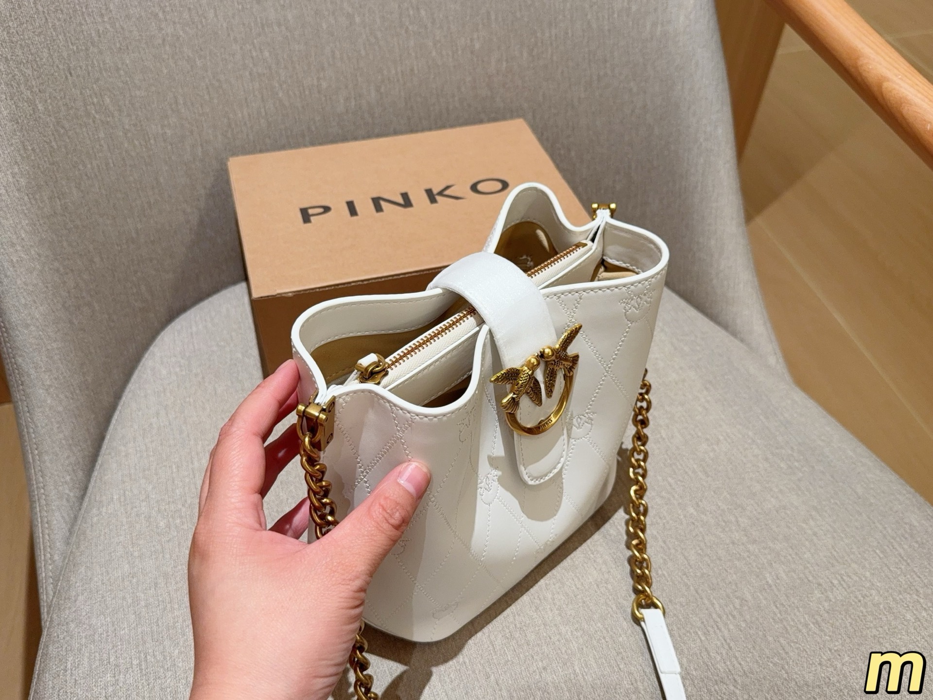這款包包是AAAAA 1:1 質量(非常棒). 使用了和原版一模一樣的材料. 商標部分也保持了和PINKO一樣. 圖片拍攝是實物包包拍攝, 您所收到的實物保證和我們圖片一模一樣.