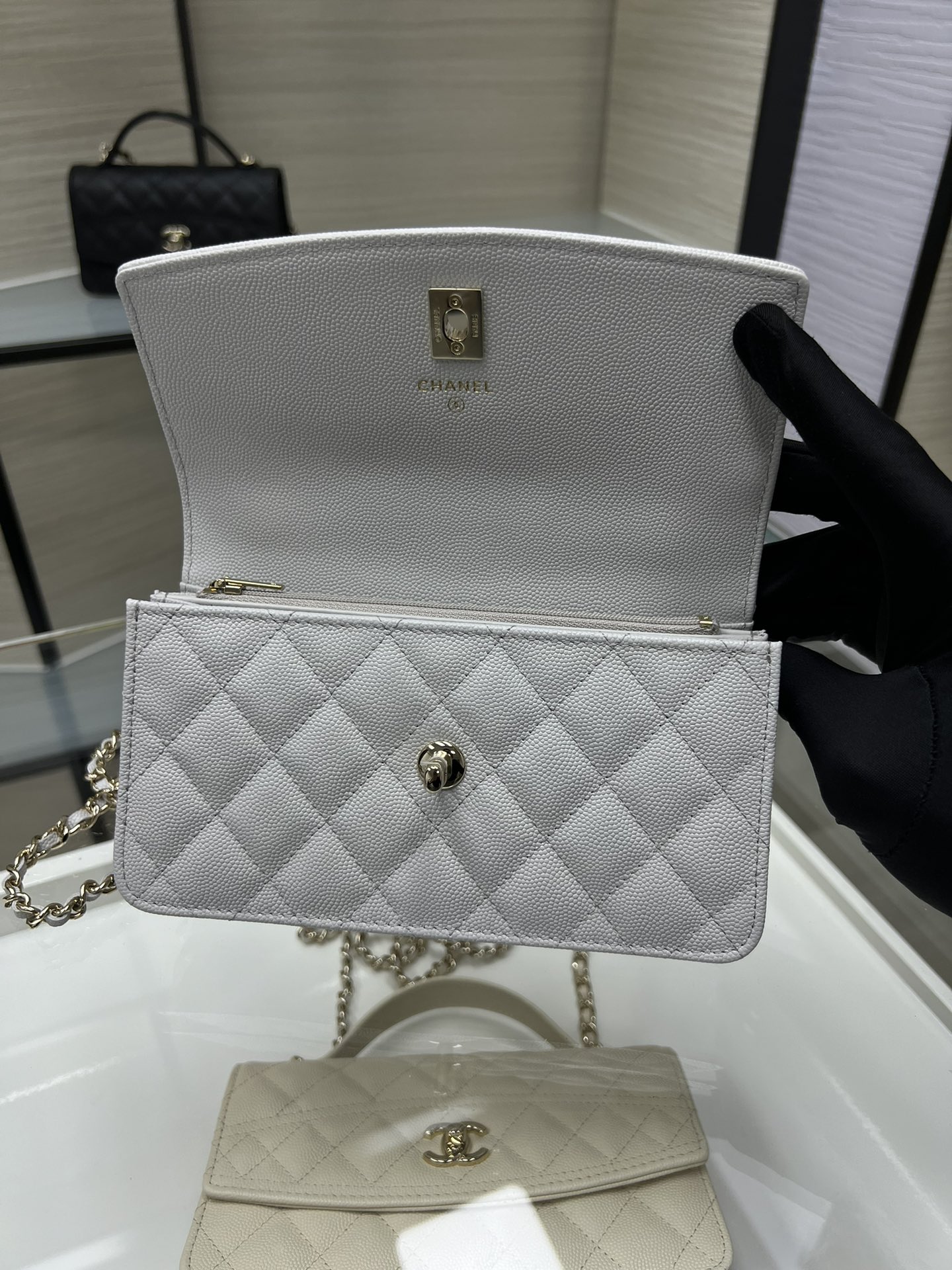 這款包包是AAAAA 1:1 質量(非常棒). 使用了和原版一模一樣的材料. 商標部分也保持了和香奈兒/Chanel一樣. 圖片拍攝是實物包包拍攝, 您所收到的實物保證和我們圖片一模一樣.