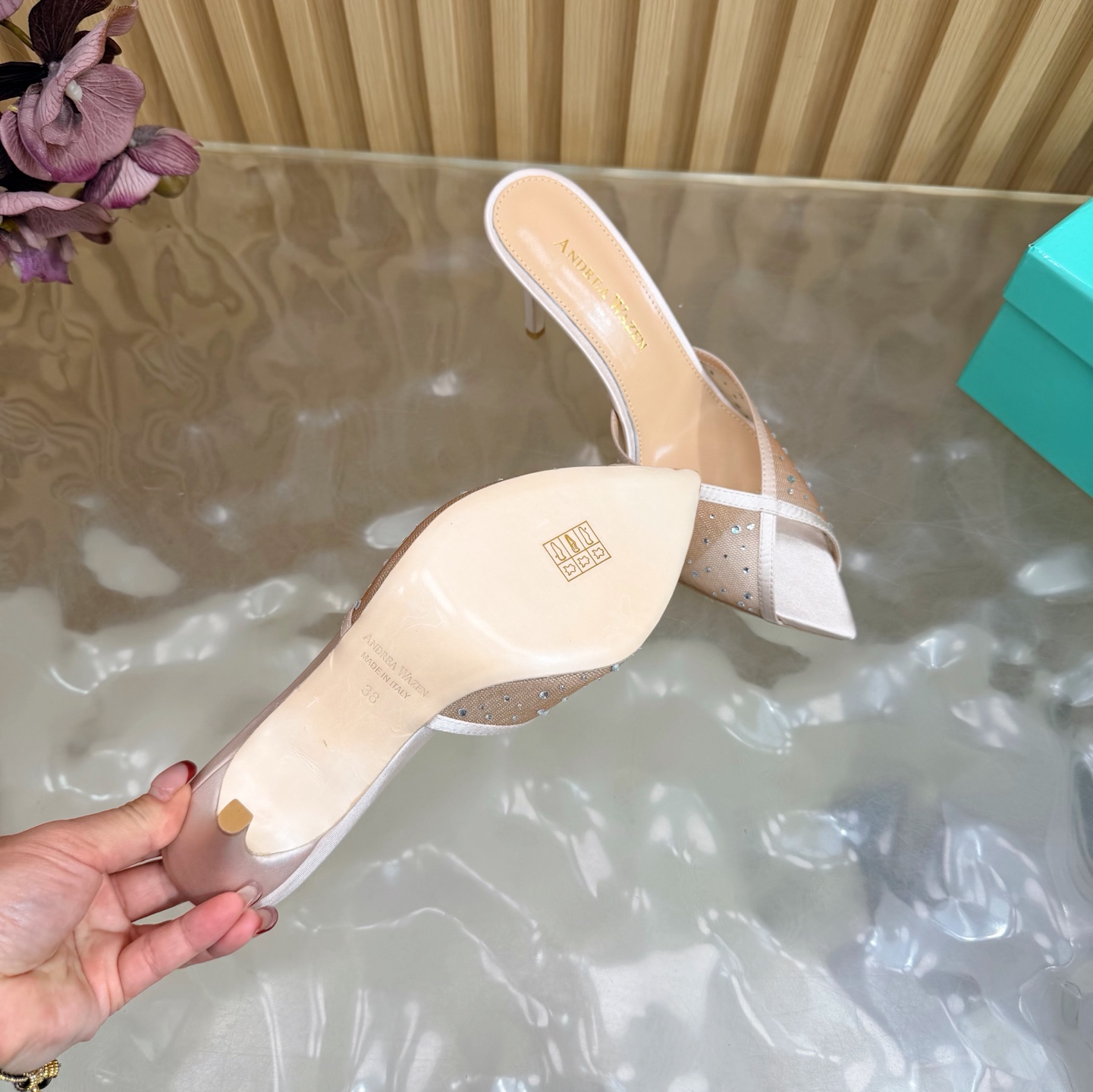 這款鞋子是AAAAA 1:1 質量(非常棒). 使用了和原版一模一樣的材料. 商標部分也保持了和Andrea Wazen一樣. 圖片拍攝是實物鞋子拍攝, 您所收到的實物保證和我們圖片一模一樣.