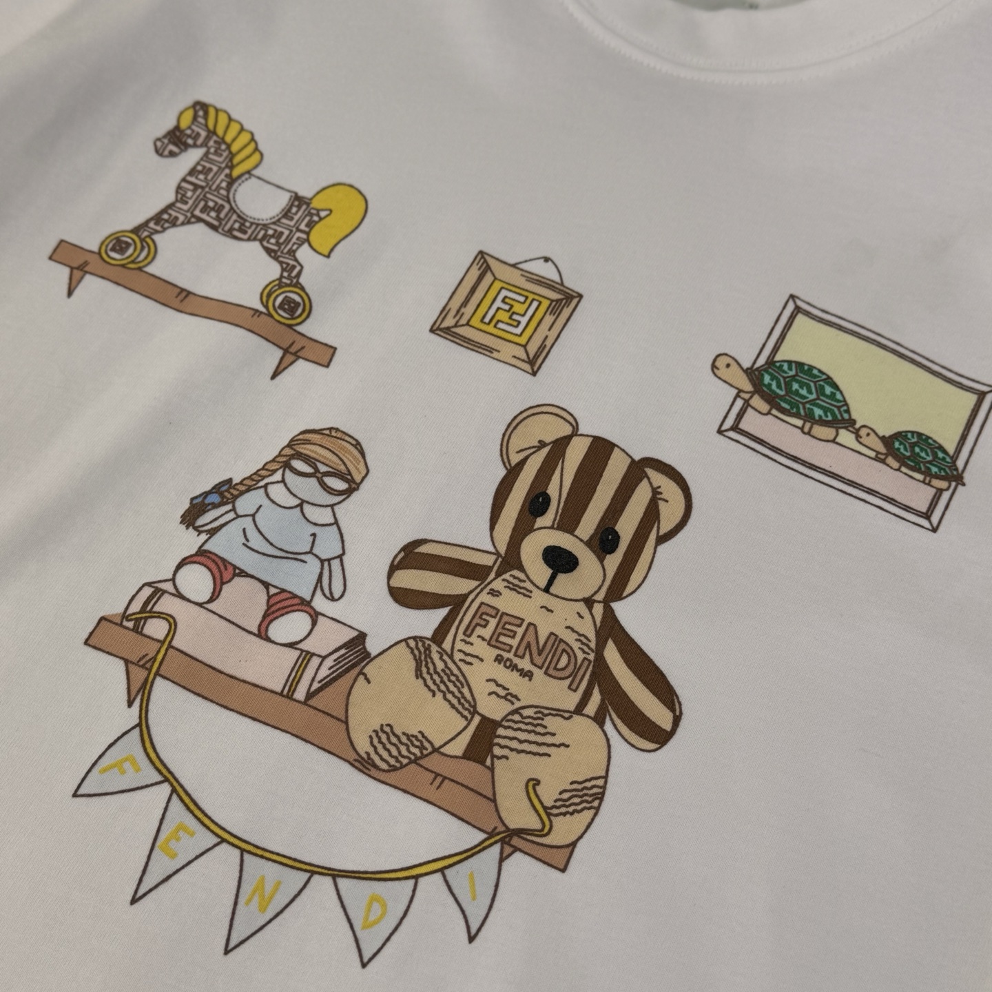這款children's clothes是AAAAA 1:1 質量(非常棒). 使用了和原版一模一樣的材料. 商標部分也保持了和芬迪/Fendi一樣. 圖片拍攝是實物children's clothes拍攝, 您所收到的實物保證和我們圖片一模一樣.