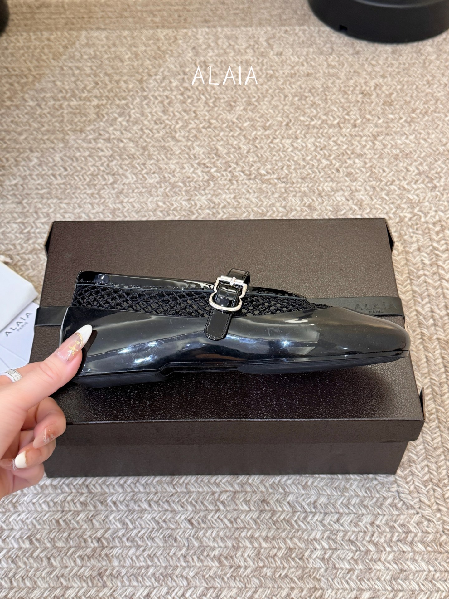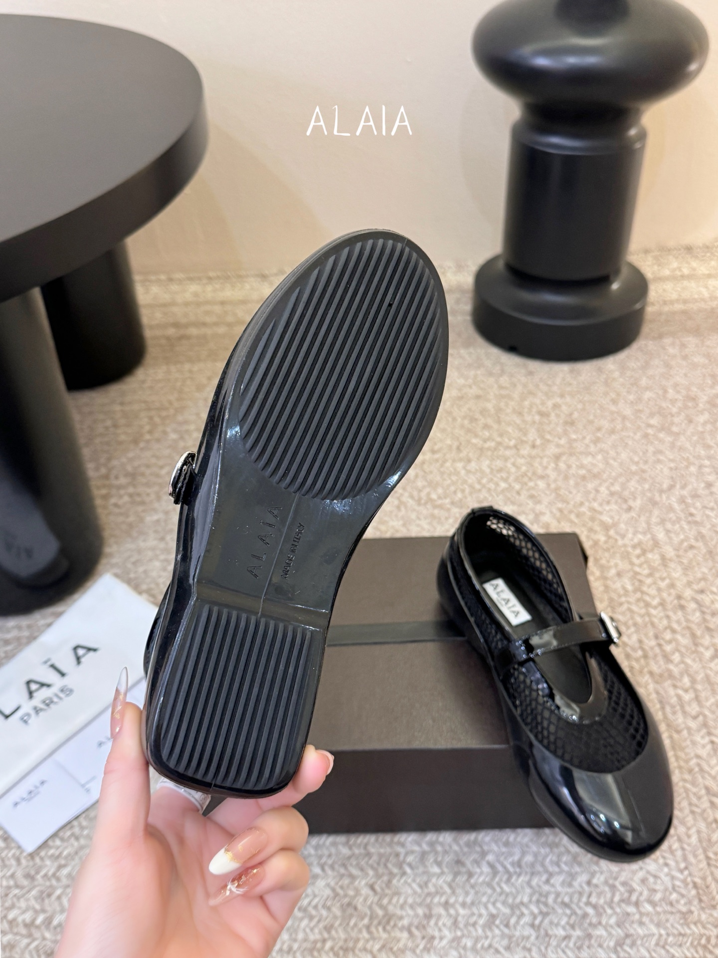 這款鞋子是AAAAA 1:1 質量(非常棒). 使用了和原版一模一樣的材料. 商標部分也保持了和Alaia一樣. 圖片拍攝是實物鞋子拍攝, 您所收到的實物保證和我們圖片一模一樣.