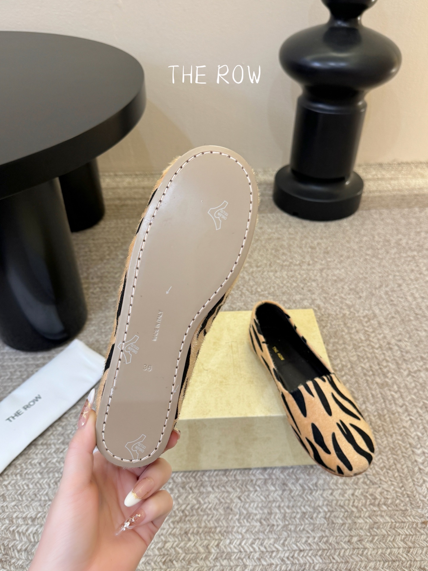 這款鞋子是AAAAA 1:1 質量(非常棒). 使用了和原版一模一樣的材料. 商標部分也保持了和The Row一樣. 圖片拍攝是實物鞋子拍攝, 您所收到的實物保證和我們圖片一模一樣.