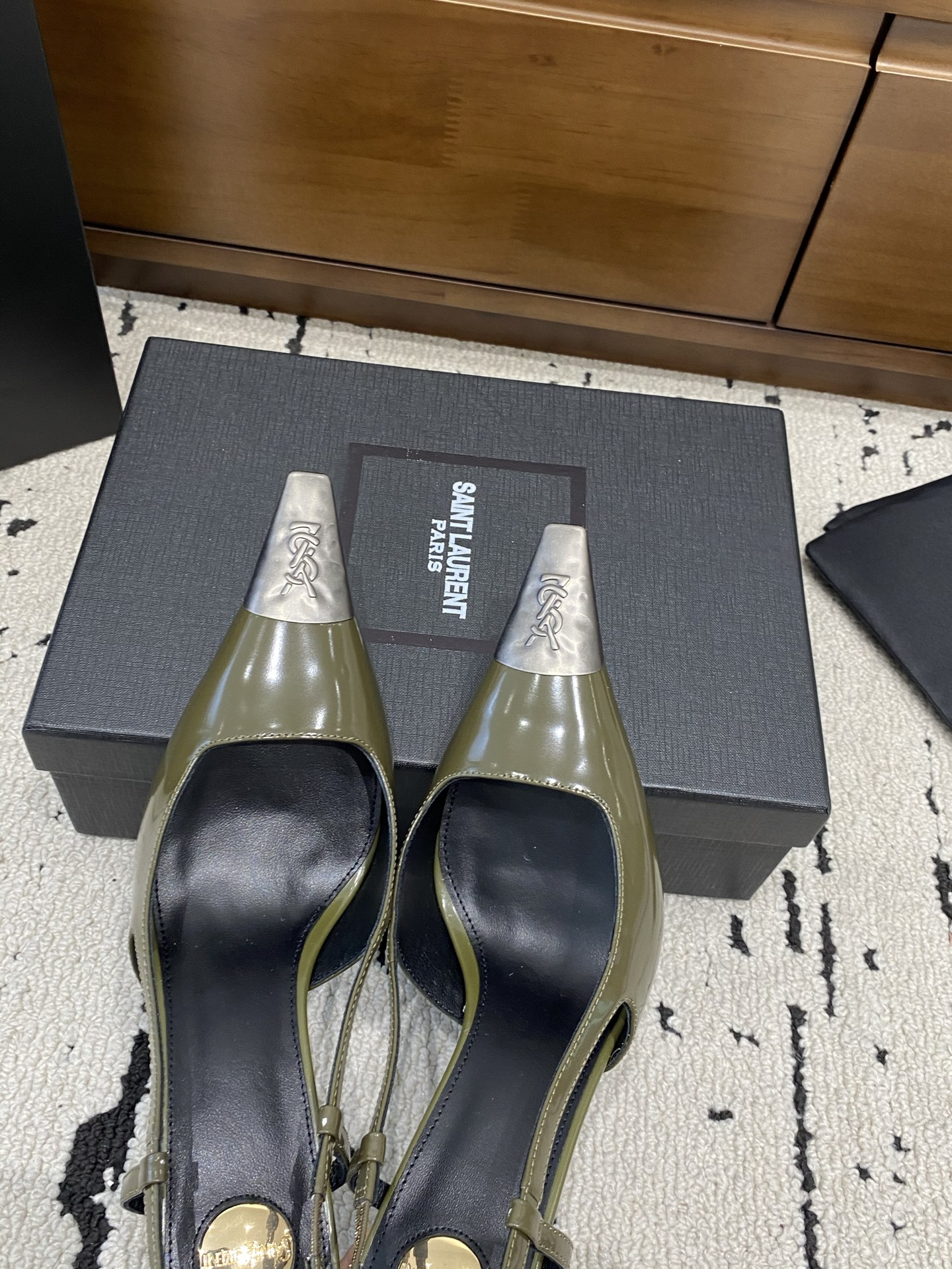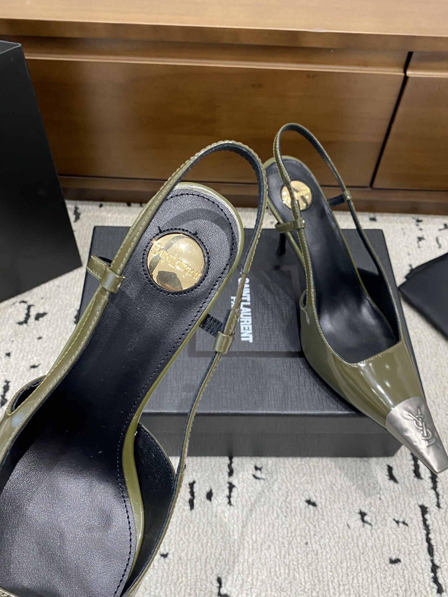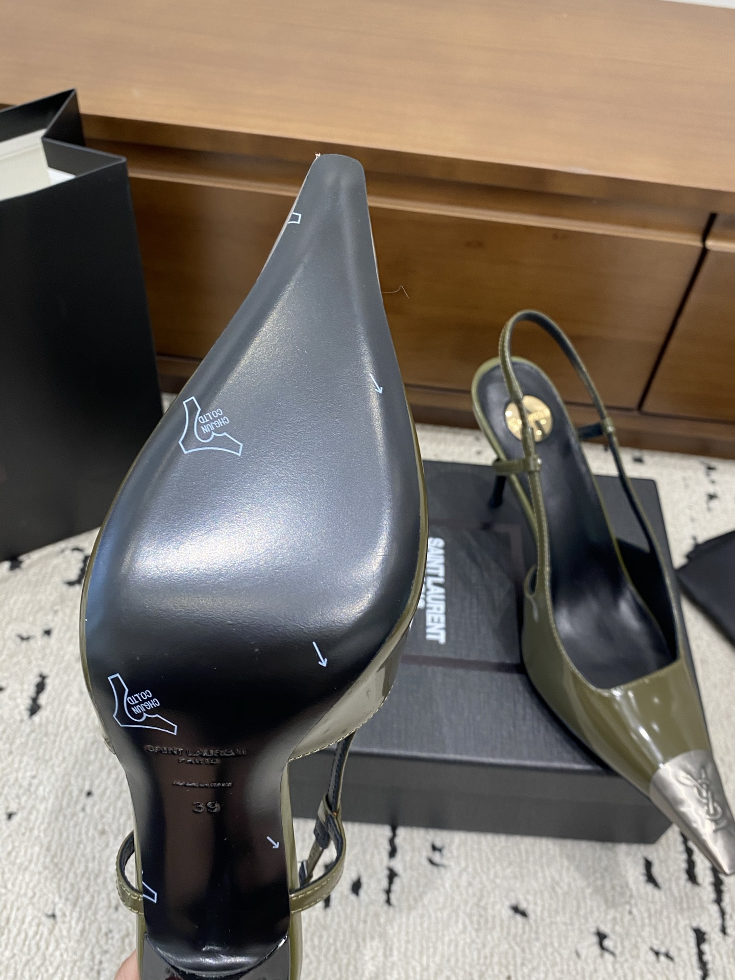 這款鞋子是AAAAA 1:1 質量(非常棒). 使用了和原版一模一樣的材料. 商標部分也保持了和聖羅蘭/Saint Laurent一樣. 圖片拍攝是實物鞋子拍攝, 您所收到的實物保證和我們圖片一模一樣.