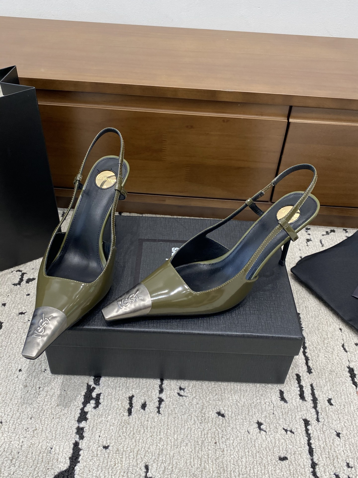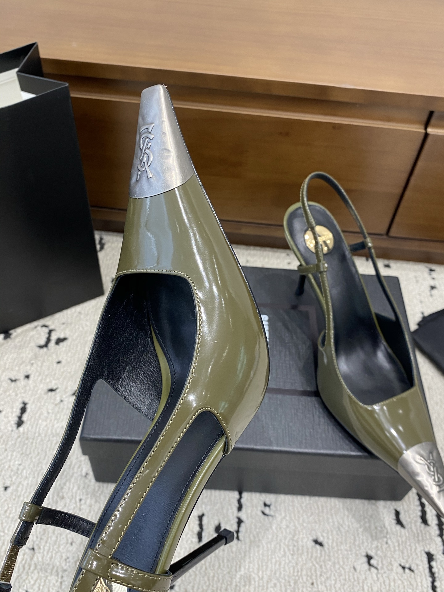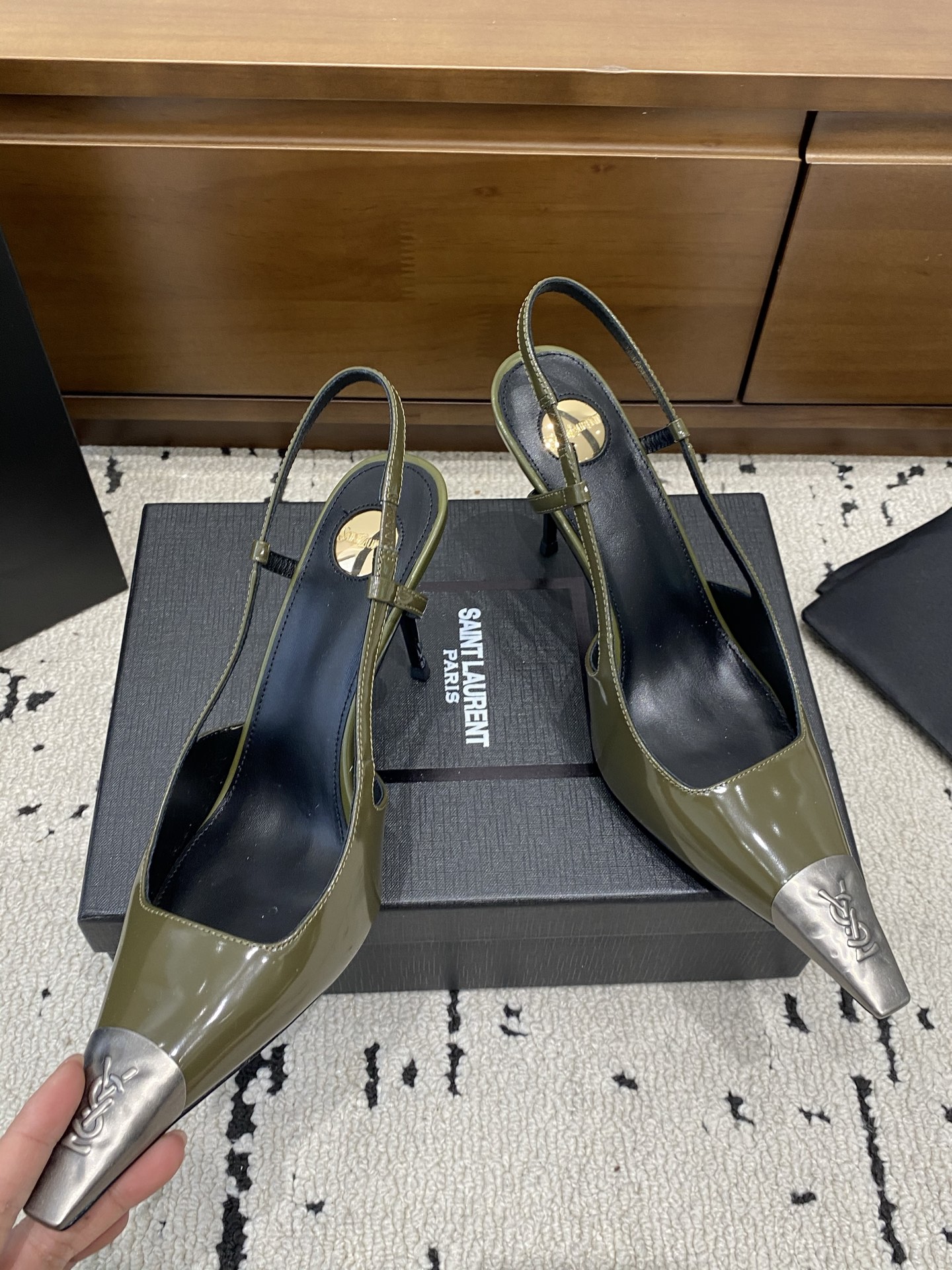 這款鞋子是AAAAA 1:1 質量(非常棒). 使用了和原版一模一樣的材料. 商標部分也保持了和聖羅蘭/Saint Laurent一樣. 圖片拍攝是實物鞋子拍攝, 您所收到的實物保證和我們圖片一模一樣.
