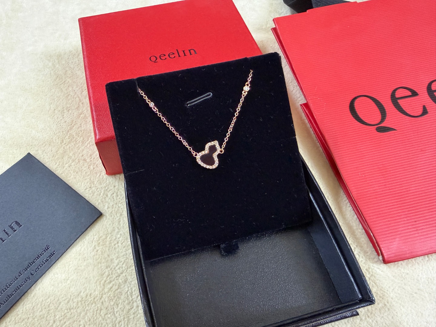 這款首飾是AAAAA 1:1 質量(非常棒). 使用了和原版一模一樣的材料. 商標部分也保持了和Qeelin一樣. 圖片拍攝是實物首飾拍攝, 您所收到的實物保證和我們圖片一模一樣.