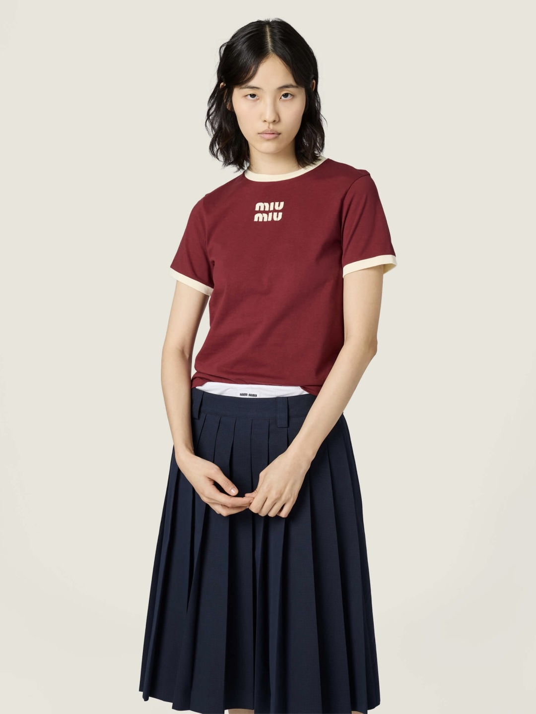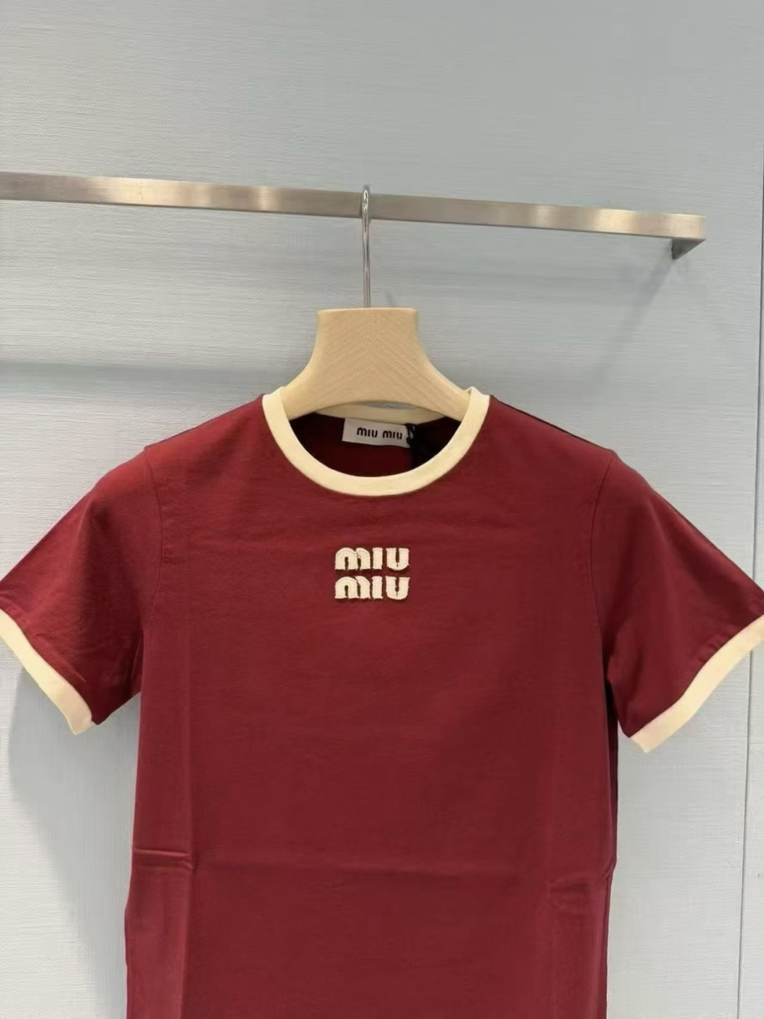 這款衣服是AAAAA 1:1 質量(非常棒). 使用了和原版一模一樣的材料. 商標部分也保持了和繆繆/Miu Miu一樣. 圖片拍攝是實物衣服拍攝, 您所收到的實物保證和我們圖片一模一樣.