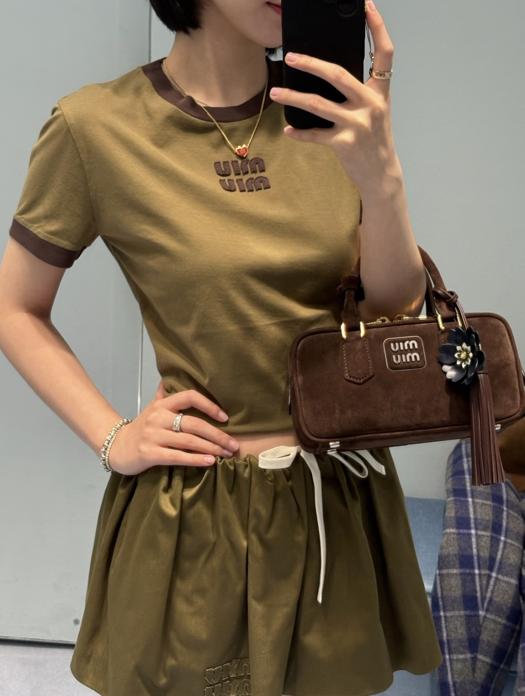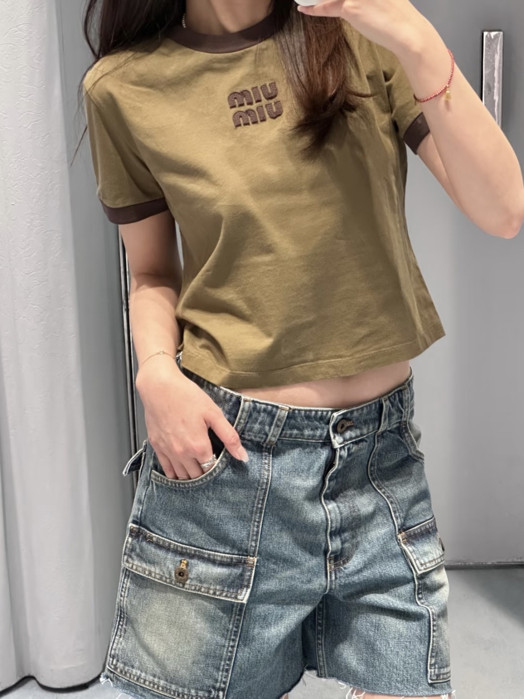 這款衣服是AAAAA 1:1 質量(非常棒). 使用了和原版一模一樣的材料. 商標部分也保持了和繆繆/Miu Miu一樣. 圖片拍攝是實物衣服拍攝, 您所收到的實物保證和我們圖片一模一樣.