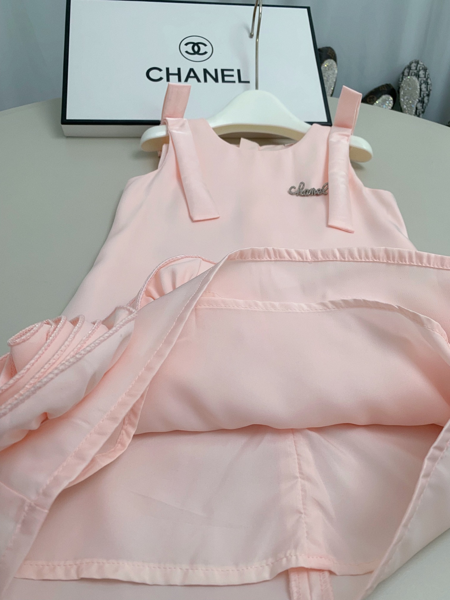 這款children's clothes是AAAAA 1:1 質量(非常棒). 使用了和原版一模一樣的材料. 商標部分也保持了和香奈兒/Chanel一樣. 圖片拍攝是實物children's clothes拍攝, 您所收到的實物保證和我們圖片一模一樣.