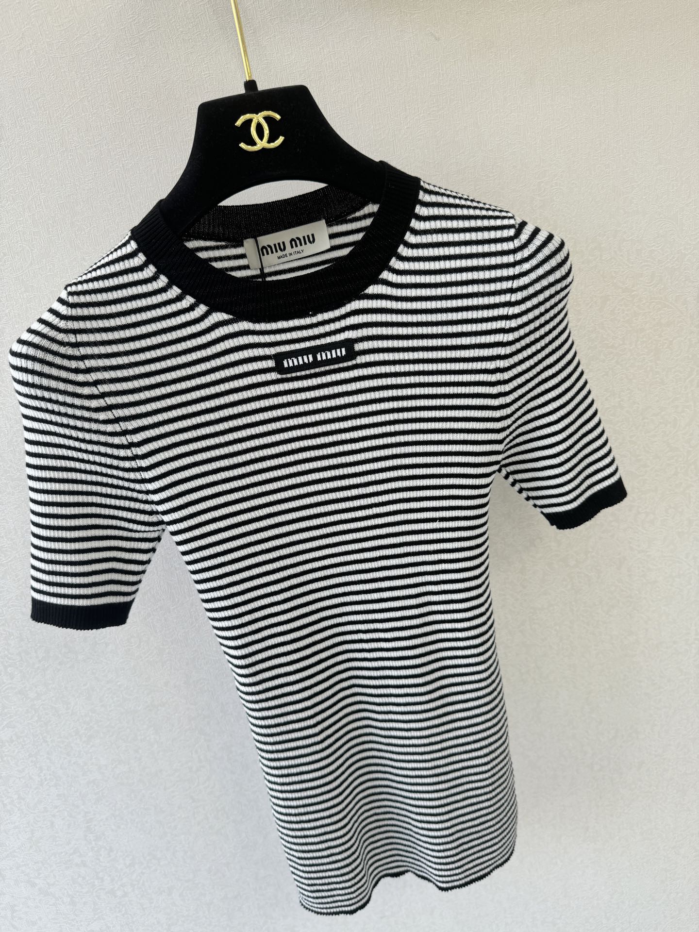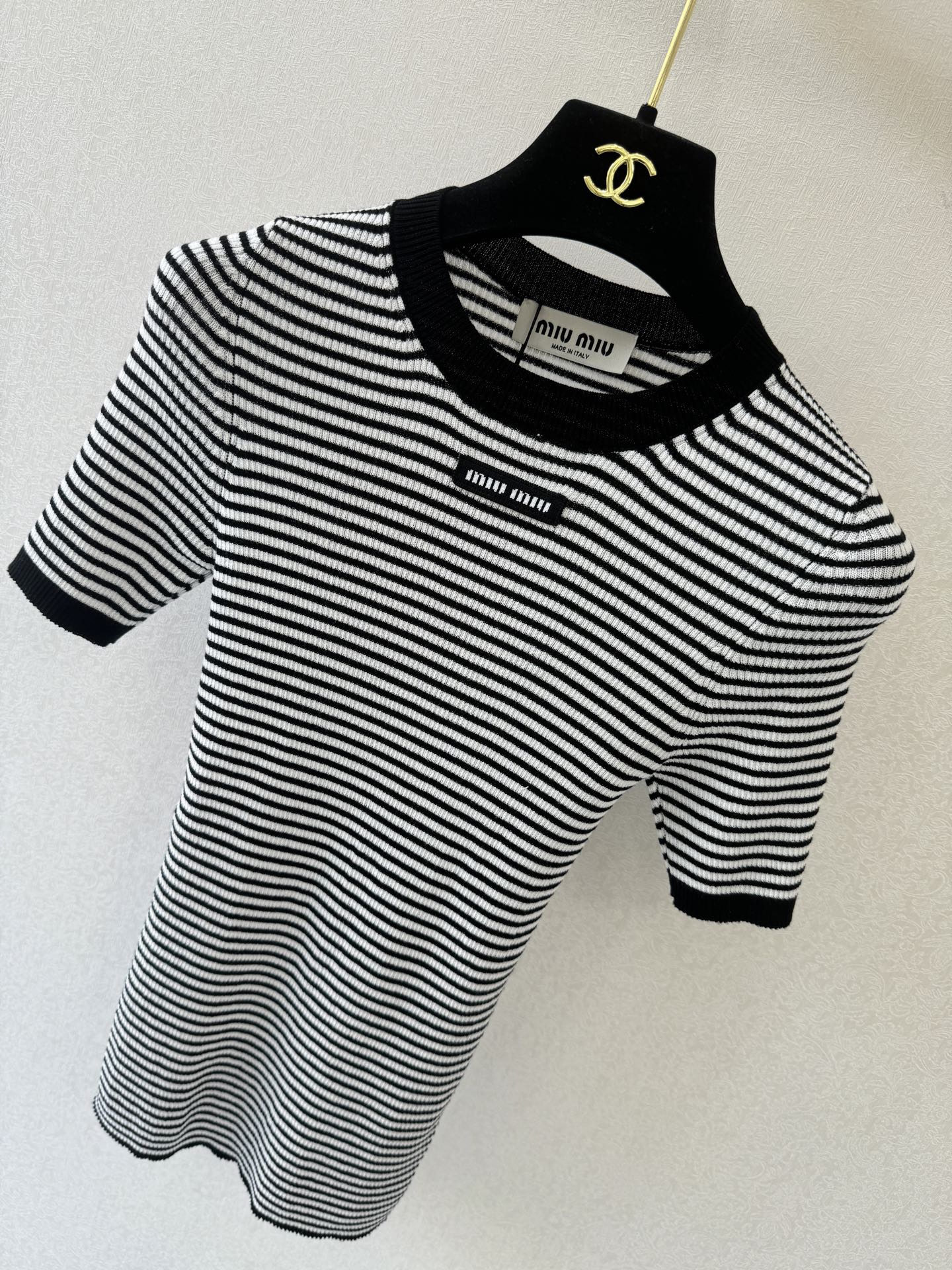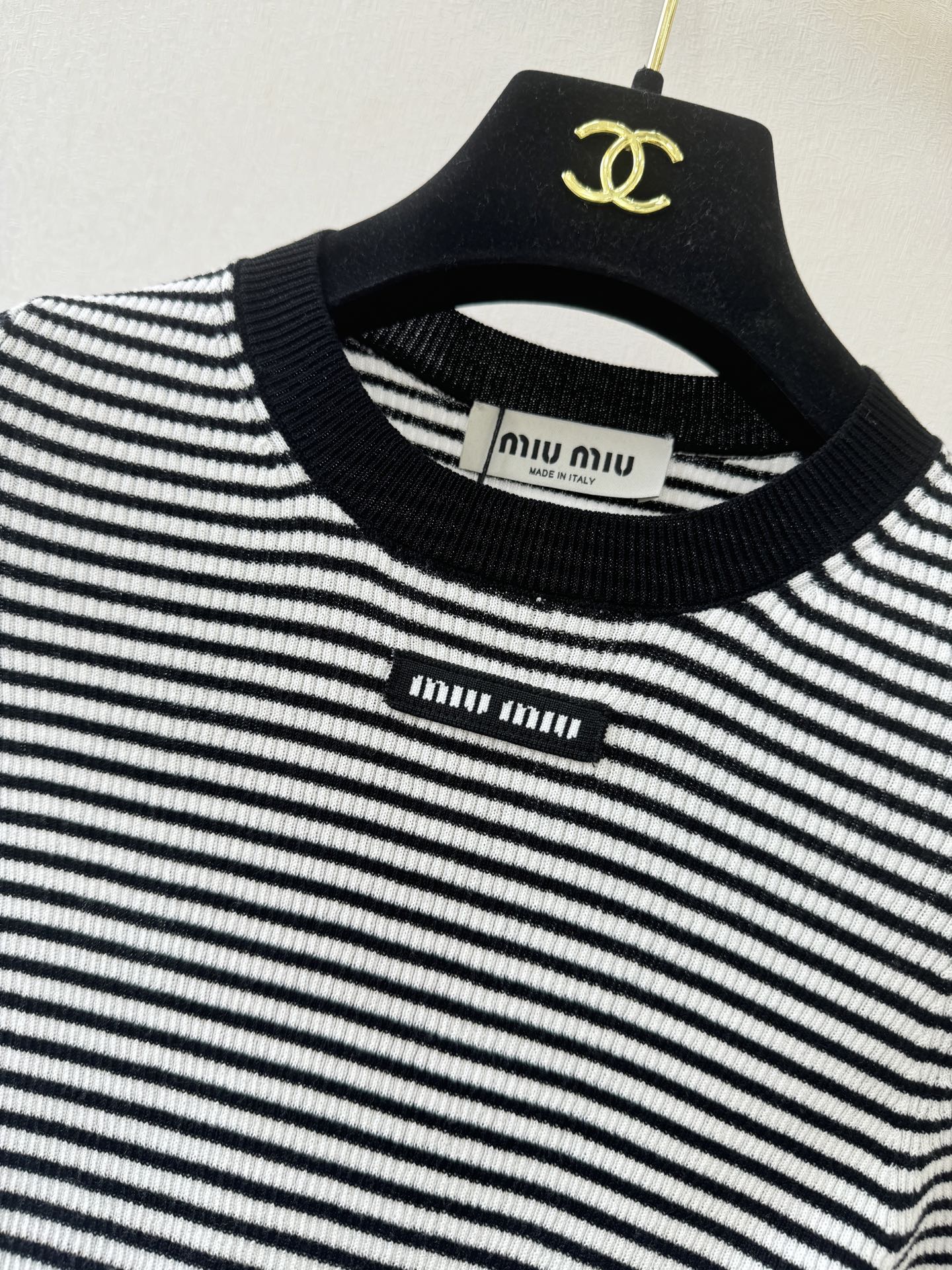 這款衣服是AAAAA 1:1 質量(非常棒). 使用了和原版一模一樣的材料. 商標部分也保持了和繆繆/Miu Miu一樣. 圖片拍攝是實物衣服拍攝, 您所收到的實物保證和我們圖片一模一樣.