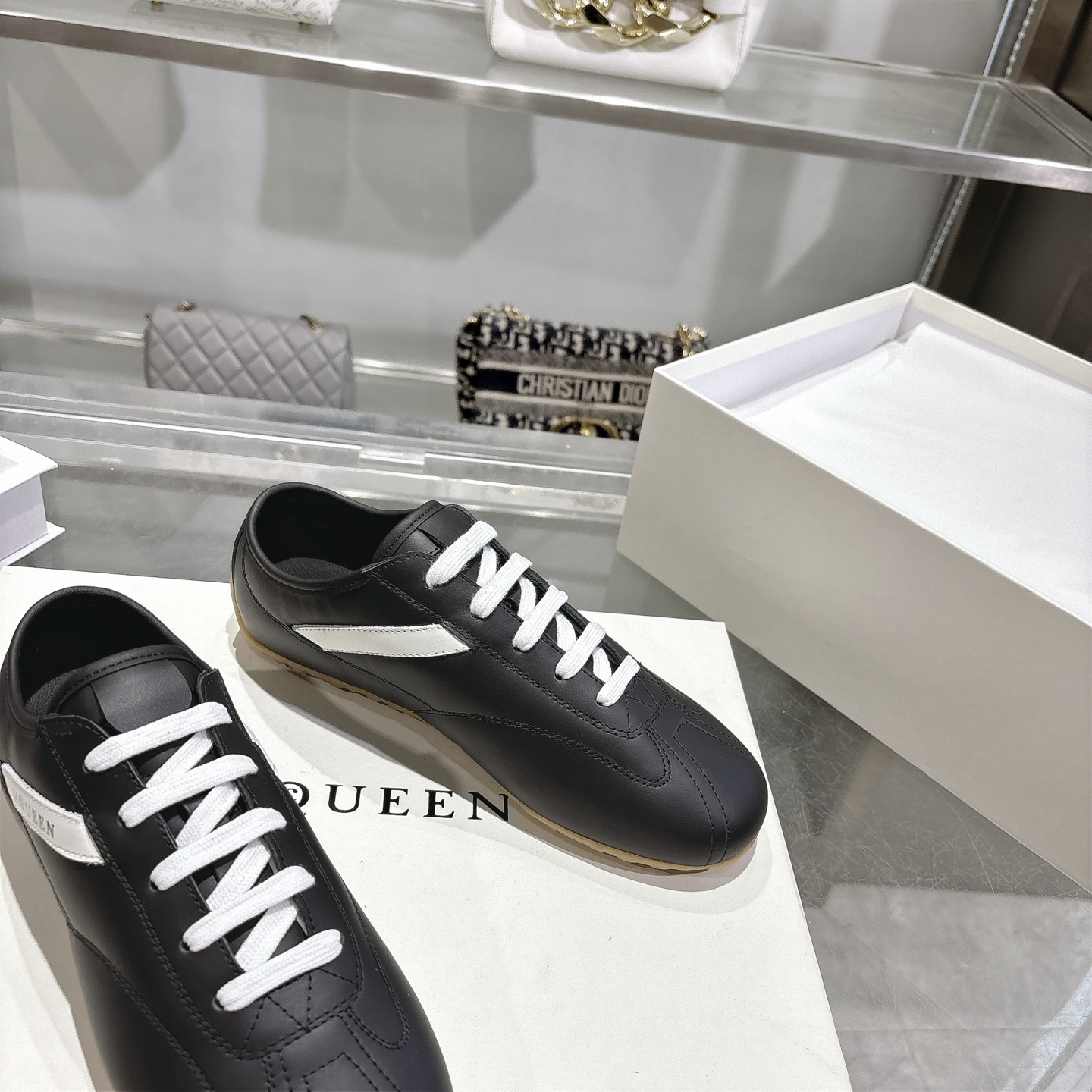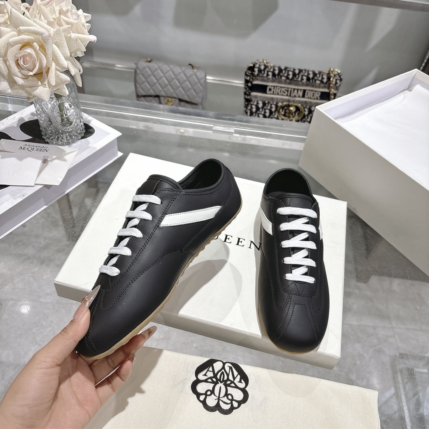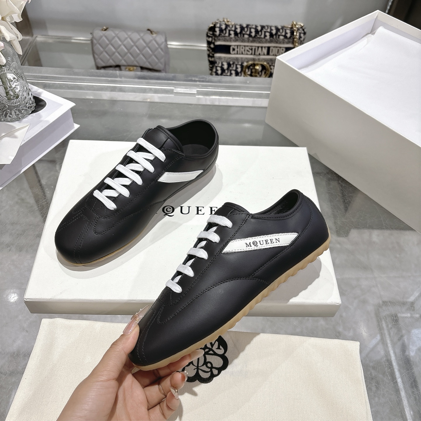 這款鞋子是AAAAA 1:1 質量(非常棒). 使用了和原版一模一樣的材料. 商標部分也保持了和麥奎恩/McQueen一樣. 圖片拍攝是實物鞋子拍攝, 您所收到的實物保證和我們圖片一模一樣.