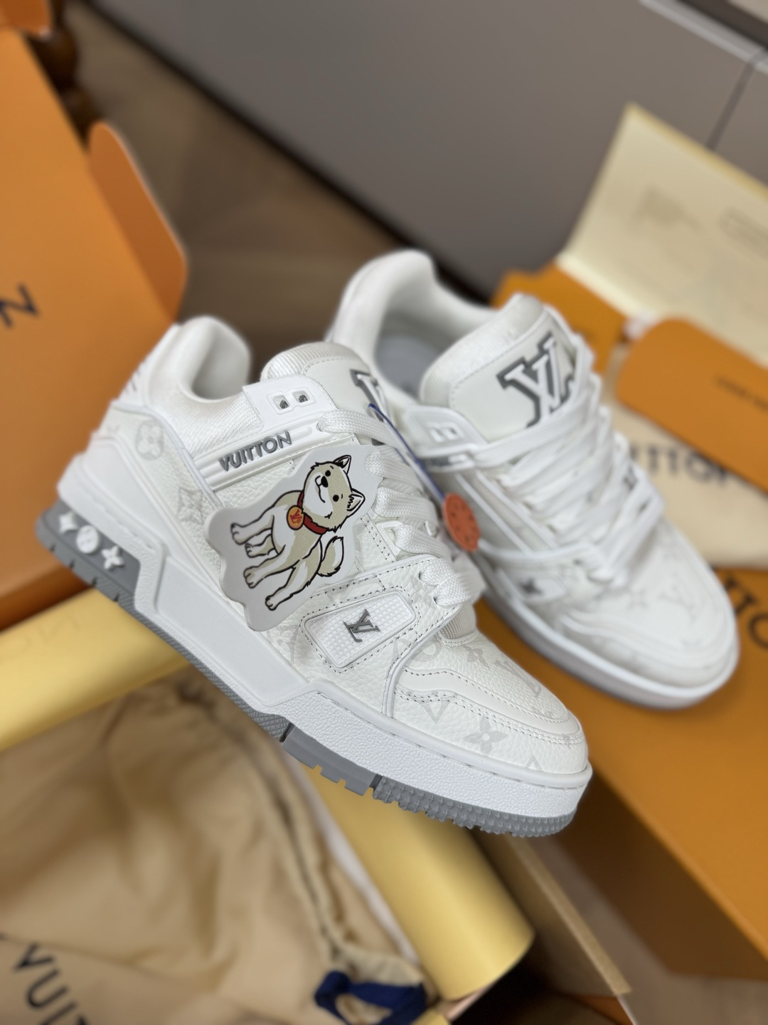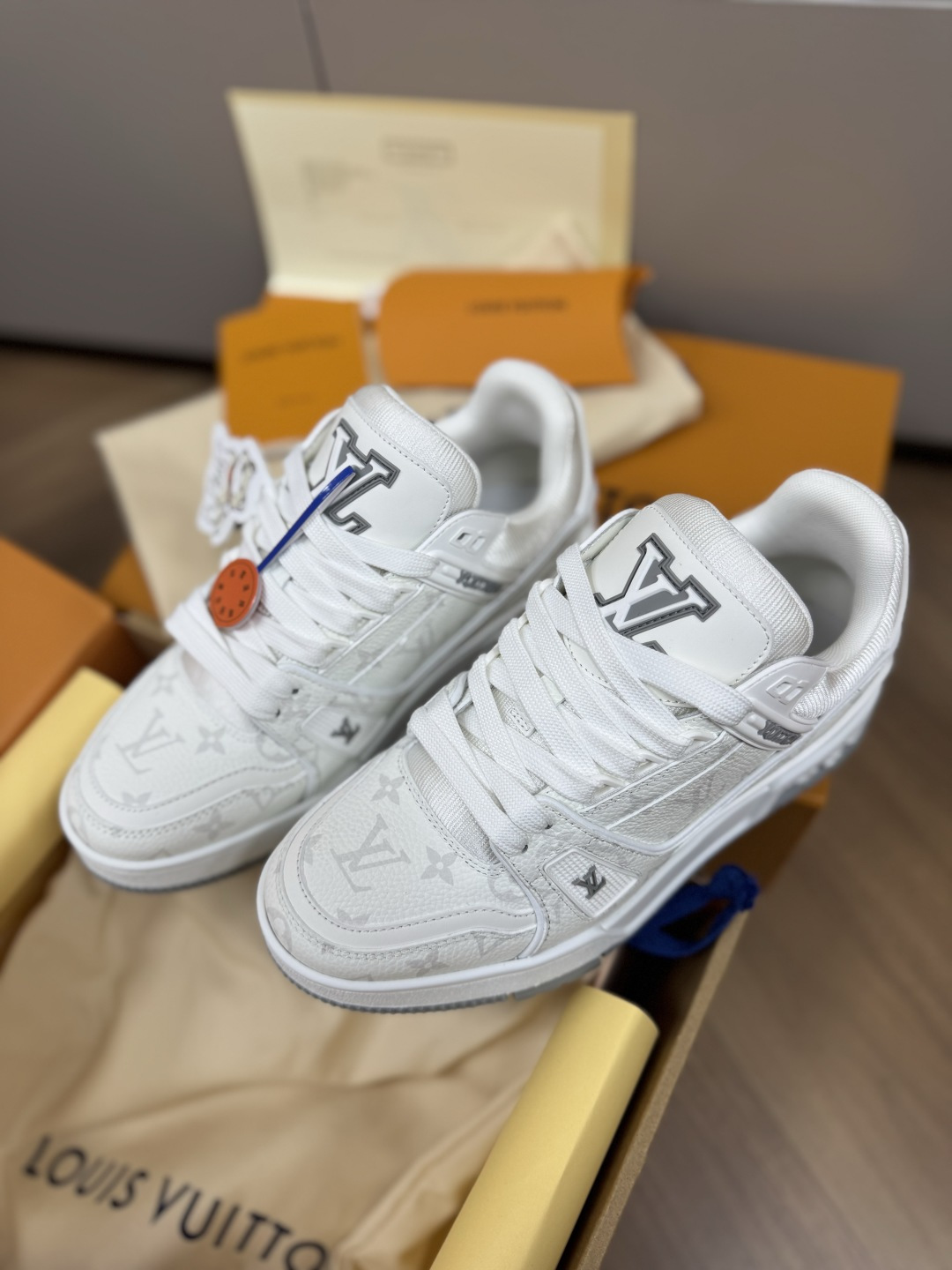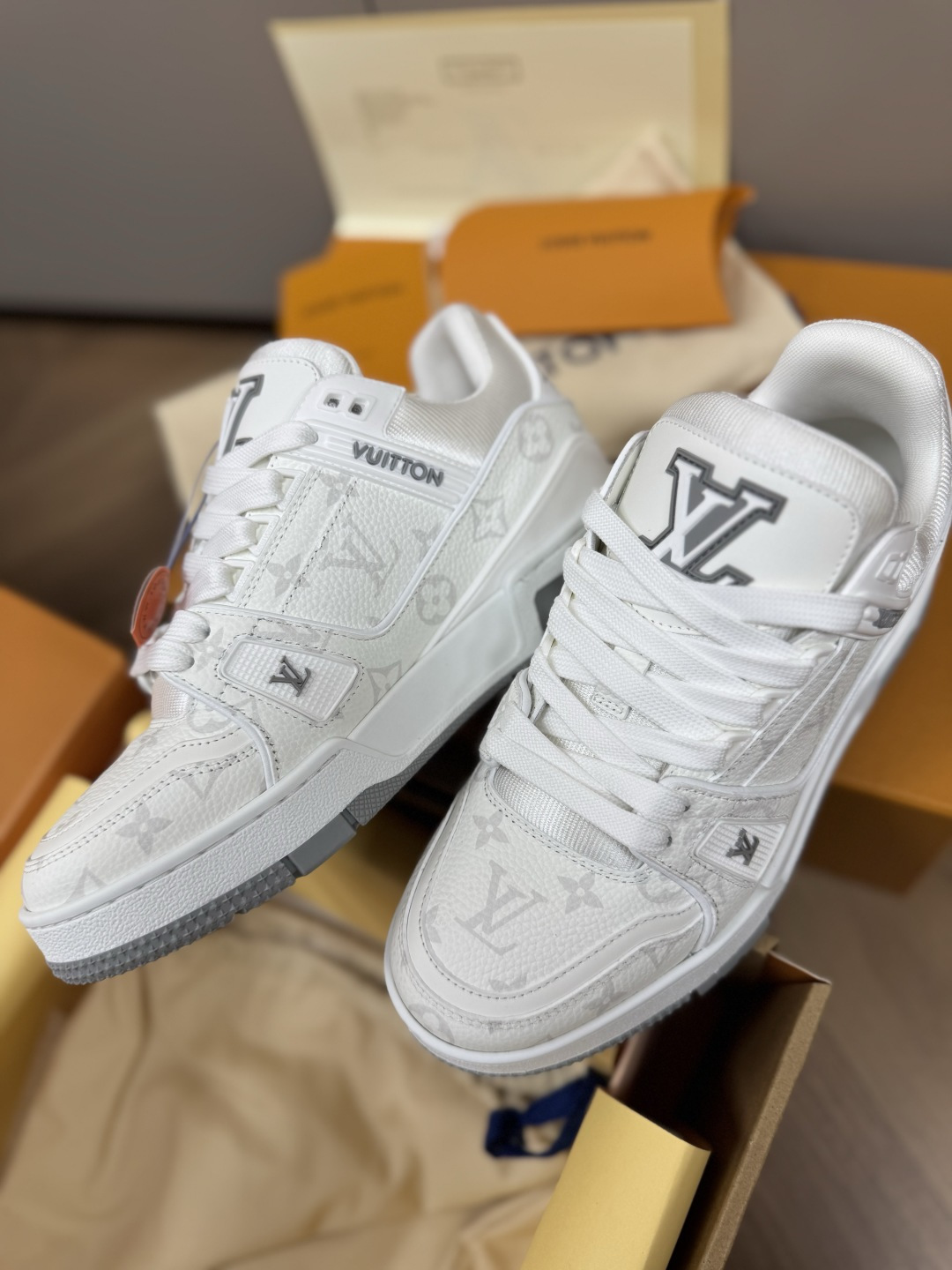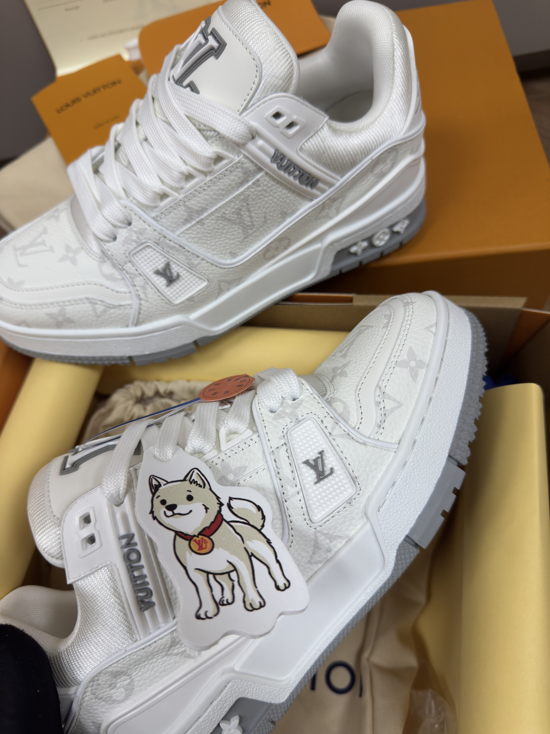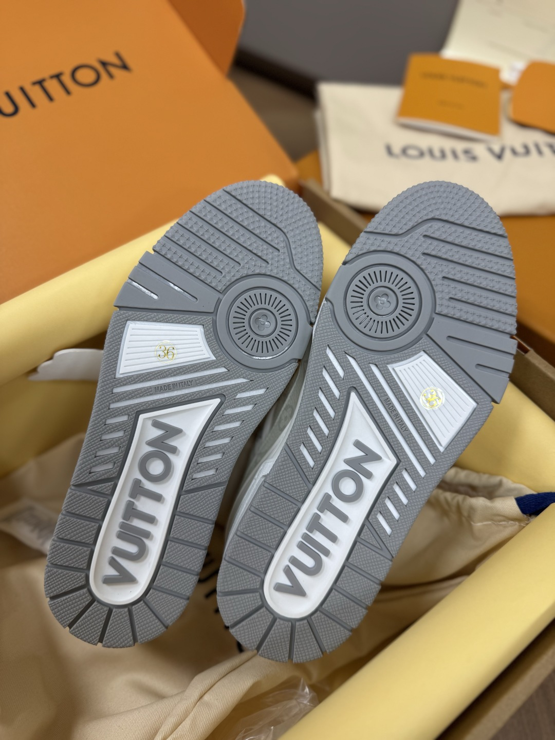 這款鞋子是AAAAA 1:1 質量(非常棒). 使用了和原版一模一樣的材料. 商標部分也保持了和路易威登/Louis Vuitton一樣. 圖片拍攝是實物鞋子拍攝, 您所收到的實物保證和我們圖片一模一樣.