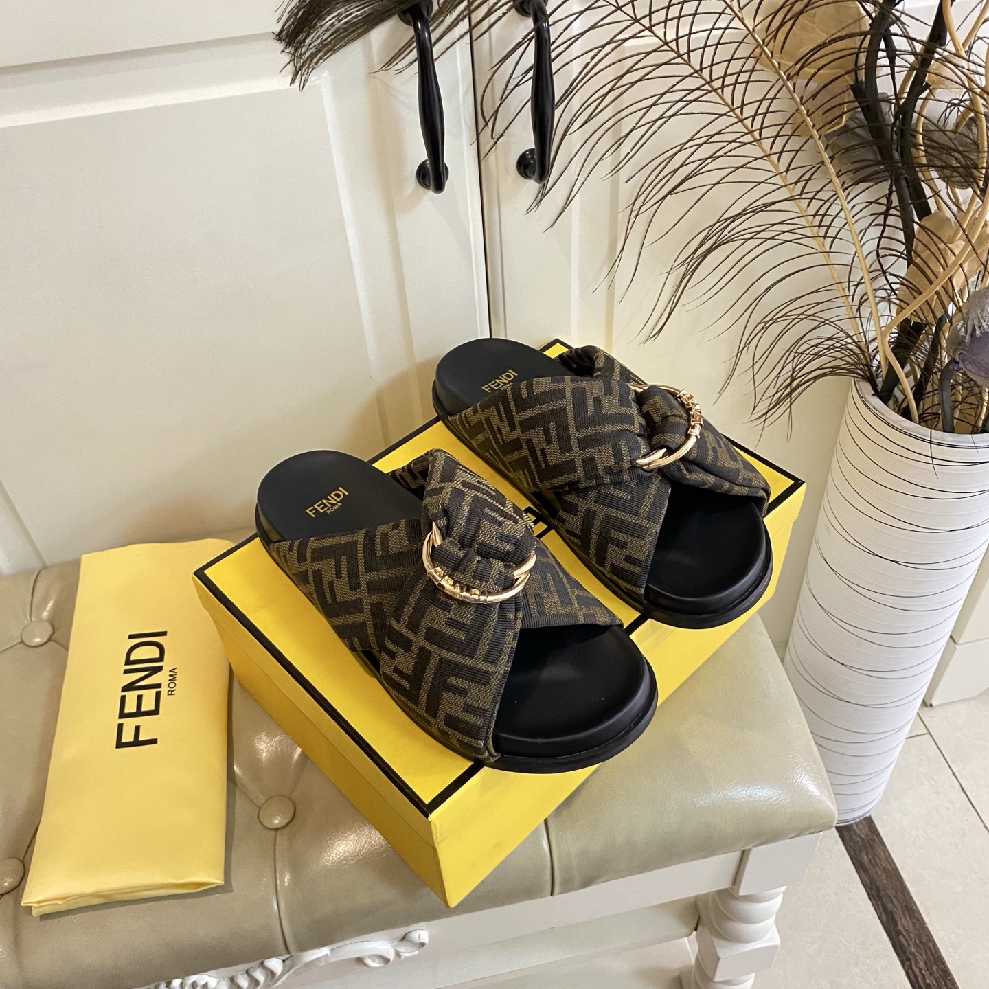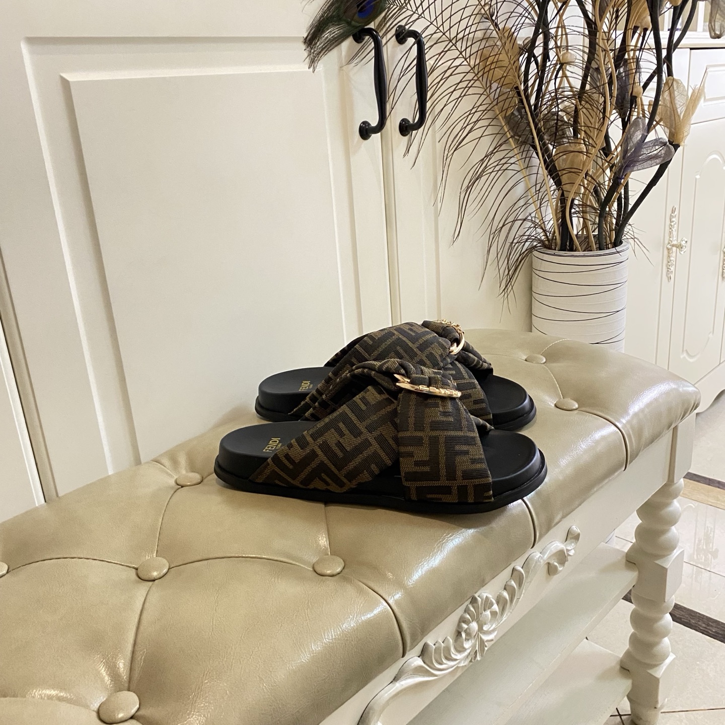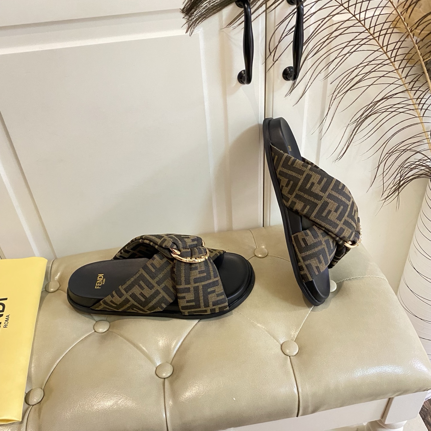 這款鞋子是AAAAA 1:1 質量(非常棒). 使用了和原版一模一樣的材料. 商標部分也保持了和芬迪/Fendi一樣. 圖片拍攝是實物鞋子拍攝, 您所收到的實物保證和我們圖片一模一樣.