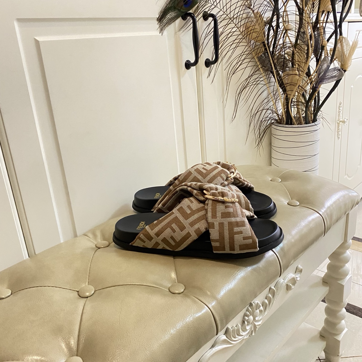 這款鞋子是AAAAA 1:1 質量(非常棒). 使用了和原版一模一樣的材料. 商標部分也保持了和芬迪/Fendi一樣. 圖片拍攝是實物鞋子拍攝, 您所收到的實物保證和我們圖片一模一樣.