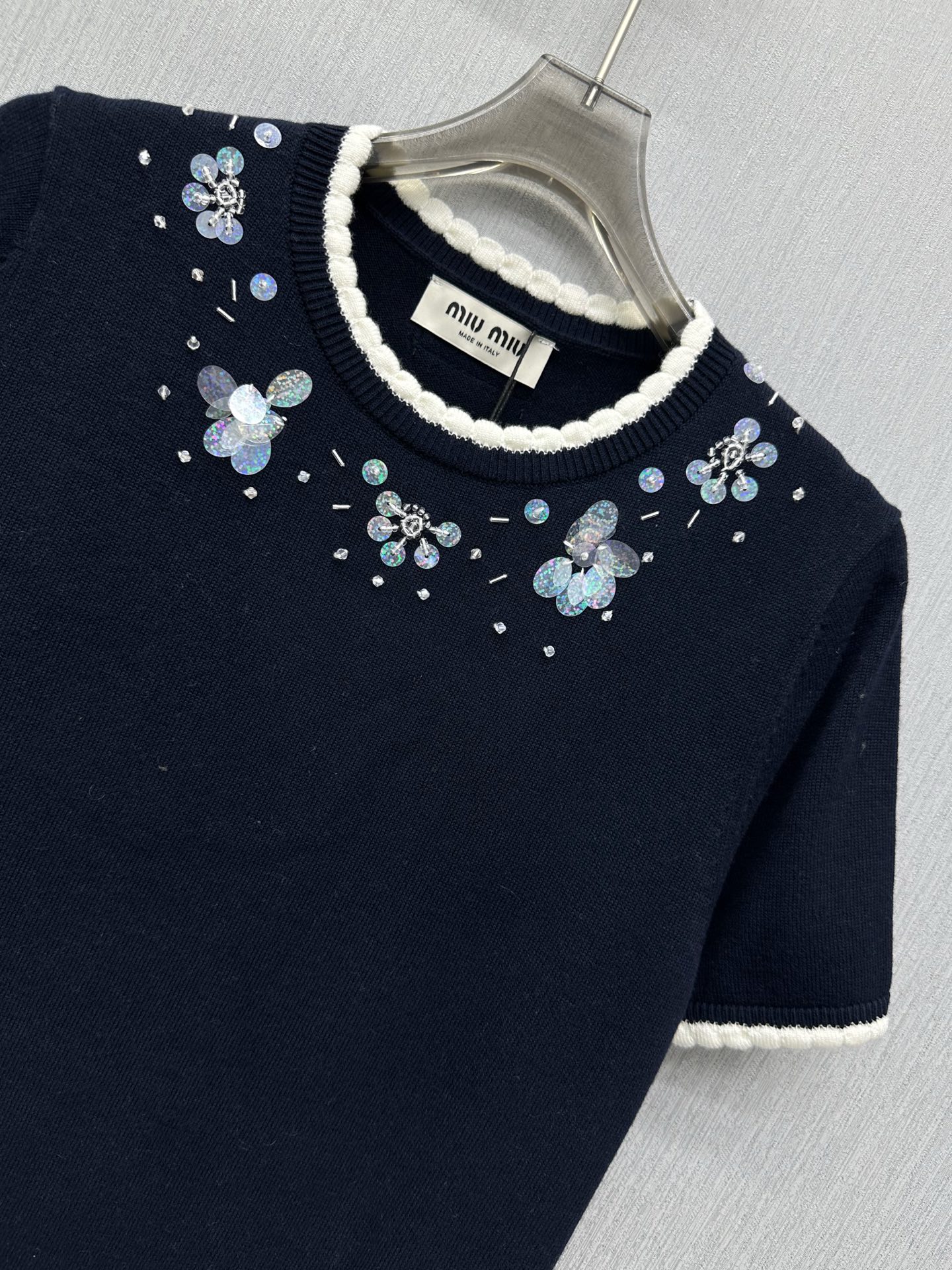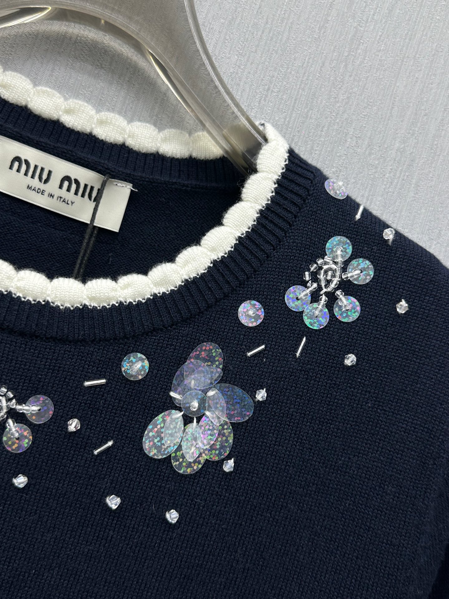 這款衣服是AAAAA 1:1 質量(非常棒). 使用了和原版一模一樣的材料. 商標部分也保持了和繆繆/Miu Miu一樣. 圖片拍攝是實物衣服拍攝, 您所收到的實物保證和我們圖片一模一樣.