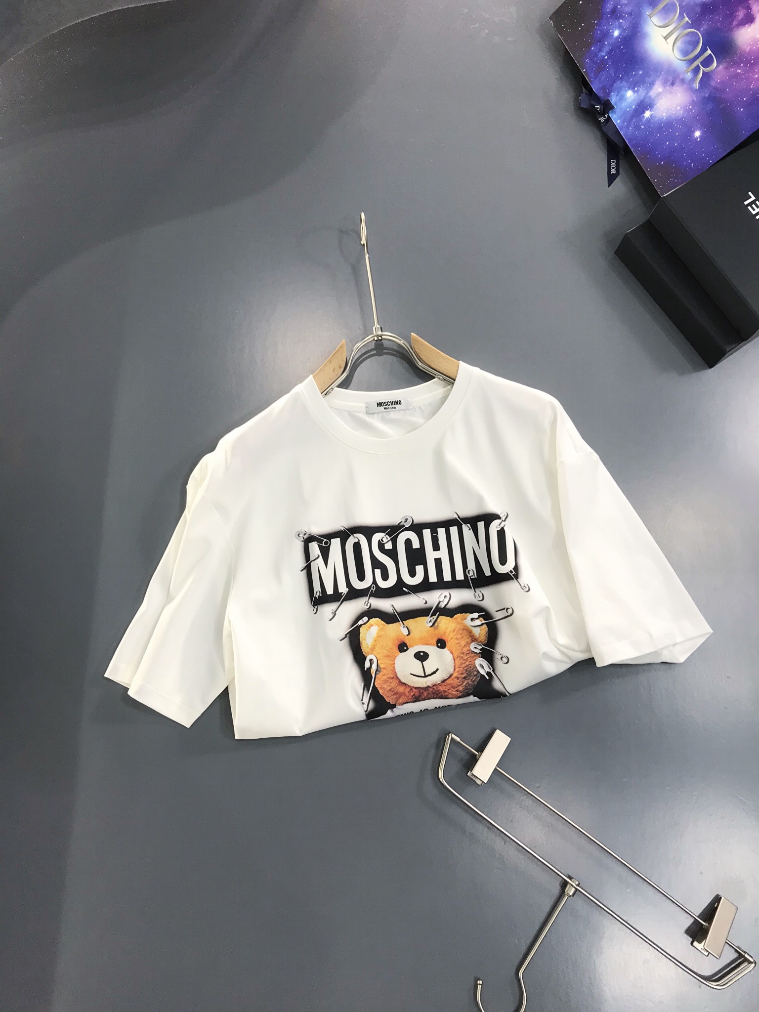 這款衣服是AAAAA 1:1 質量(非常棒). 使用了和原版一模一樣的材料. 商標部分也保持了和莫斯基諾/Moschino一樣. 圖片拍攝是實物衣服拍攝, 您所收到的實物保證和我們圖片一模一樣.