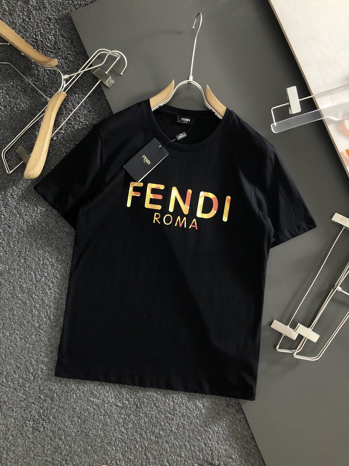 這款衣服是AAAAA 1:1 質量(非常棒). 使用了和原版一模一樣的材料. 商標部分也保持了和芬迪/Fendi一樣. 圖片拍攝是實物衣服拍攝, 您所收到的實物保證和我們圖片一模一樣.