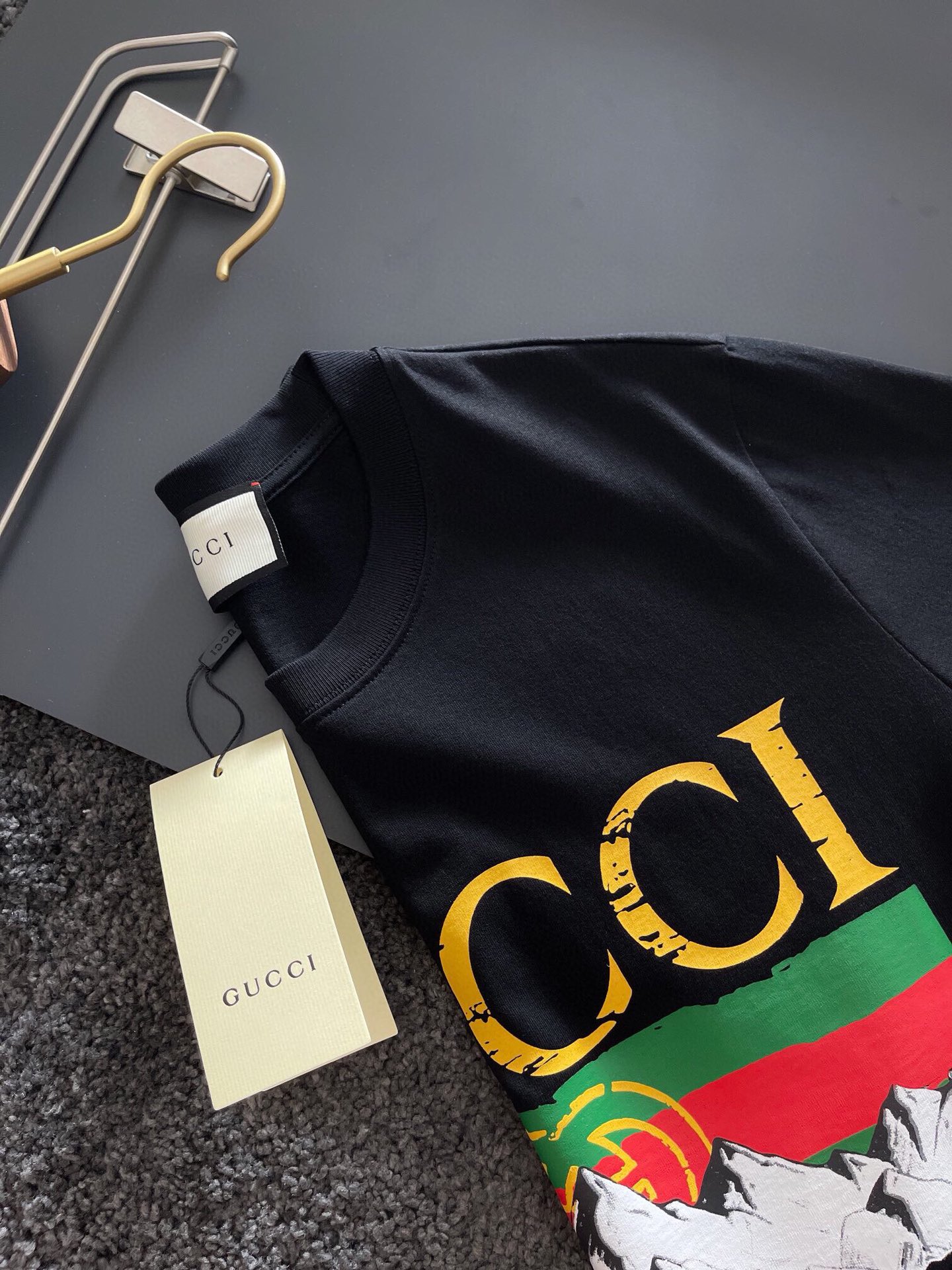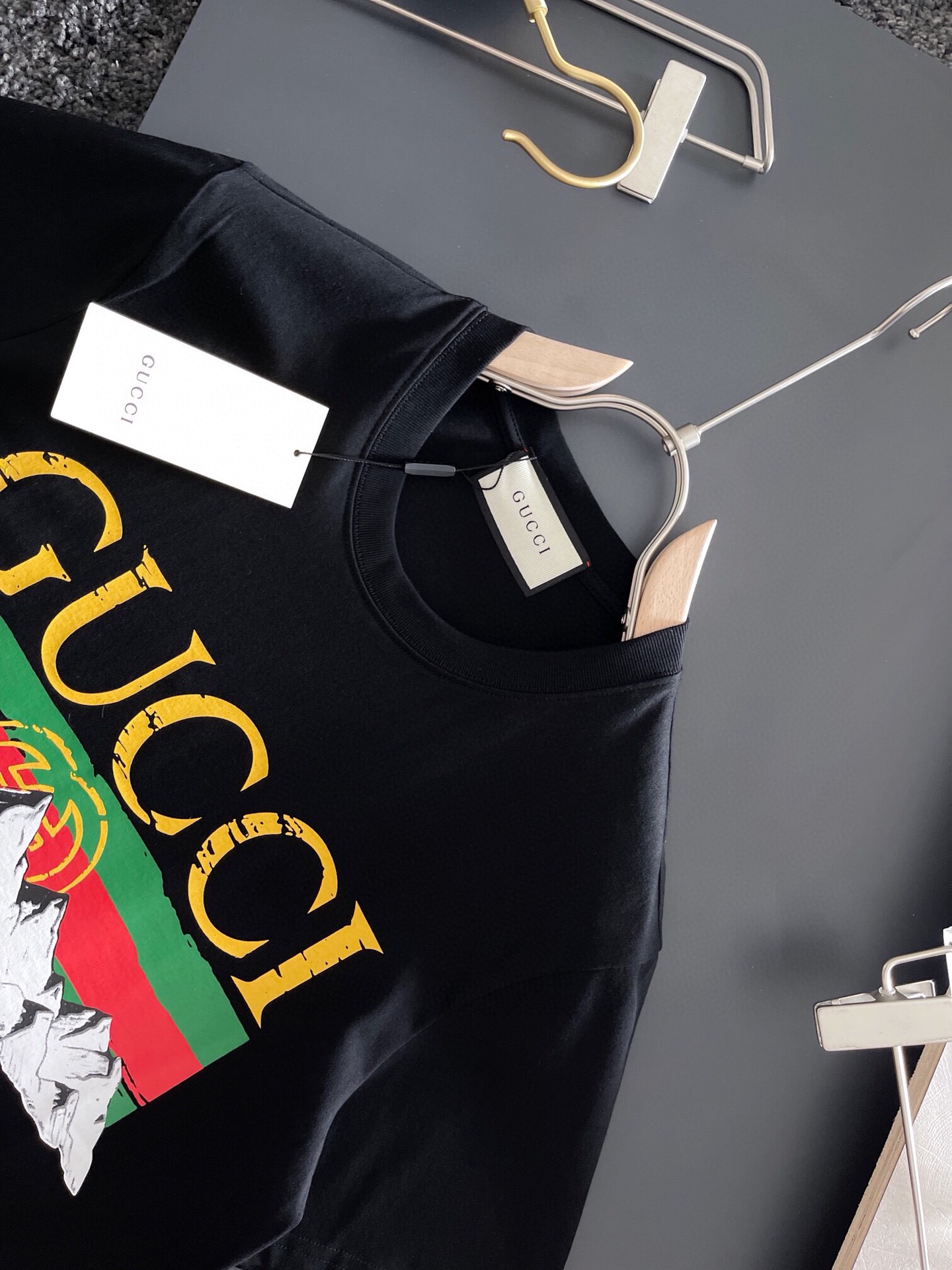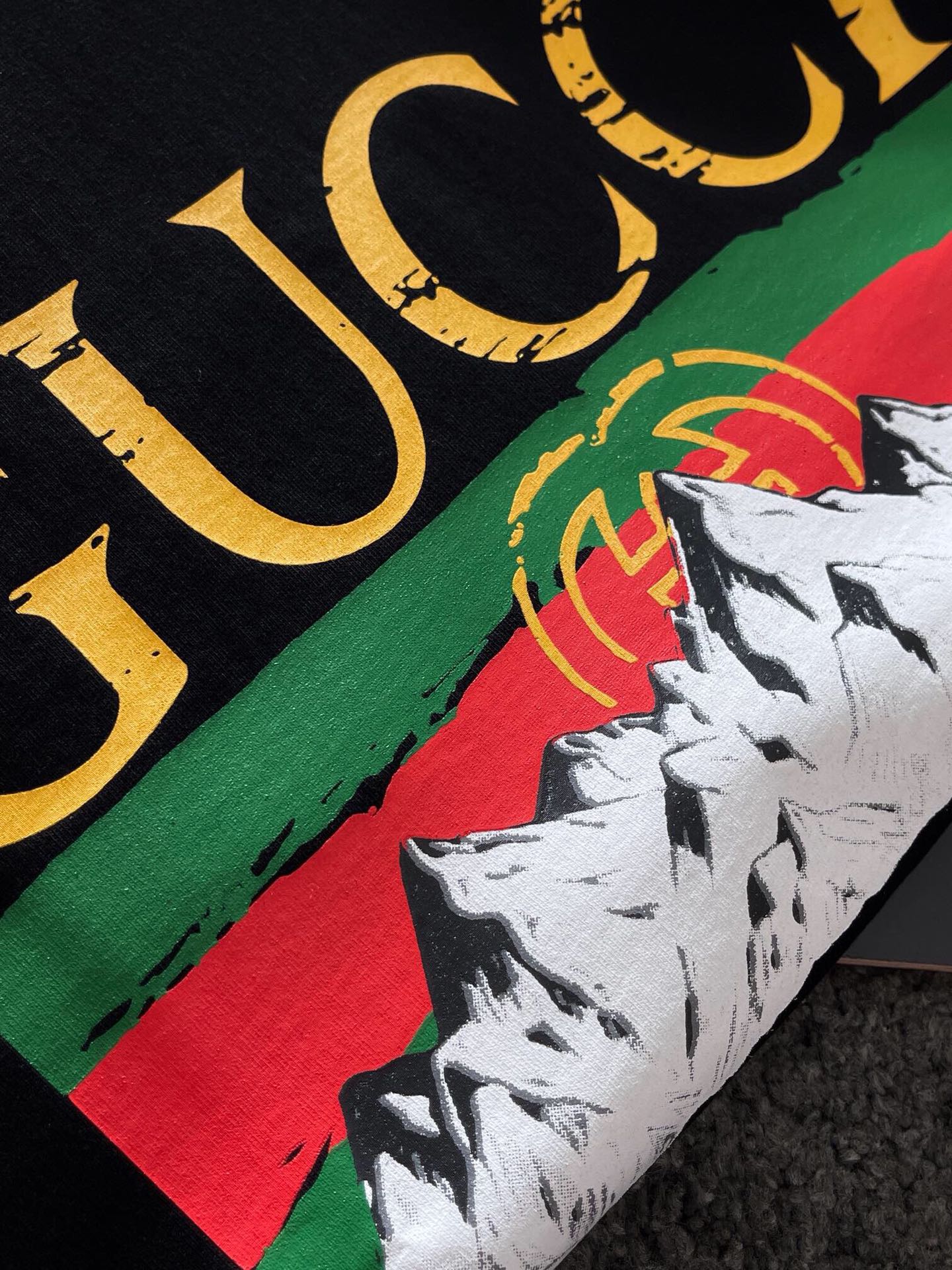 這款衣服是AAAAA 1:1 質量(非常棒). 使用了和原版一模一樣的材料. 商標部分也保持了和古奇/Gucci一樣. 圖片拍攝是實物衣服拍攝, 您所收到的實物保證和我們圖片一模一樣.