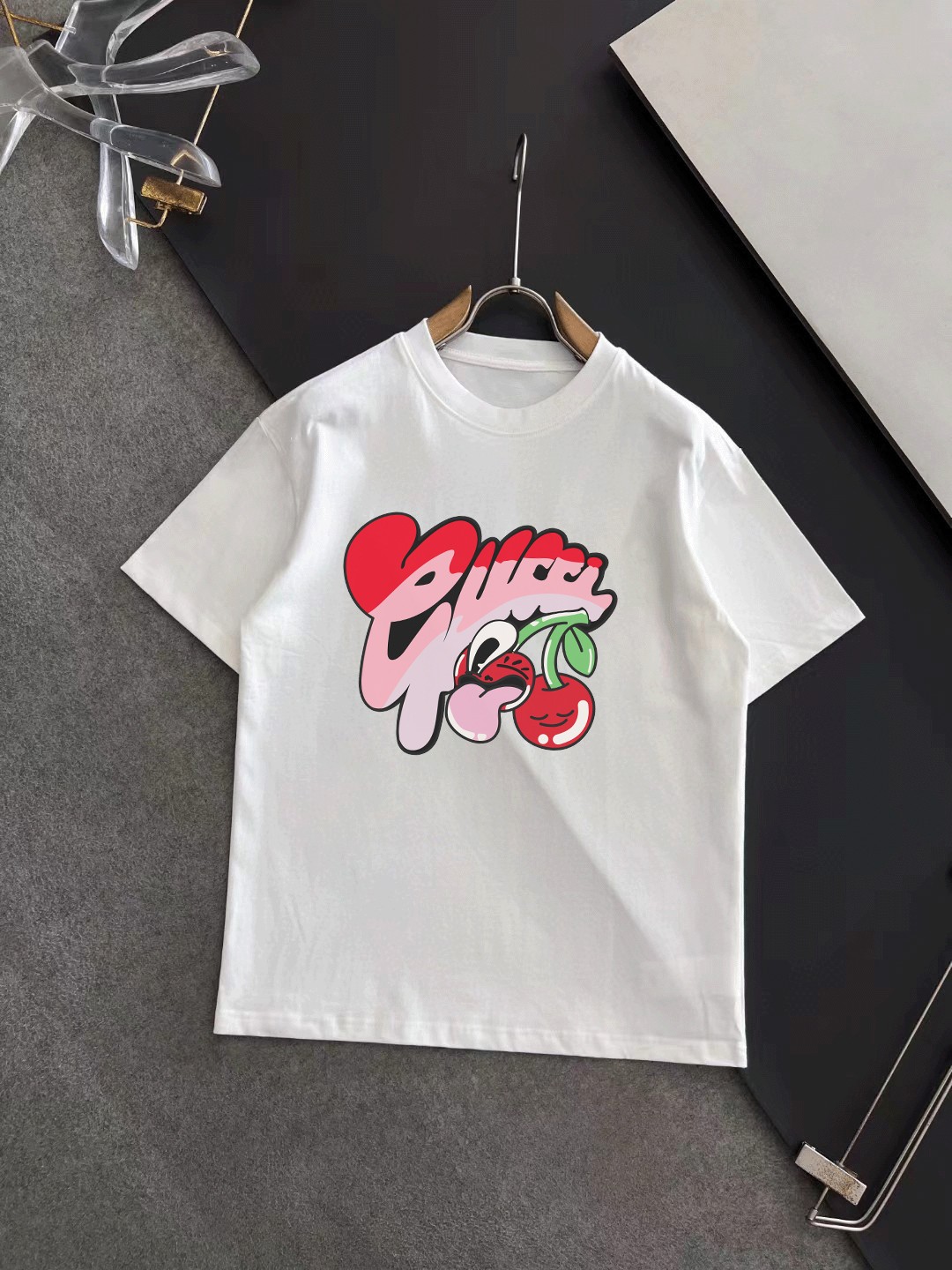 這款衣服是AAAAA 1:1 質量(非常棒). 使用了和原版一模一樣的材料. 商標部分也保持了和古奇/Gucci一樣. 圖片拍攝是實物衣服拍攝, 您所收到的實物保證和我們圖片一模一樣.
