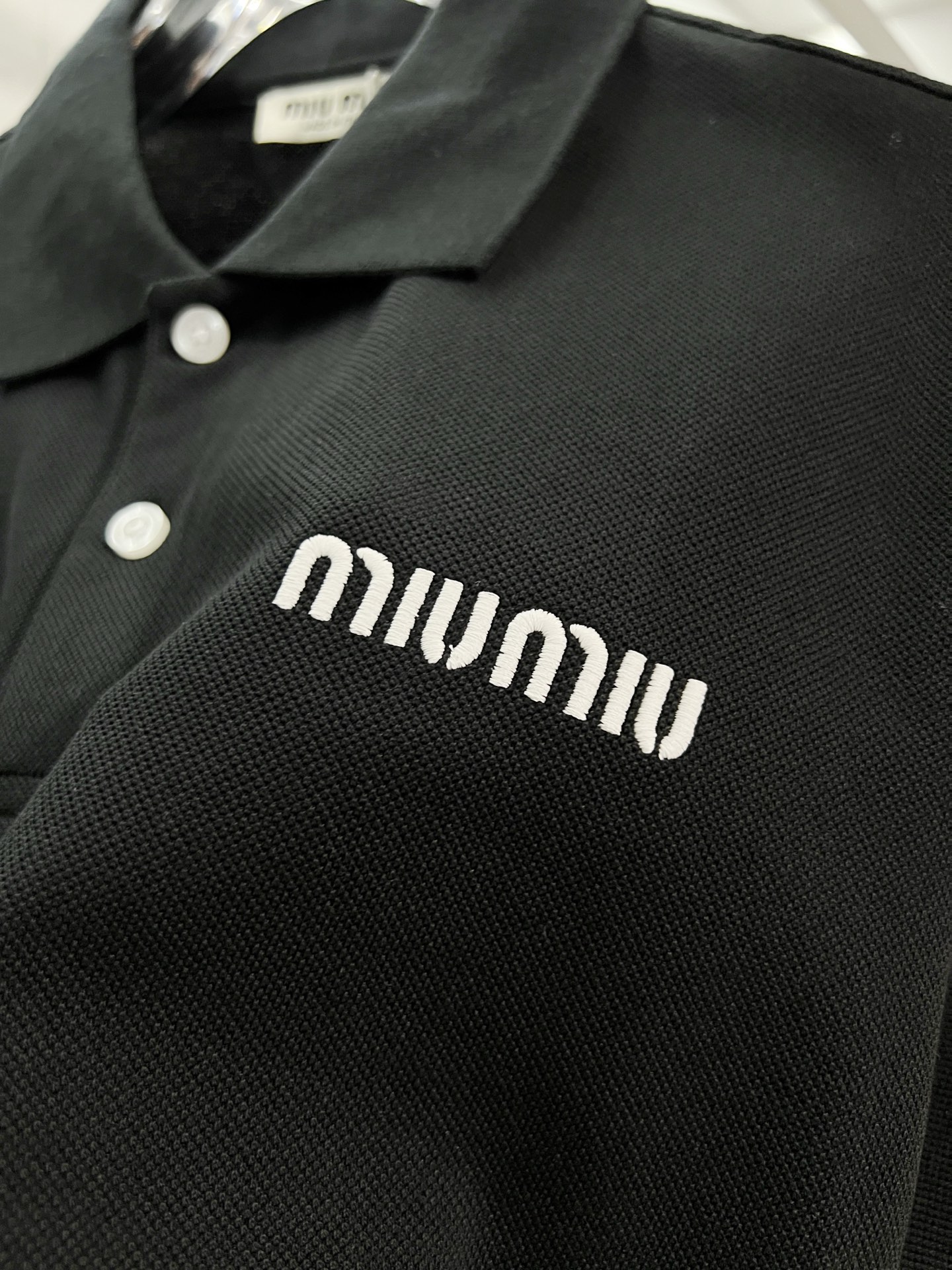 這款衣服是AAAAA 1:1 質量(非常棒). 使用了和原版一模一樣的材料. 商標部分也保持了和繆繆/Miu Miu一樣. 圖片拍攝是實物衣服拍攝, 您所收到的實物保證和我們圖片一模一樣.