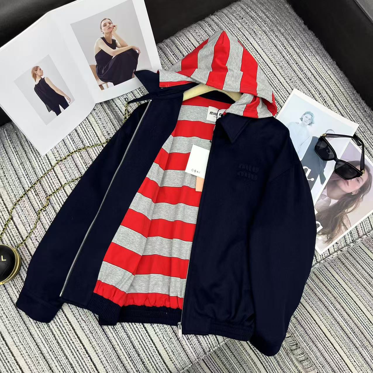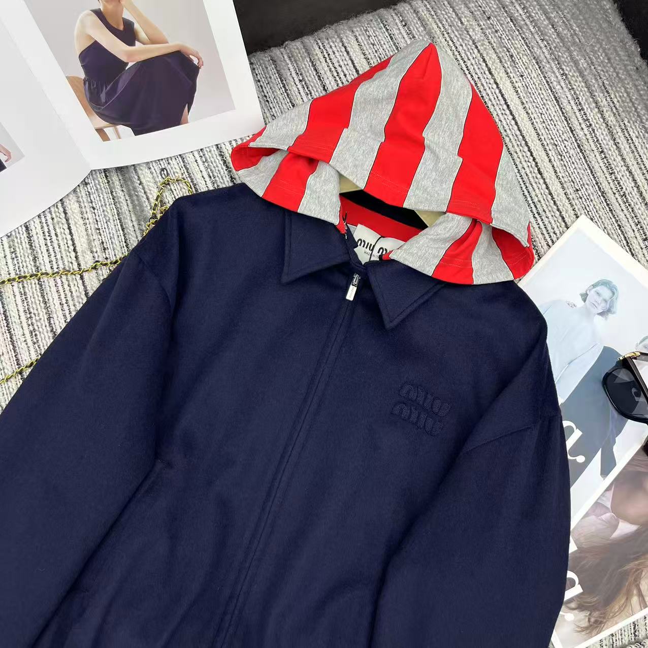 這款衣服是AAAAA 1:1 質量(非常棒). 使用了和原版一模一樣的材料. 商標部分也保持了和繆繆/Miu Miu一樣. 圖片拍攝是實物衣服拍攝, 您所收到的實物保證和我們圖片一模一樣.