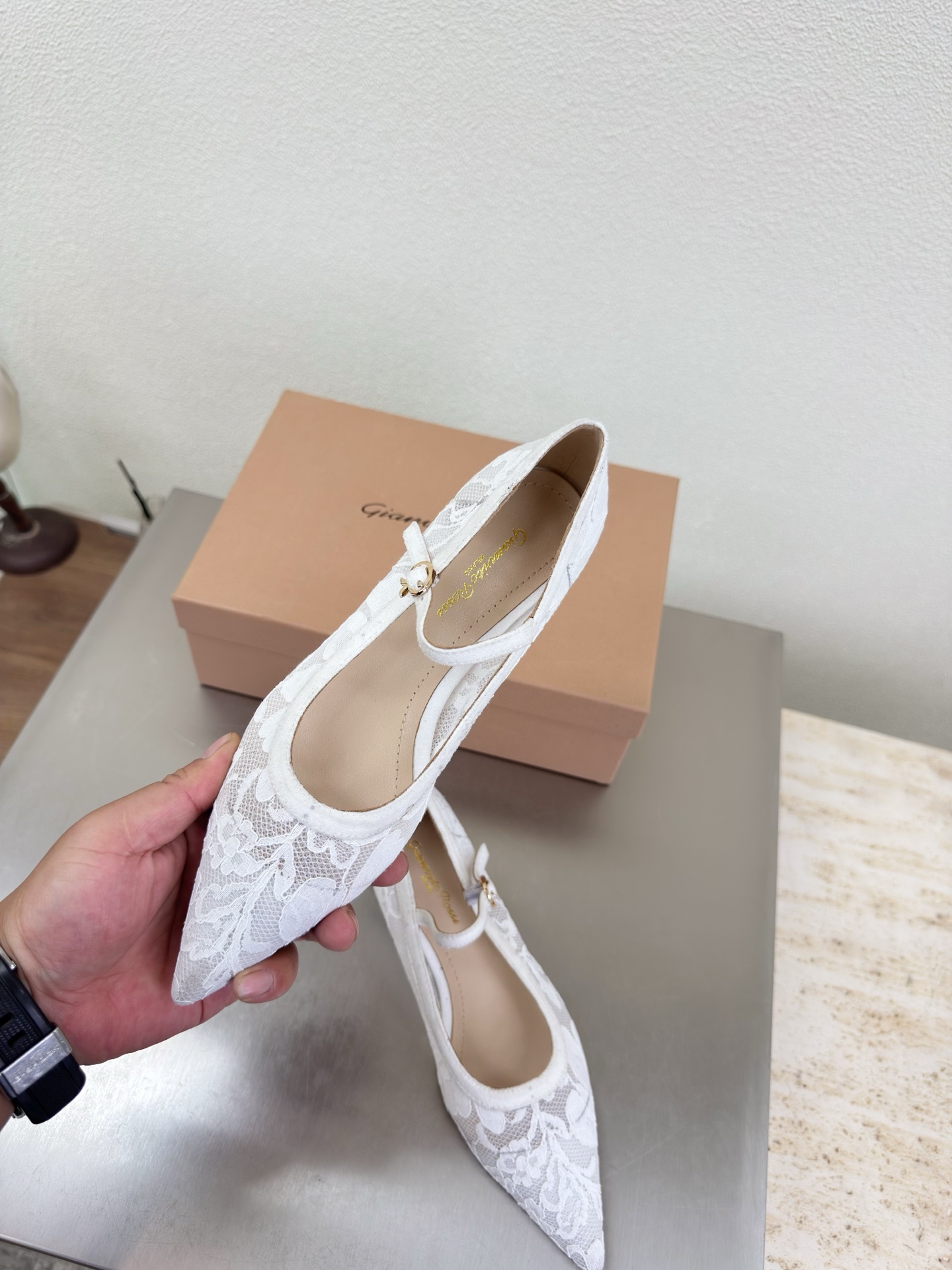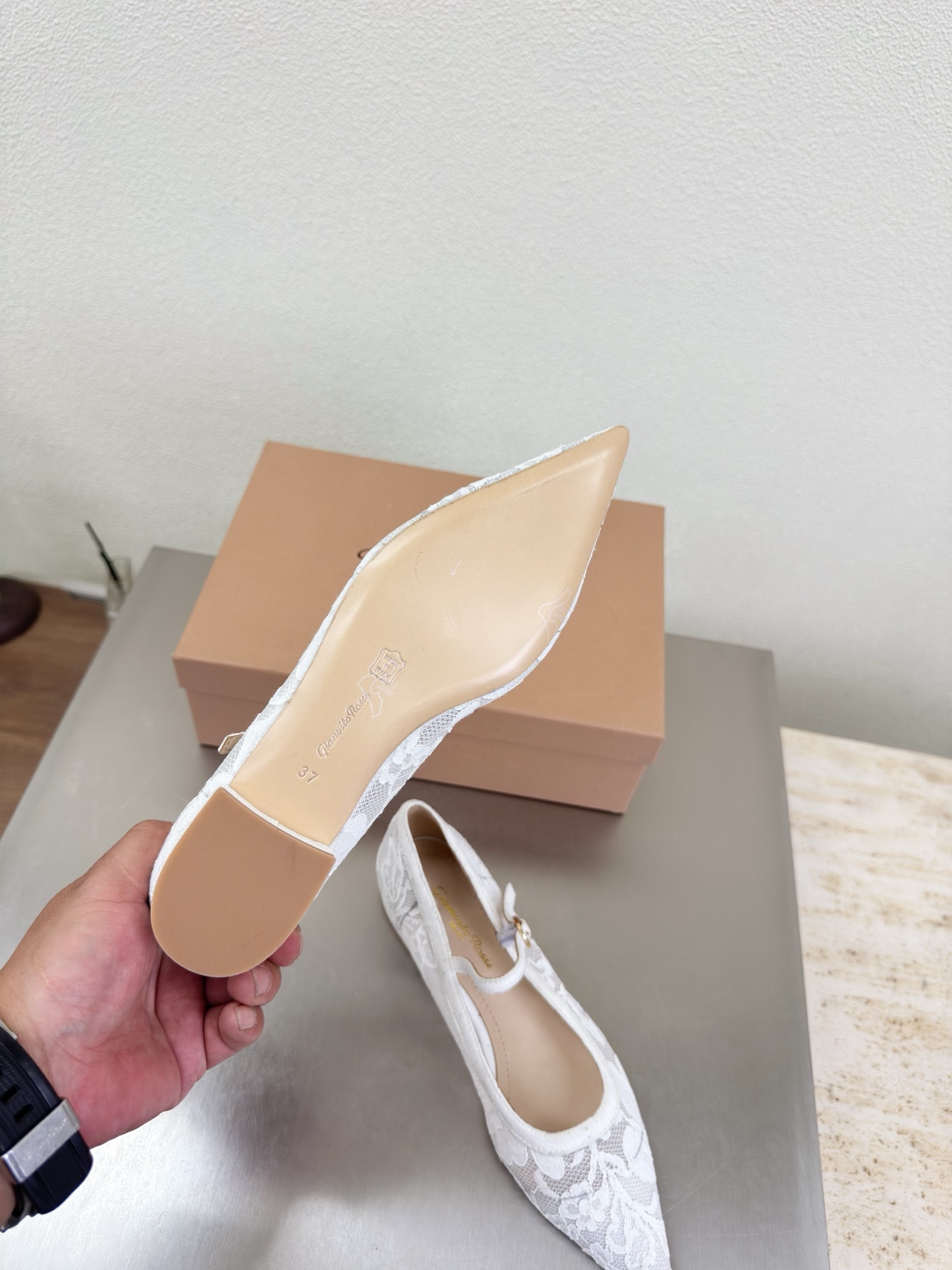 這款鞋子是AAAAA 1:1 質量(非常棒). 使用了和原版一模一樣的材料. 商標部分也保持了和Gianvito Rossi一樣. 圖片拍攝是實物鞋子拍攝, 您所收到的實物保證和我們圖片一模一樣.