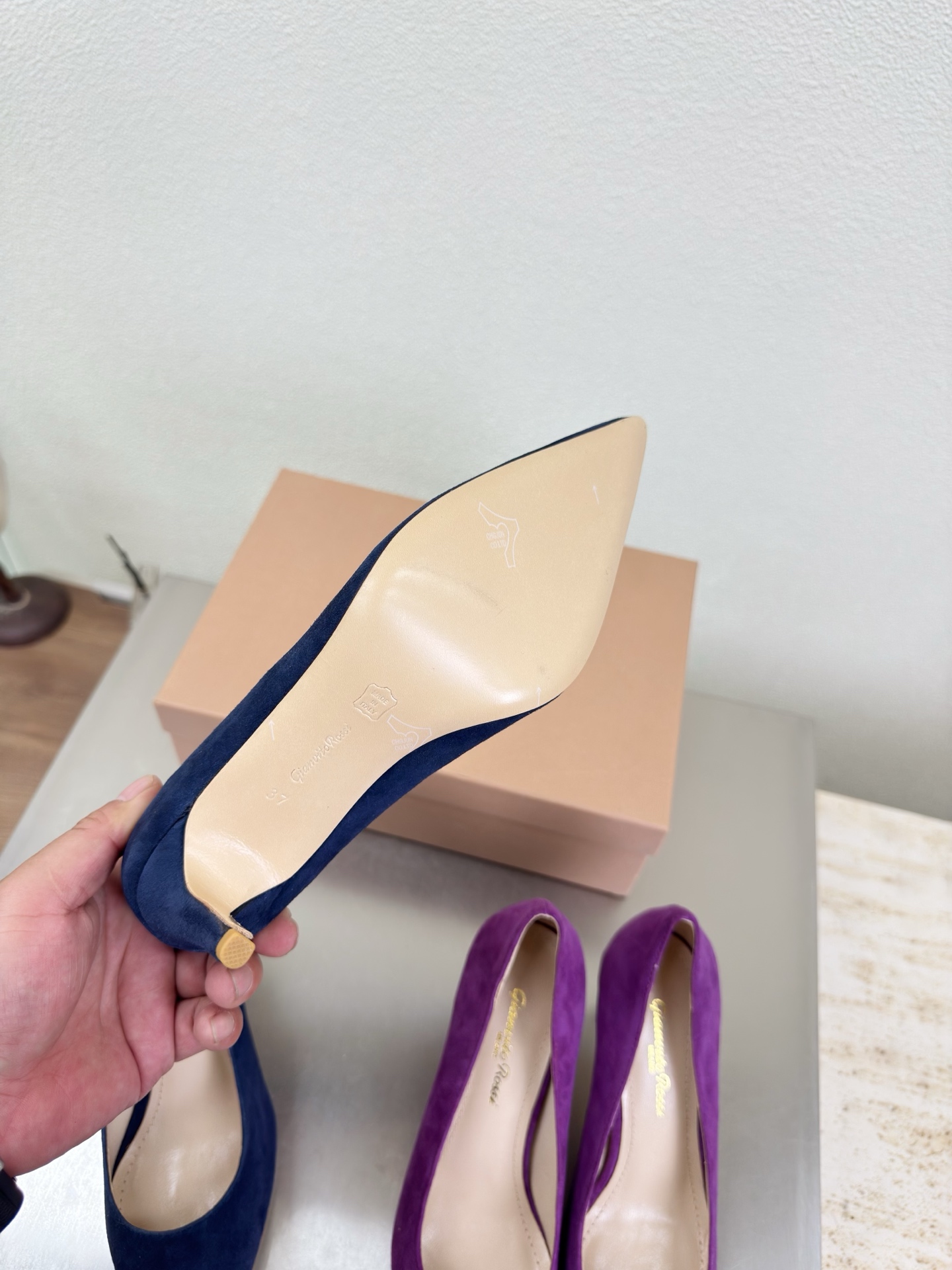 這款鞋子是AAAAA 1:1 質量(非常棒). 使用了和原版一模一樣的材料. 商標部分也保持了和Gianvito Rossi一樣. 圖片拍攝是實物鞋子拍攝, 您所收到的實物保證和我們圖片一模一樣.