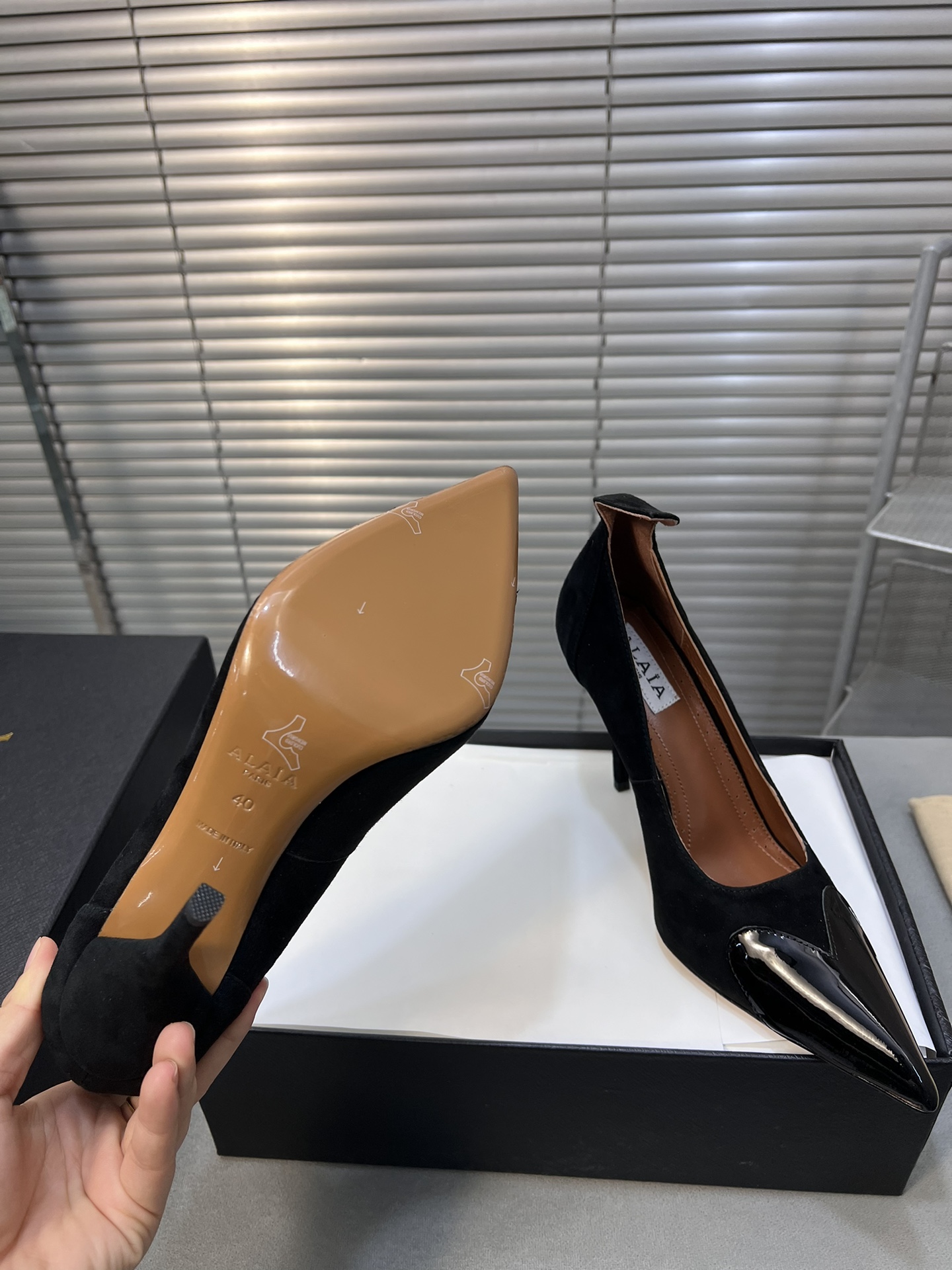 這款鞋子是AAAAA 1:1 質量(非常棒). 使用了和原版一模一樣的材料. 商標部分也保持了和Alaia一樣. 圖片拍攝是實物鞋子拍攝, 您所收到的實物保證和我們圖片一模一樣.