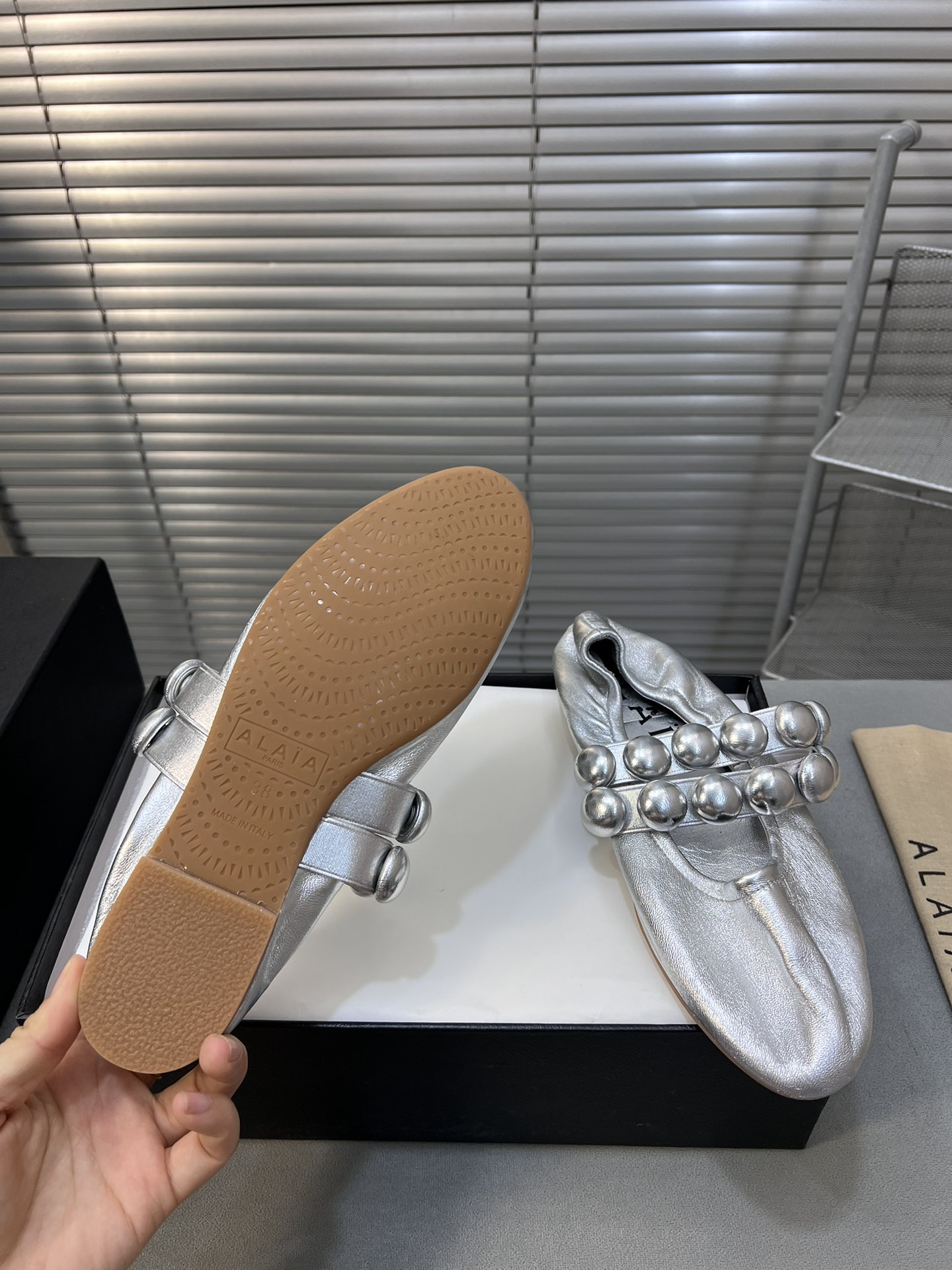 這款鞋子是AAAAA 1:1 質量(非常棒). 使用了和原版一模一樣的材料. 商標部分也保持了和Alaia一樣. 圖片拍攝是實物鞋子拍攝, 您所收到的實物保證和我們圖片一模一樣.