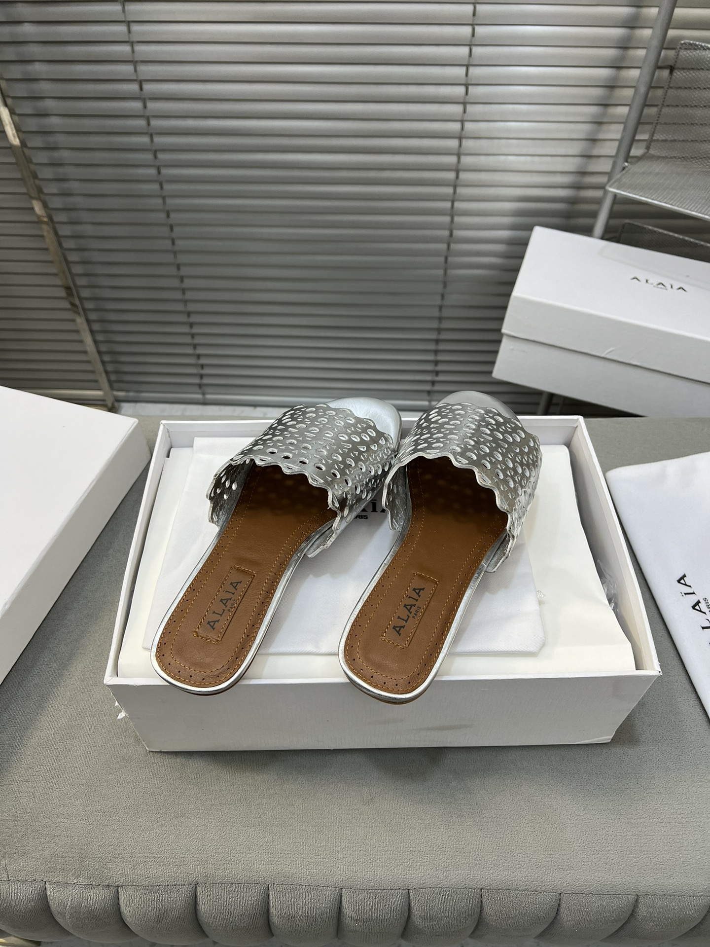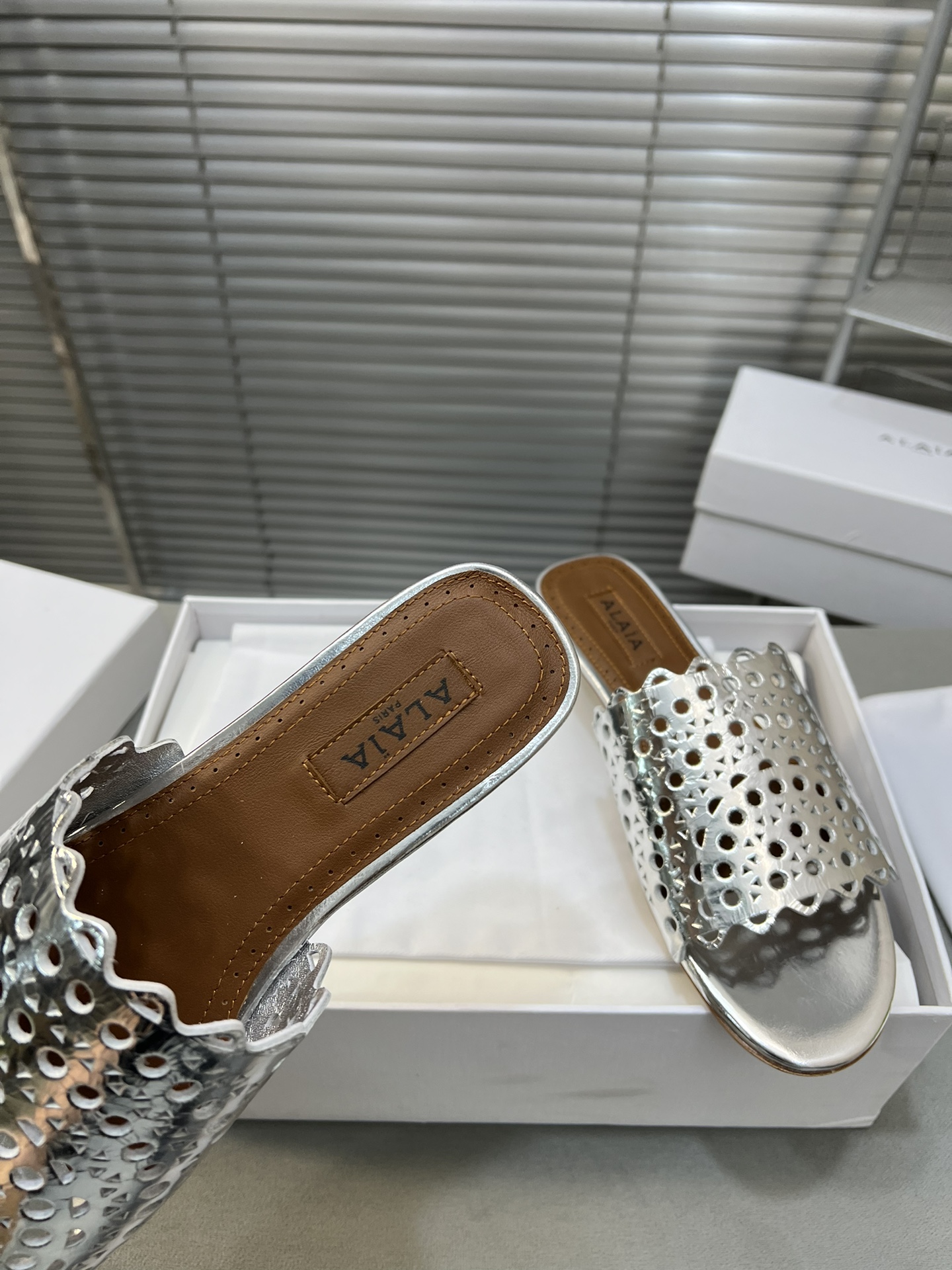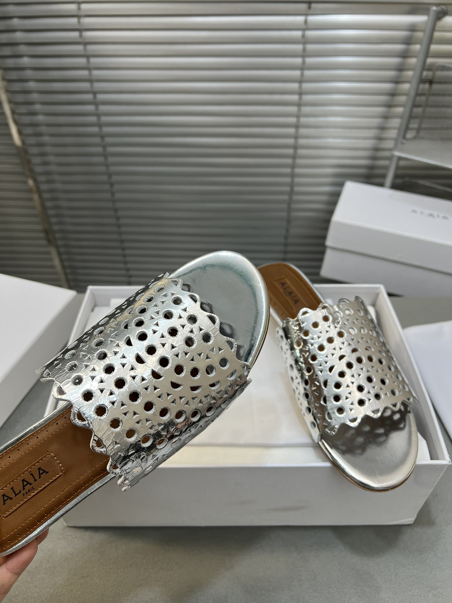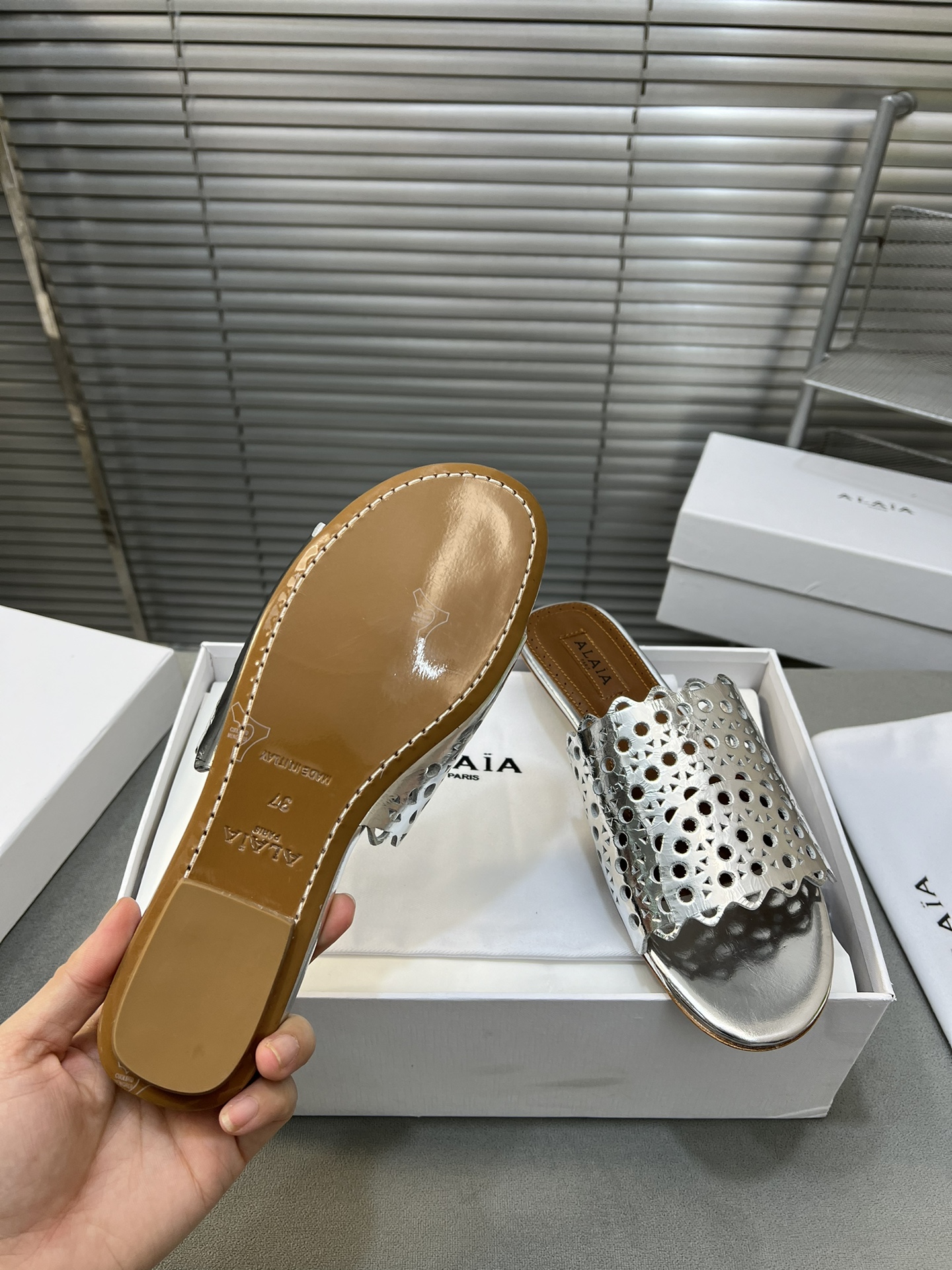這款鞋子是AAAAA 1:1 質量(非常棒). 使用了和原版一模一樣的材料. 商標部分也保持了和Alaia一樣. 圖片拍攝是實物鞋子拍攝, 您所收到的實物保證和我們圖片一模一樣.