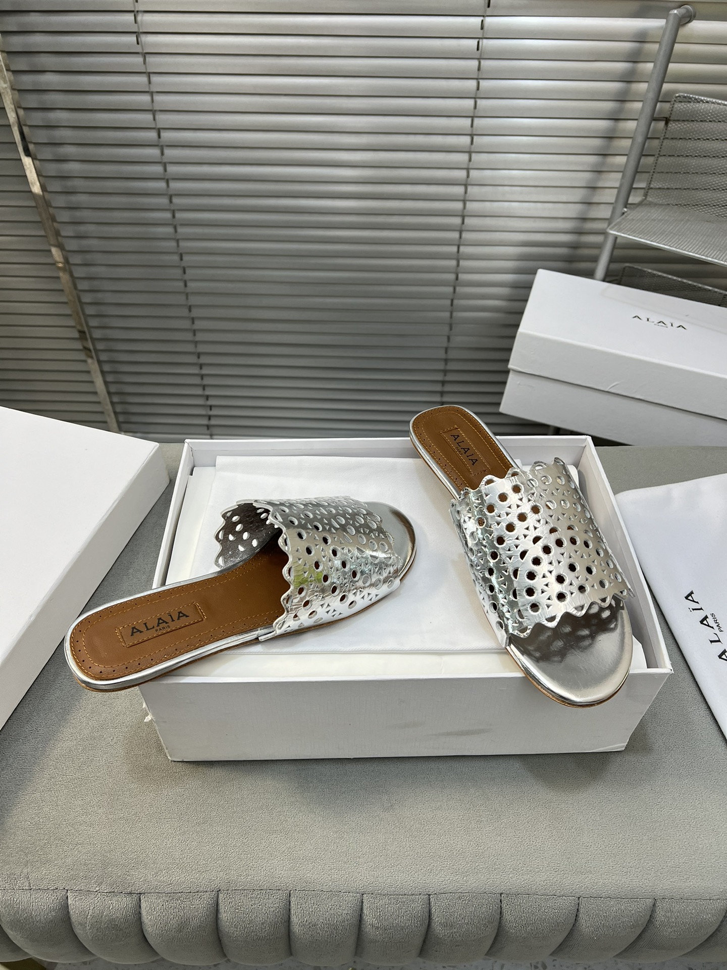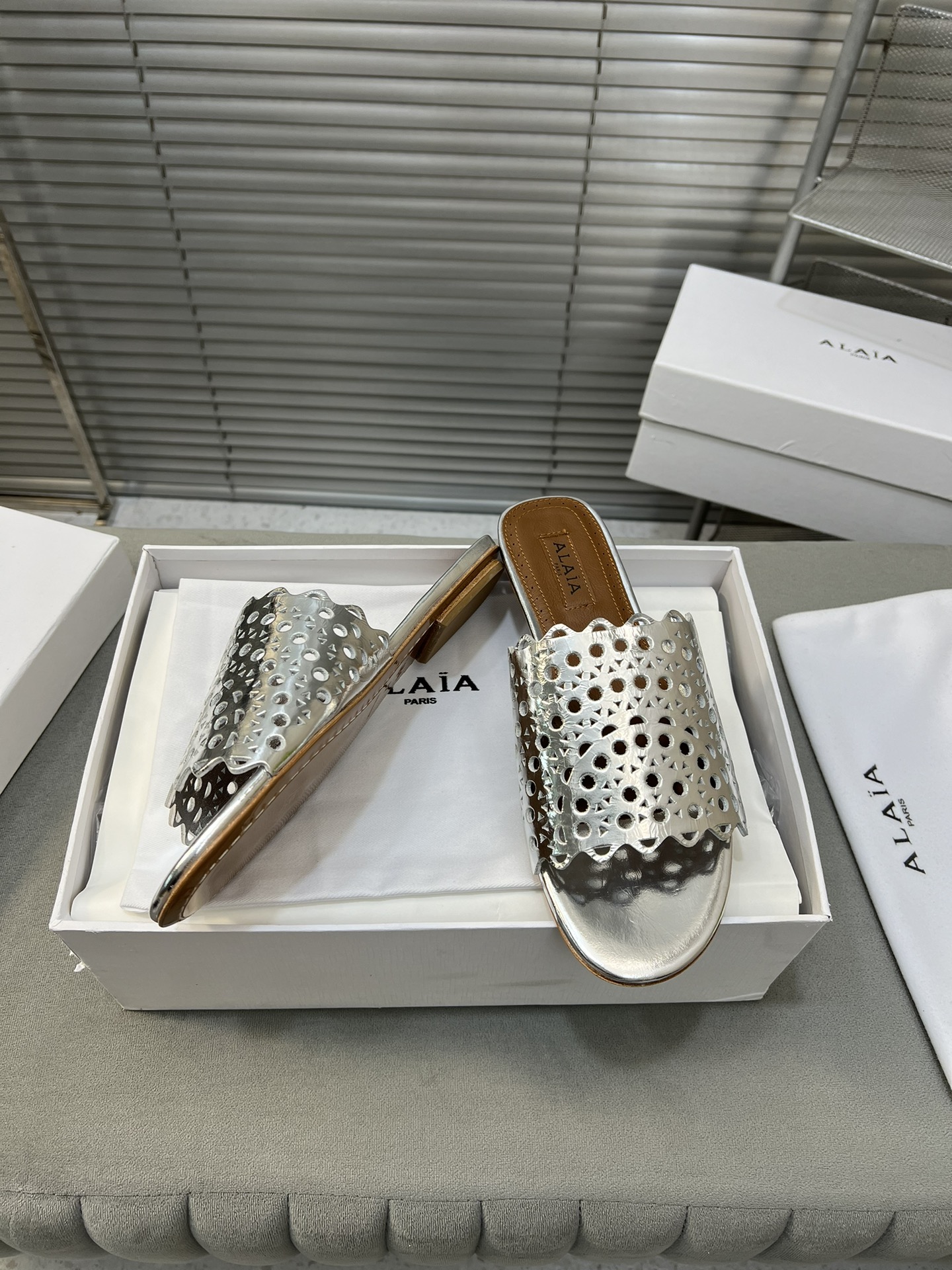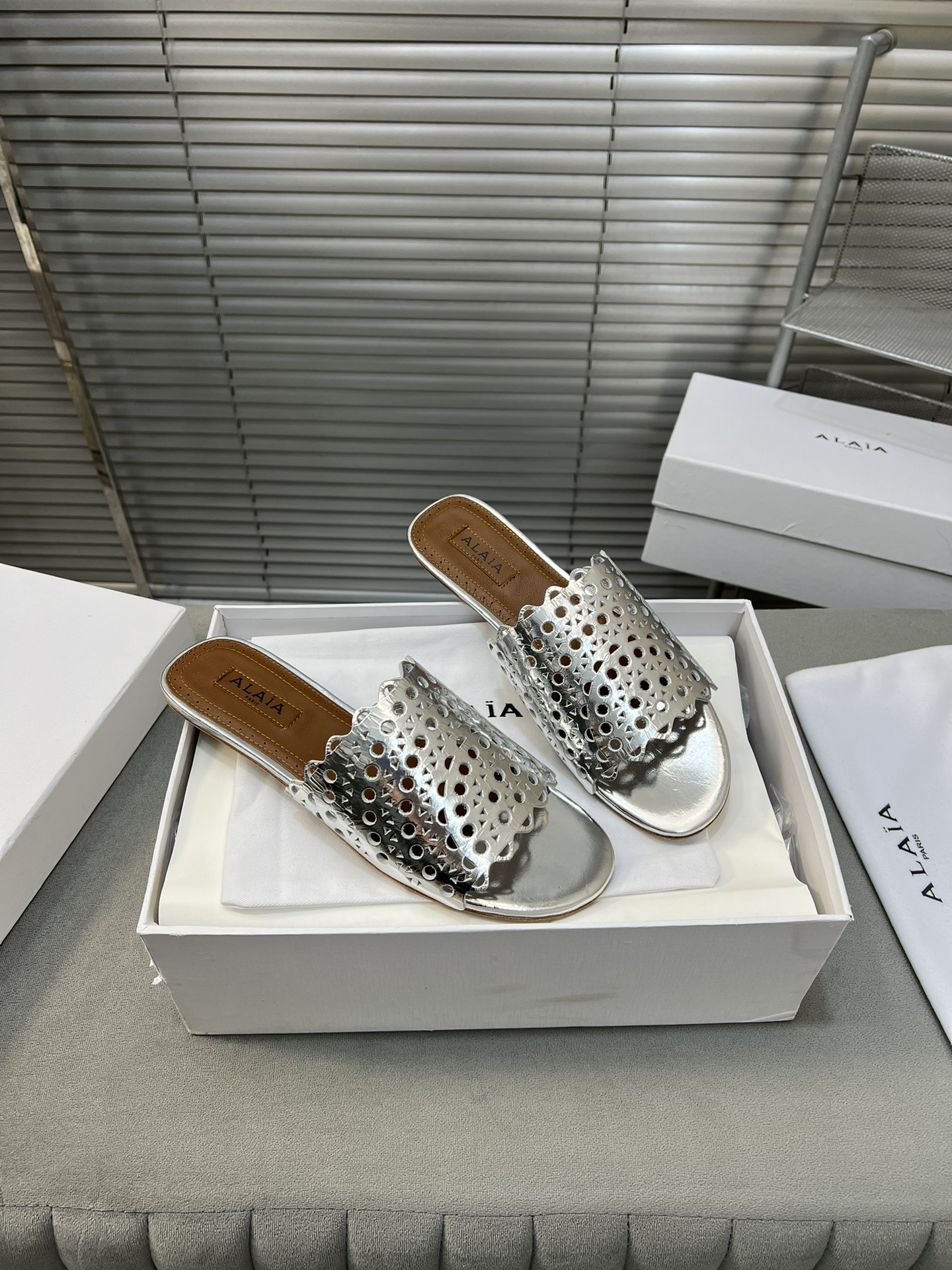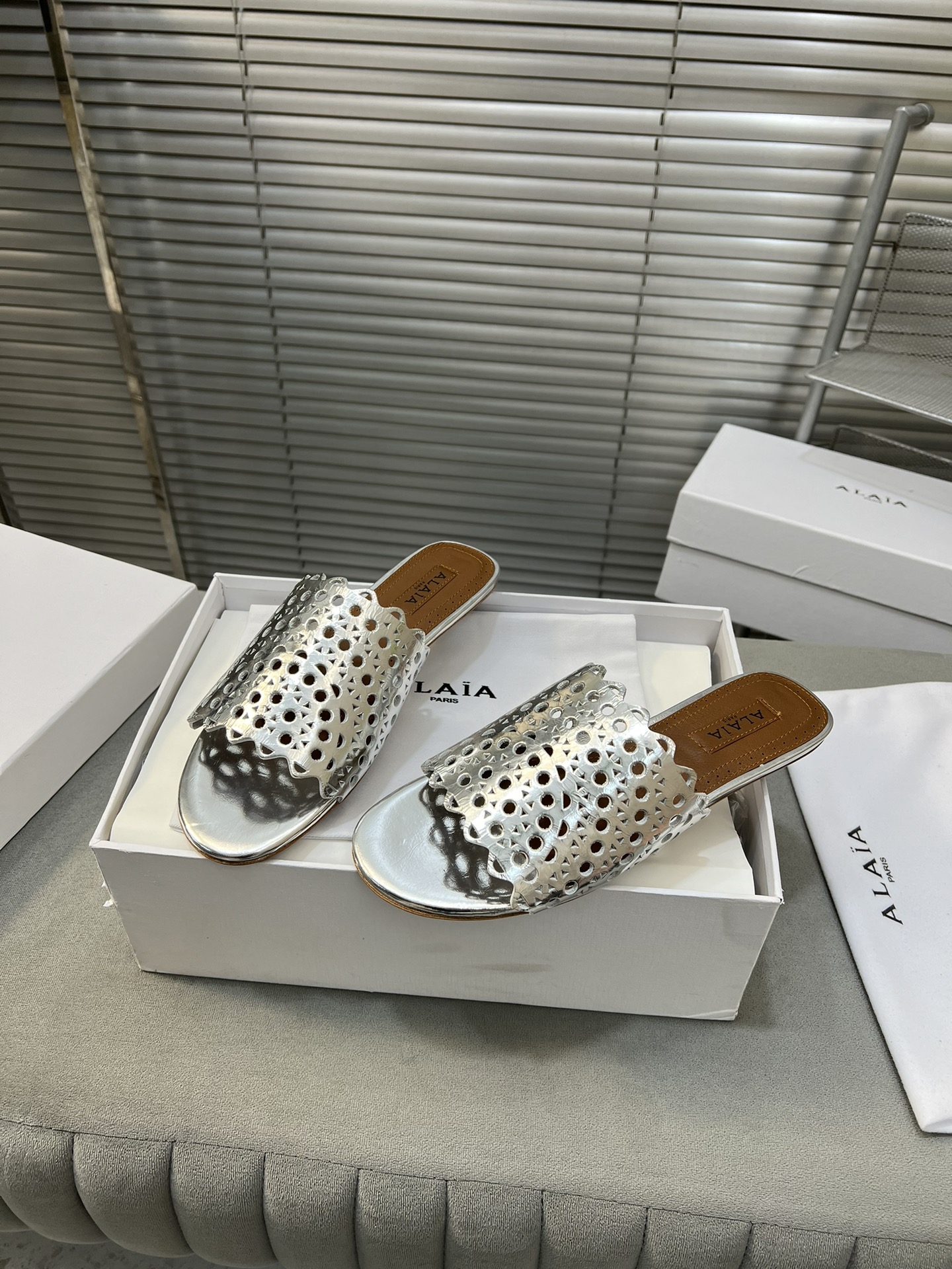 這款鞋子是AAAAA 1:1 質量(非常棒). 使用了和原版一模一樣的材料. 商標部分也保持了和Alaia一樣. 圖片拍攝是實物鞋子拍攝, 您所收到的實物保證和我們圖片一模一樣.