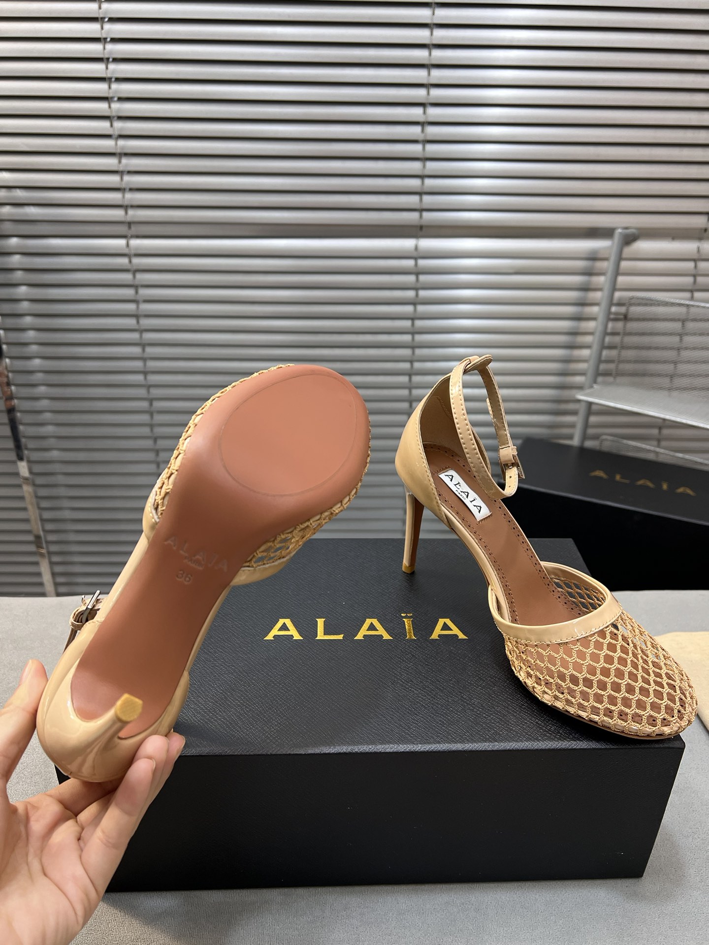 這款鞋子是AAAAA 1:1 質量(非常棒). 使用了和原版一模一樣的材料. 商標部分也保持了和Alaia一樣. 圖片拍攝是實物鞋子拍攝, 您所收到的實物保證和我們圖片一模一樣.