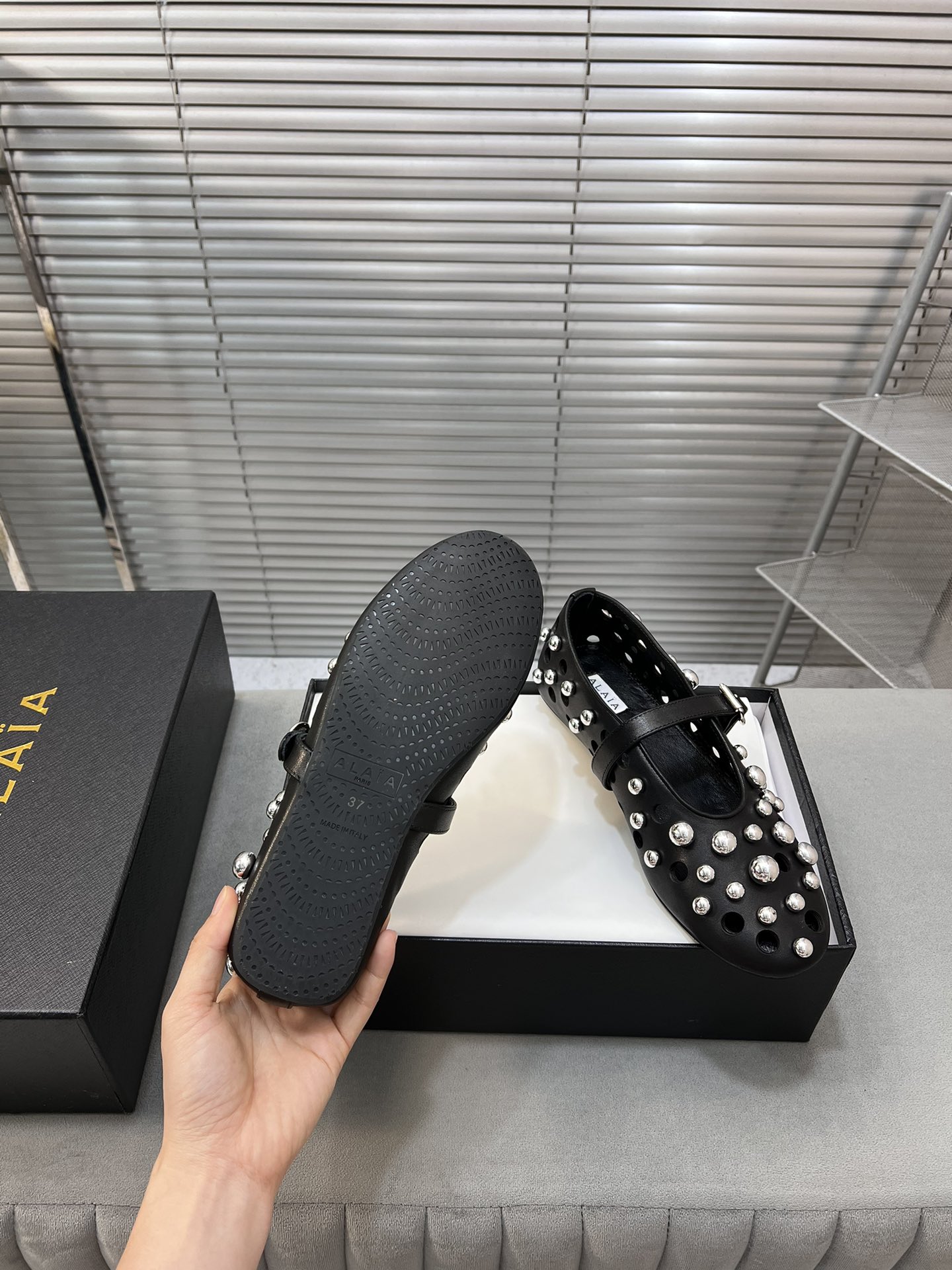 這款鞋子是AAAAA 1:1 質量(非常棒). 使用了和原版一模一樣的材料. 商標部分也保持了和Alaia一樣. 圖片拍攝是實物鞋子拍攝, 您所收到的實物保證和我們圖片一模一樣.