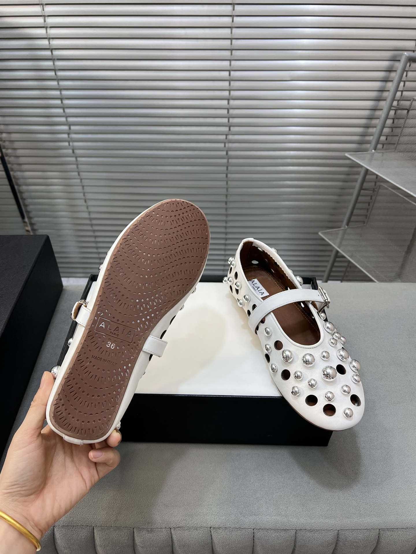 這款鞋子是AAAAA 1:1 質量(非常棒). 使用了和原版一模一樣的材料. 商標部分也保持了和Alaia一樣. 圖片拍攝是實物鞋子拍攝, 您所收到的實物保證和我們圖片一模一樣.