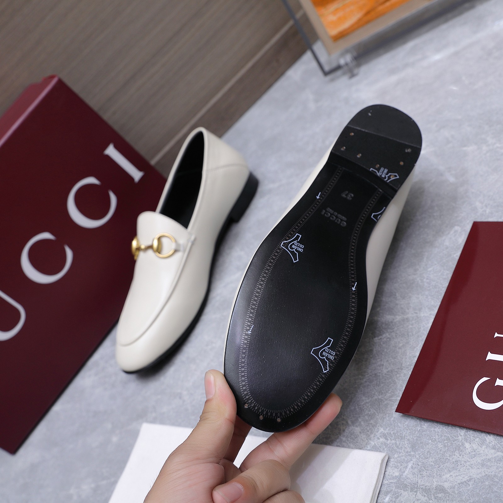 這款鞋子是AAAAA 1:1 質量(非常棒). 使用了和原版一模一樣的材料. 商標部分也保持了和古奇/Gucci一樣. 圖片拍攝是實物鞋子拍攝, 您所收到的實物保證和我們圖片一模一樣.