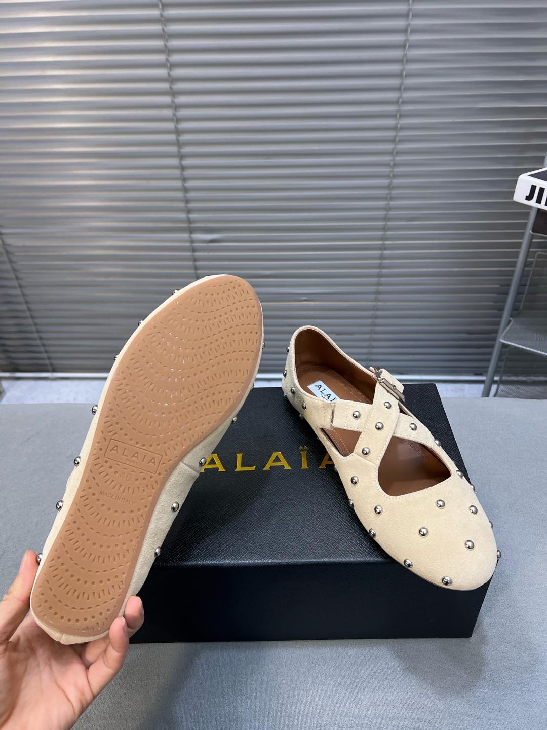 這款鞋子是AAAAA 1:1 質量(非常棒). 使用了和原版一模一樣的材料. 商標部分也保持了和Alaia一樣. 圖片拍攝是實物鞋子拍攝, 您所收到的實物保證和我們圖片一模一樣.