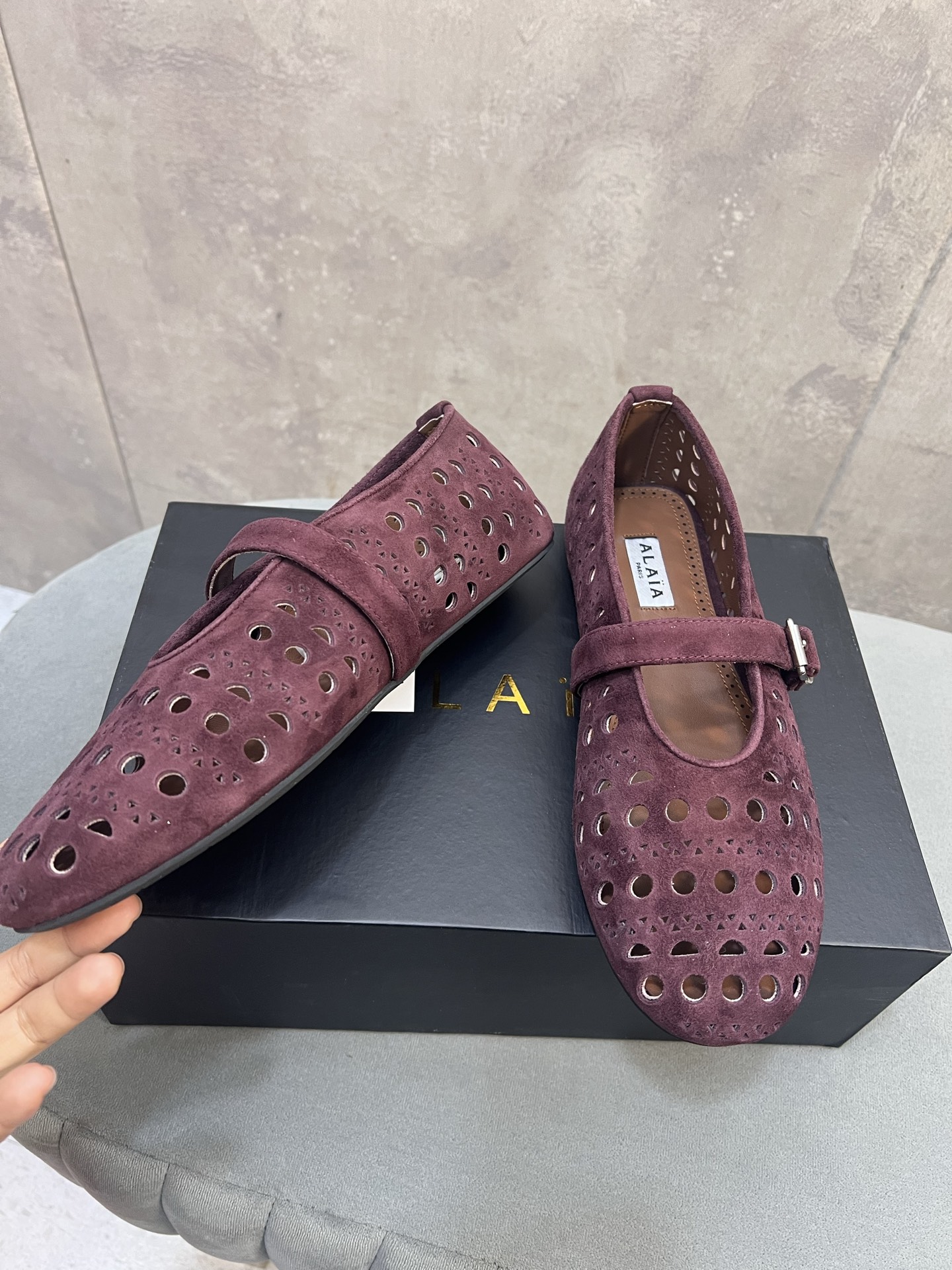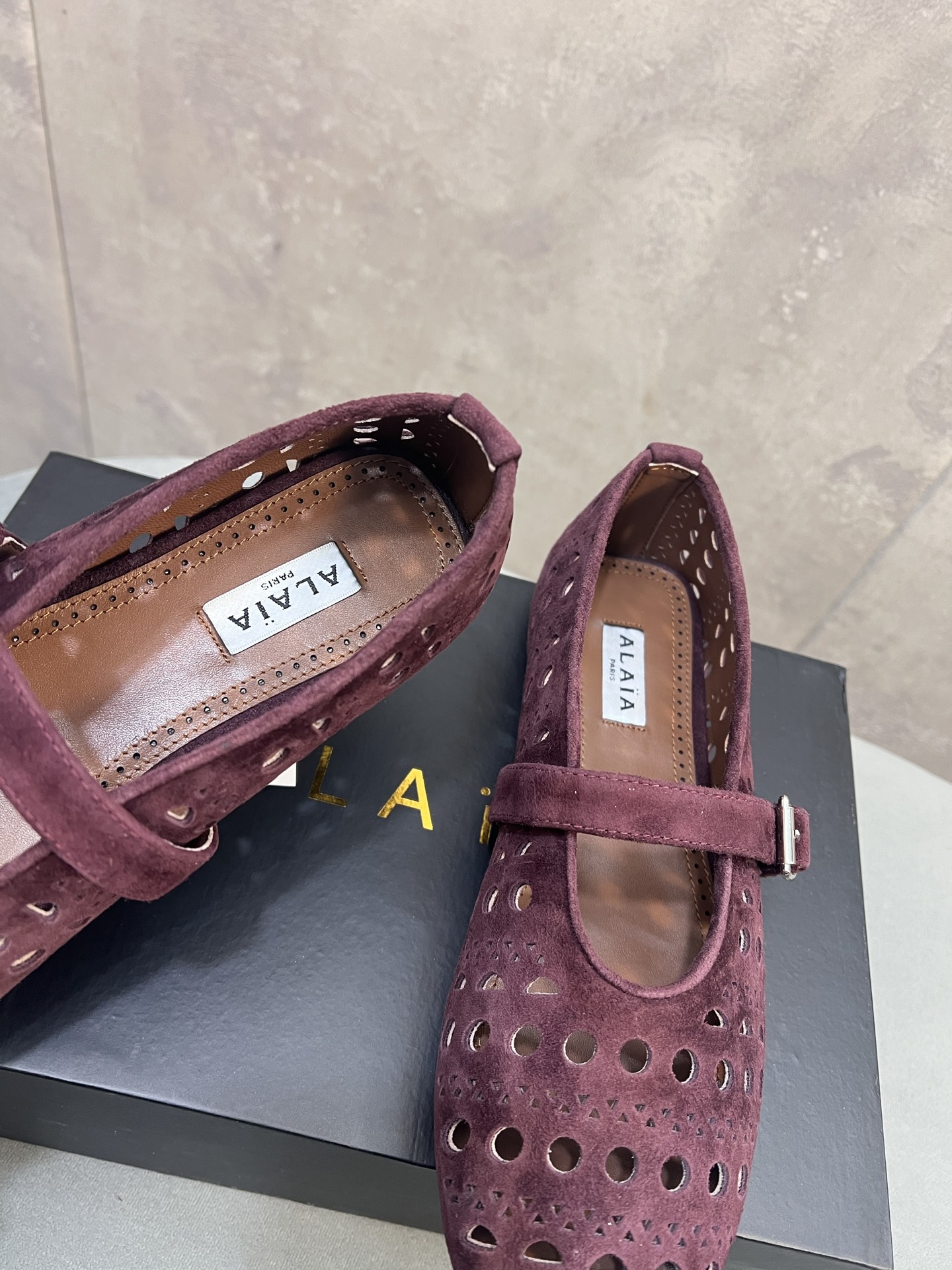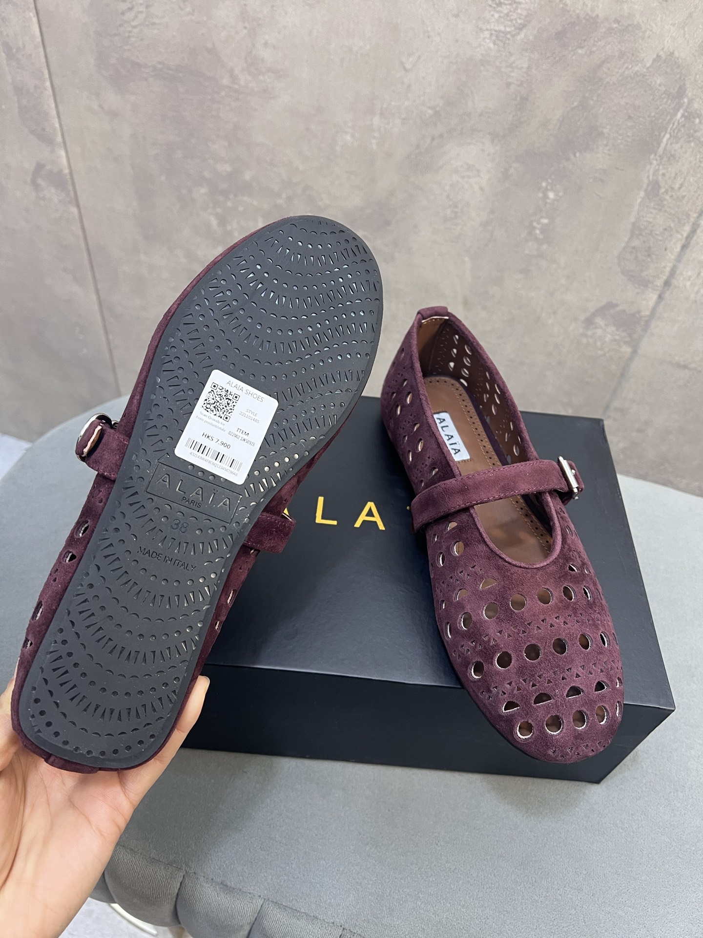 這款鞋子是AAAAA 1:1 質量(非常棒). 使用了和原版一模一樣的材料. 商標部分也保持了和Alaia一樣. 圖片拍攝是實物鞋子拍攝, 您所收到的實物保證和我們圖片一模一樣.