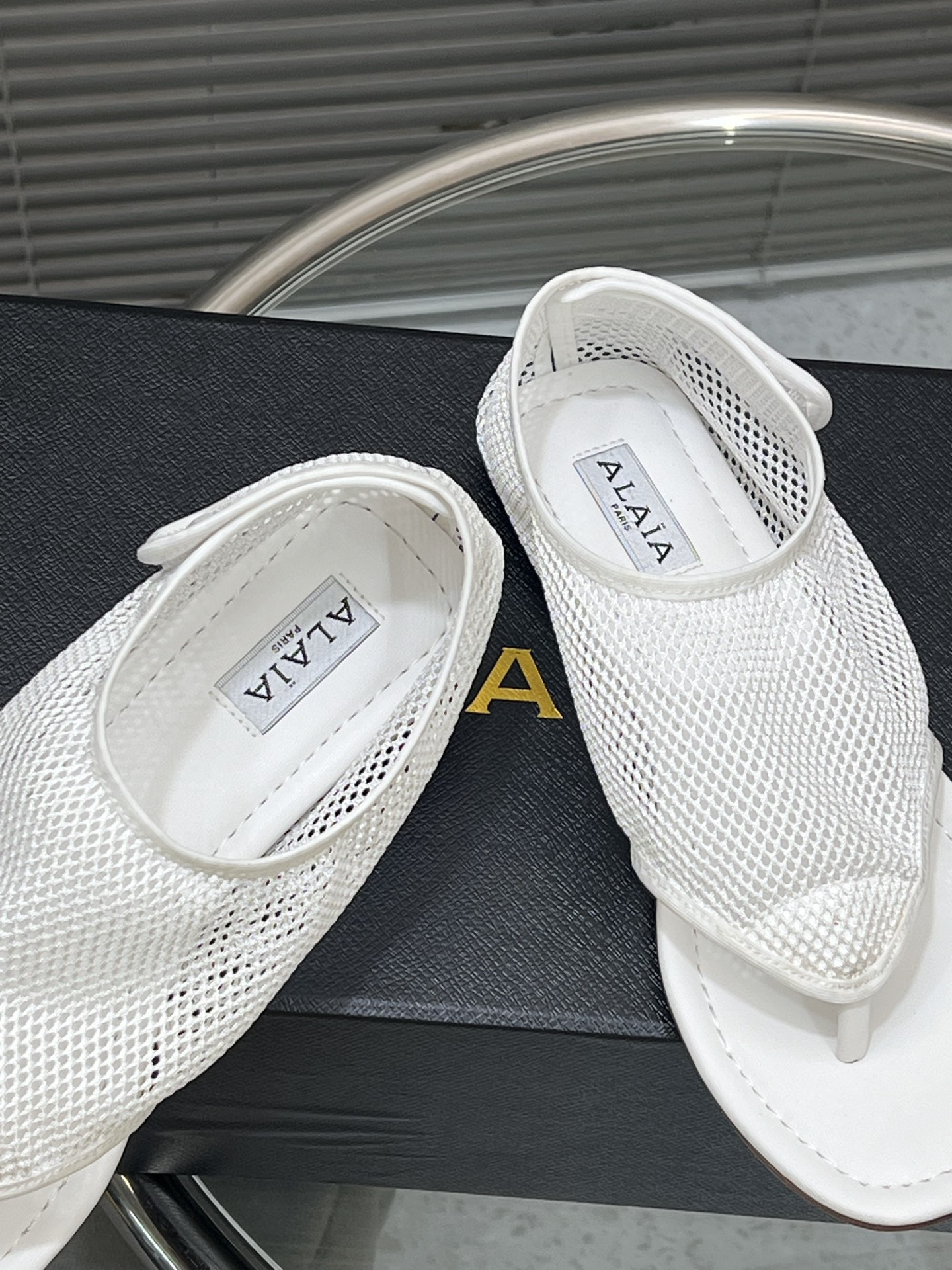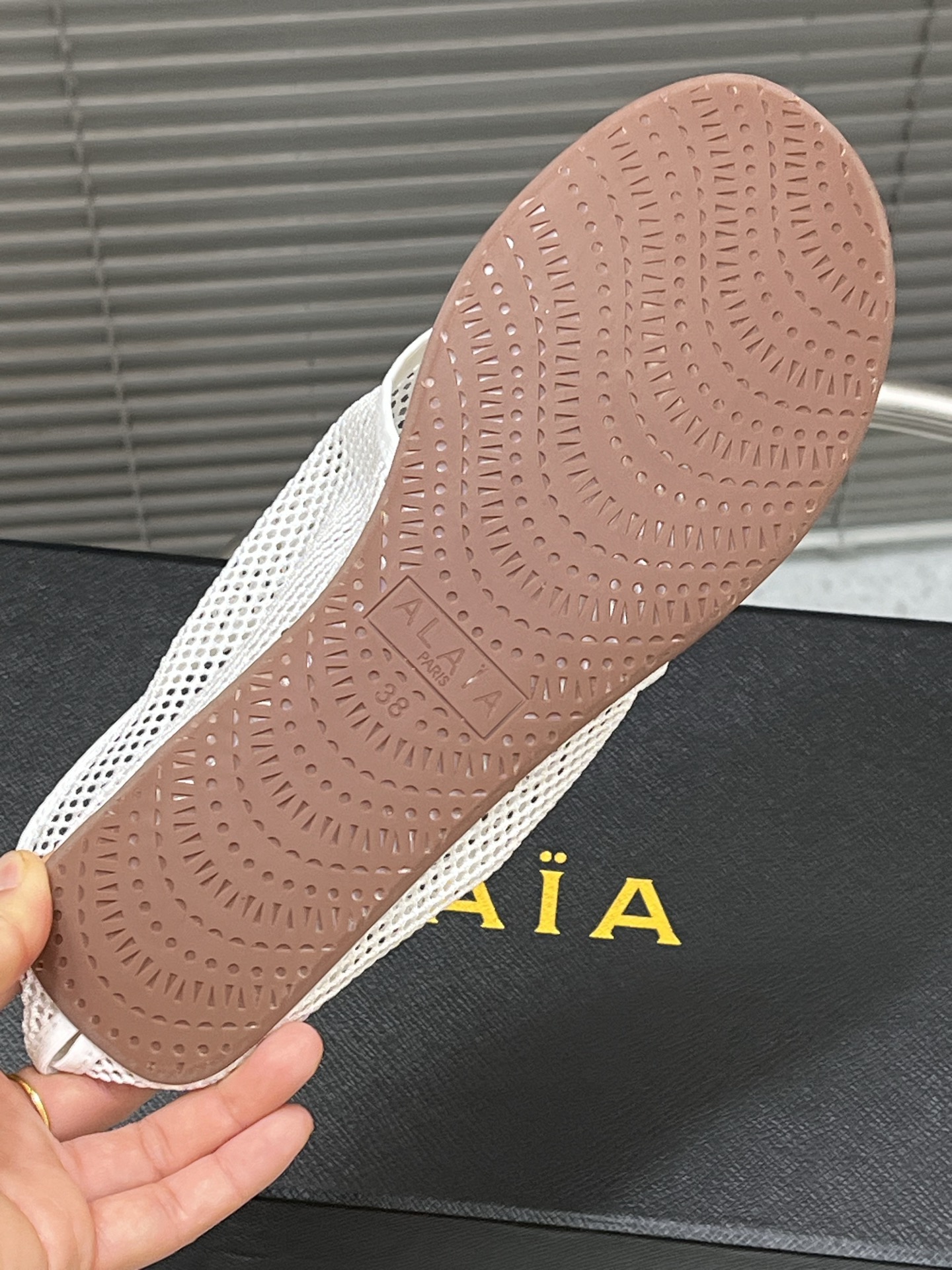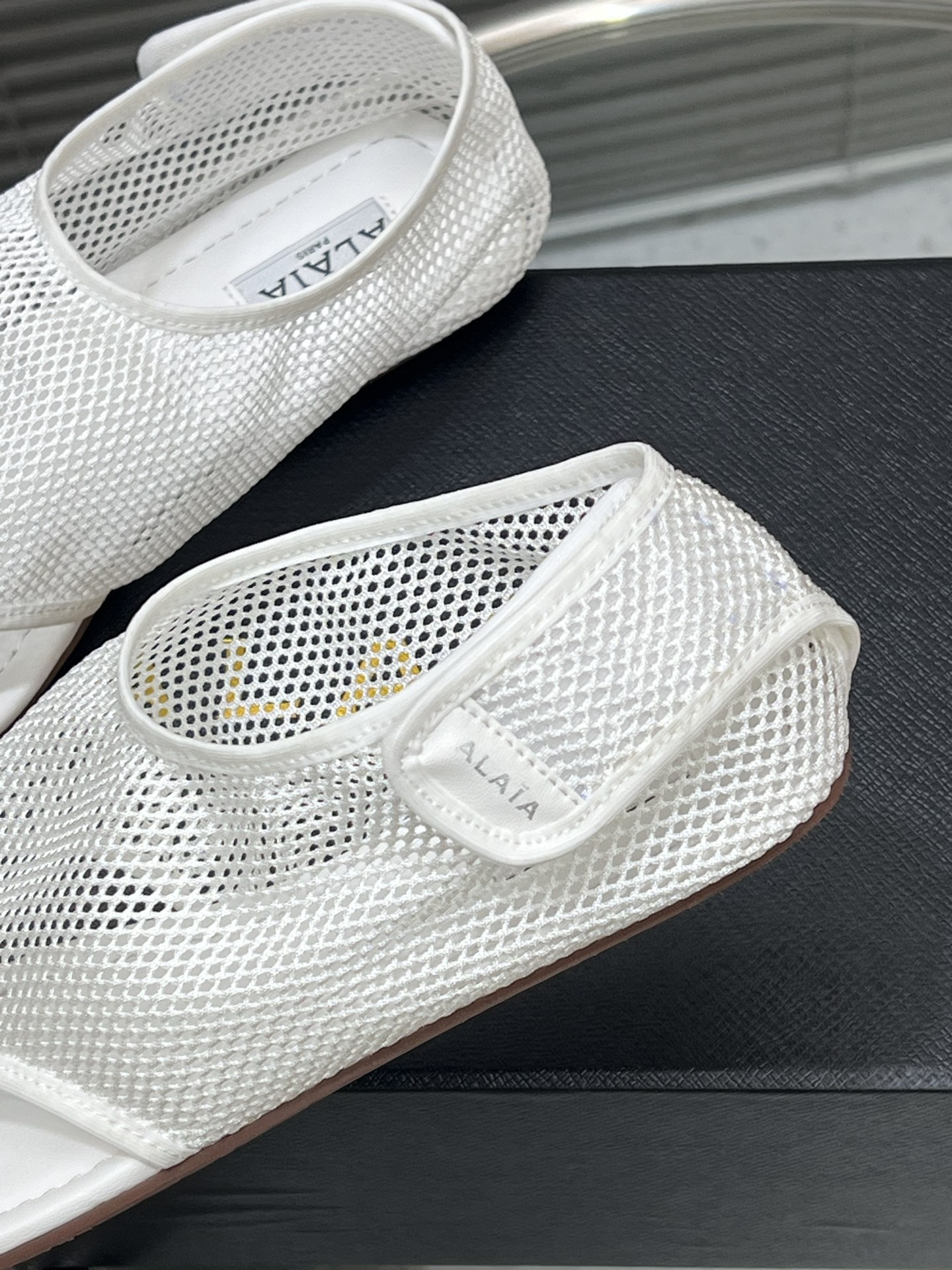 這款鞋子是AAAAA 1:1 質量(非常棒). 使用了和原版一模一樣的材料. 商標部分也保持了和Alaia一樣. 圖片拍攝是實物鞋子拍攝, 您所收到的實物保證和我們圖片一模一樣.