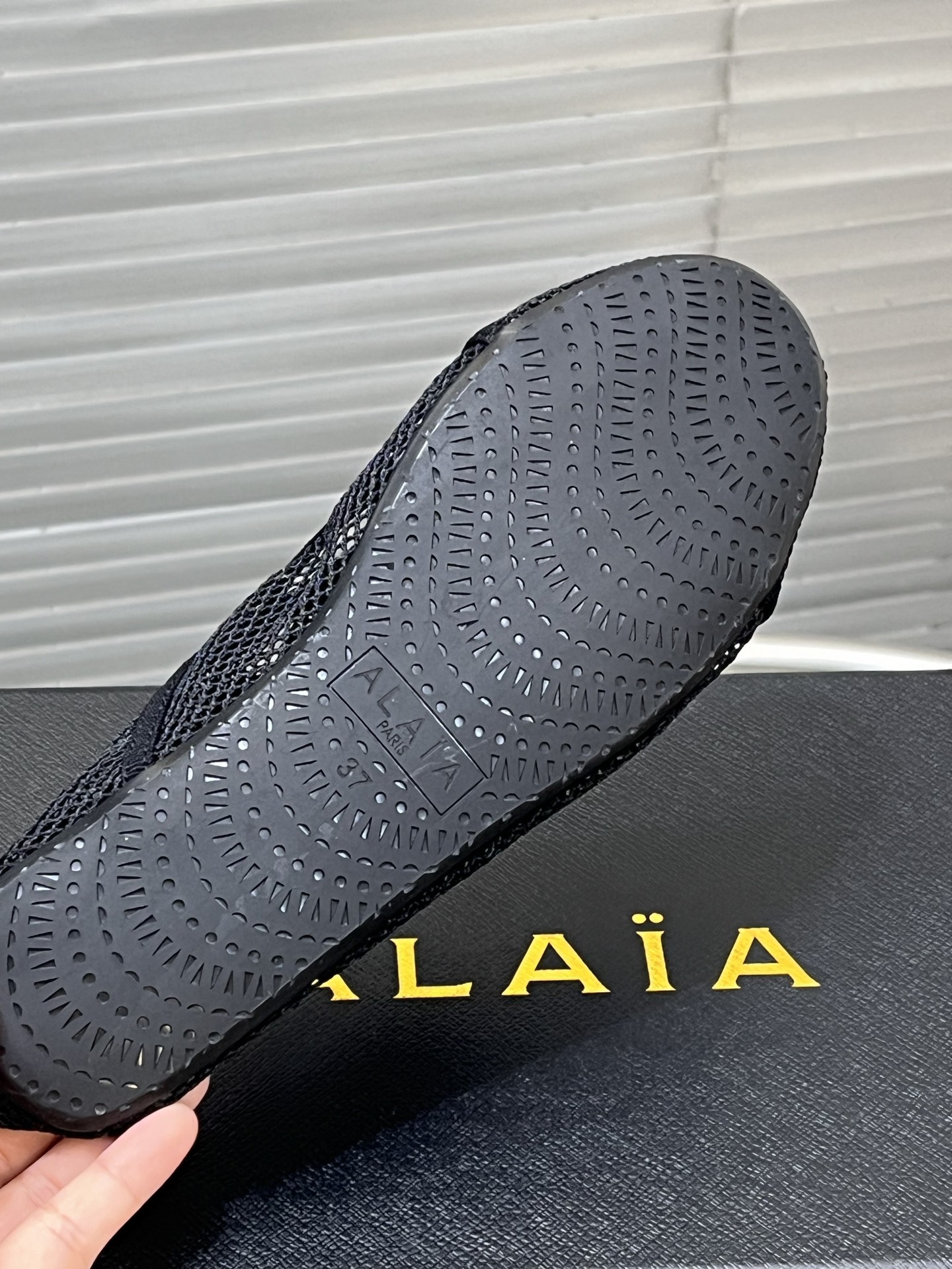 這款鞋子是AAAAA 1:1 質量(非常棒). 使用了和原版一模一樣的材料. 商標部分也保持了和Alaia一樣. 圖片拍攝是實物鞋子拍攝, 您所收到的實物保證和我們圖片一模一樣.